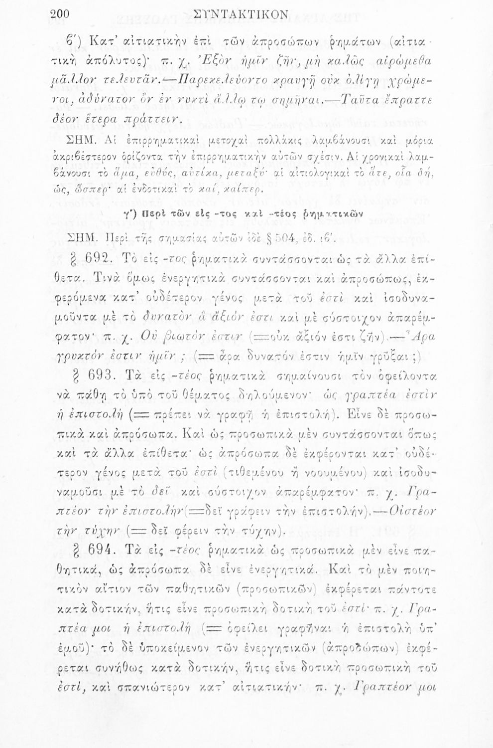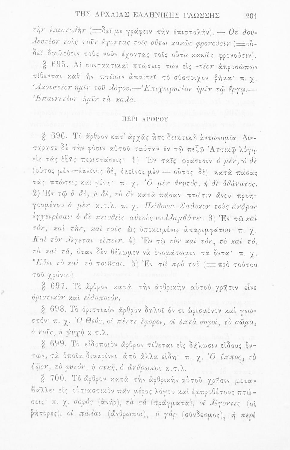 Σχολικό εγχειρίδιο Αρχαίων Ελληνικών για τα Ελληνικά Σχολεία, Παρθεναγωγεία και Γυμνάσια που περιέχει τους κανόνες γραμματικής και είναι χωρισμένο σε φθογγολογικό, τυπολογικό και ετυμολογικό μέρος.