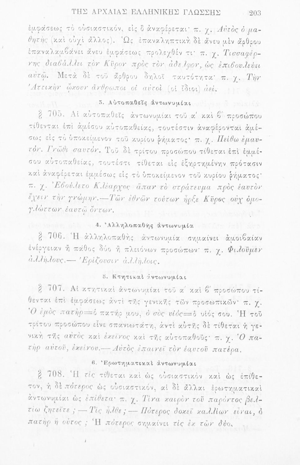 Σχολικό εγχειρίδιο Αρχαίων Ελληνικών για τα Ελληνικά Σχολεία, τα Παρθεναγωγεία και τα Γυμνάσια που περιλαμβάνει τους κανόνες γραμματικής.