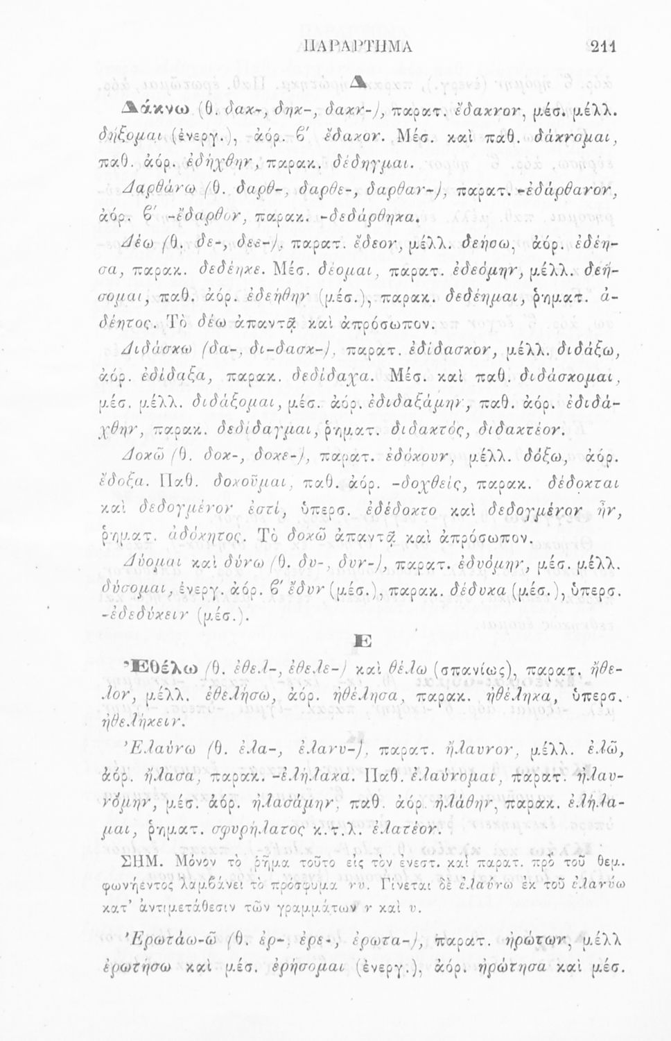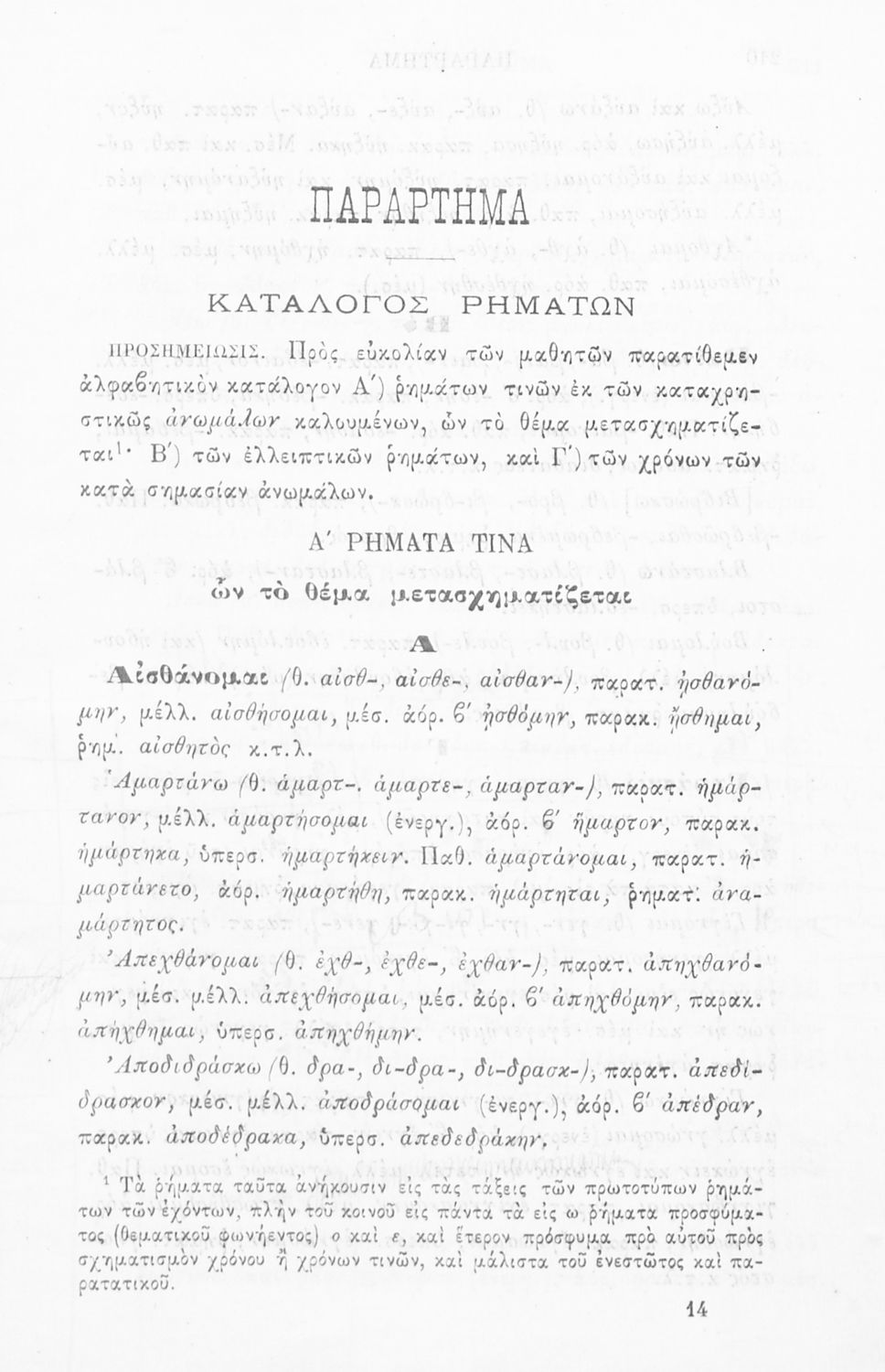 Μαθητικό βοήθημα Αρχαίων Ελληνικών για τα Γυμνάσια, Παρθεναγωγεία και Ελληνικά σχολεία το οποίο περιέχει κατάλογο ανωμάλων ρημάτων της Αττικής διαλέκτου.