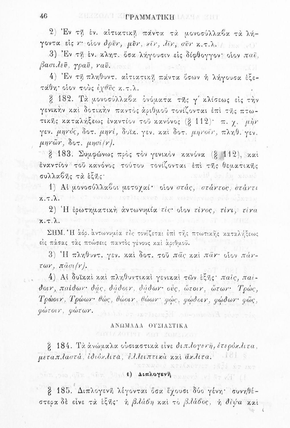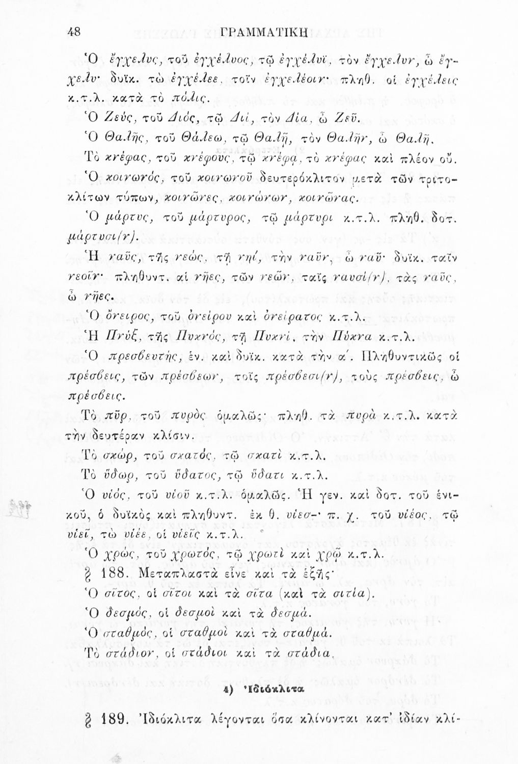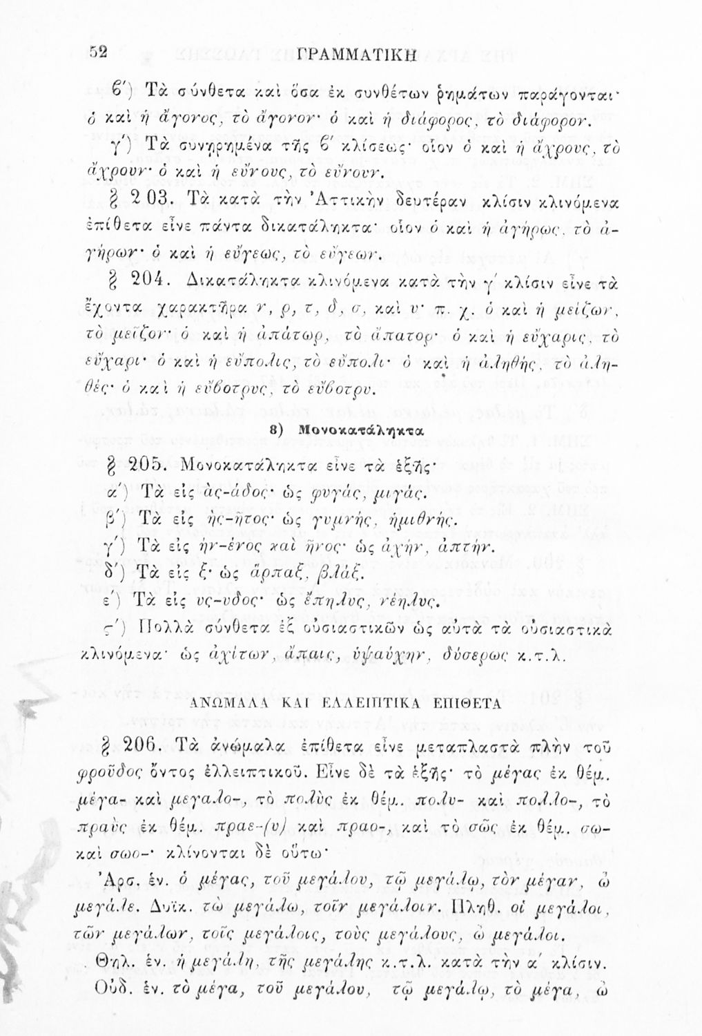 Σχολικό εγχειρίδιο Αρχαίων Ελληνικών για τα Ελληνικά Σχολεία, Παρθεναγωγεία και Γυμνάσια που περιέχει τους κανόνες γραμματικής και είναι χωρισμένο σε φθογγολογικό, τυπολογικό και ετυμολογικό μέρος.