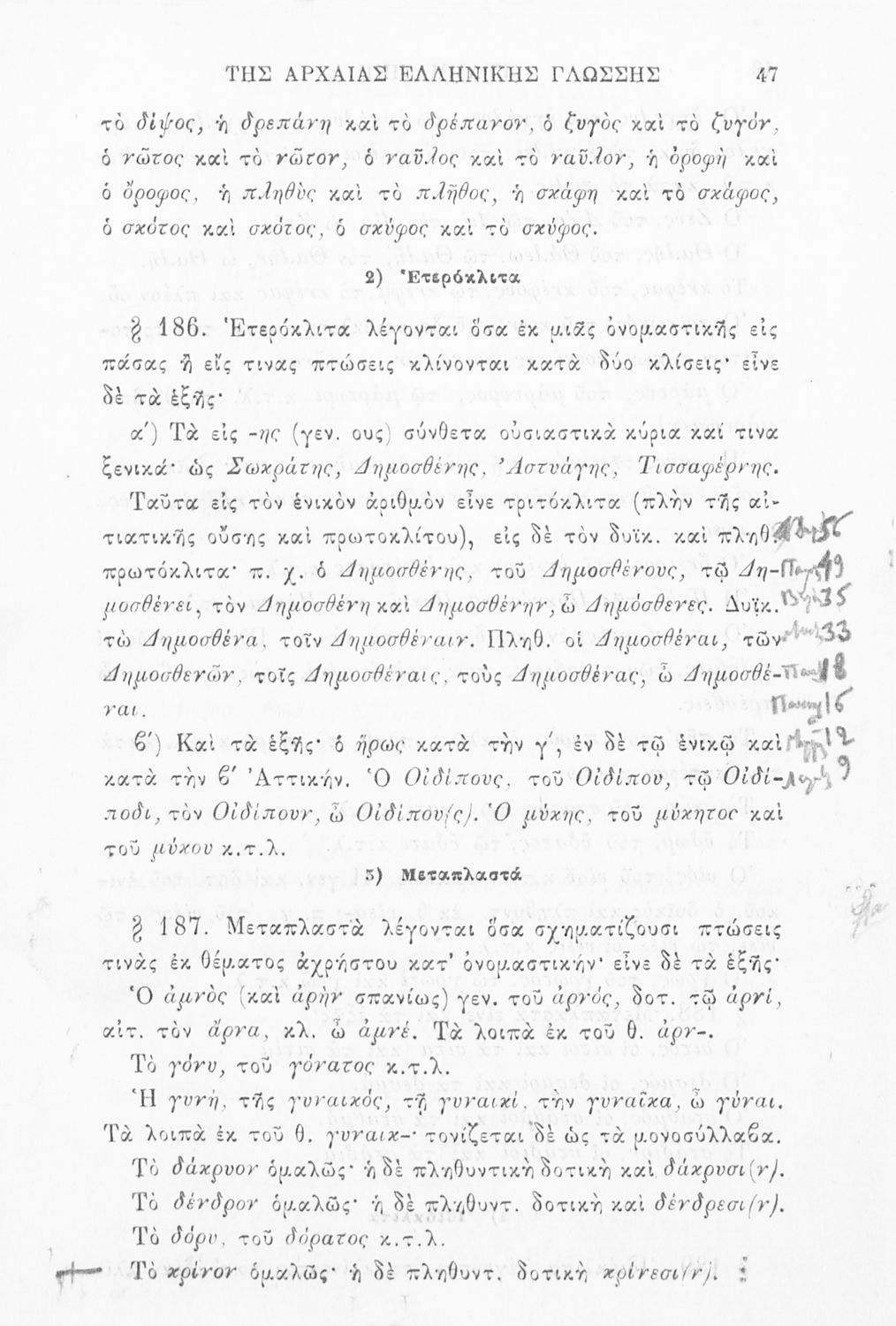 Σχολικό εγχειρίδιο Αρχαίων Ελληνικών για τα Ελληνικά Σχολεία και Παρθεναγωγεία που περιέχει τους κανόνες γραμματικής και είναι χωρισμένο σε φθογγολογικό, τυπολογικό και ετυμολογικό μέρος.