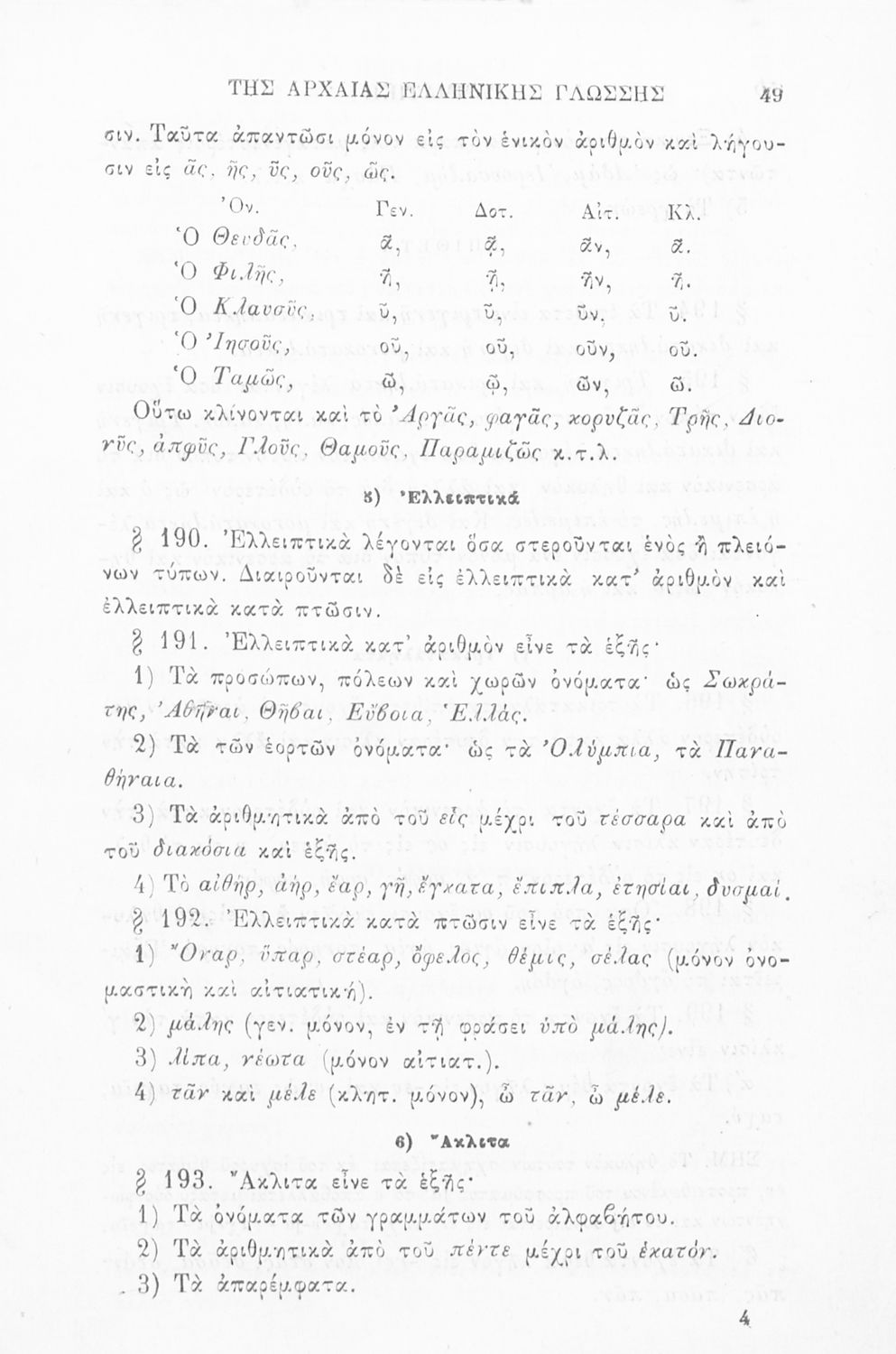 Σχολικό εγχειρίδιο Αρχαίων Ελληνικών για τα Ελληνικά Σχολεία, τα Παρθεναγωγεία και τα Γυμνάσια που περιλαμβάνει τους κανόνες γραμματικής.