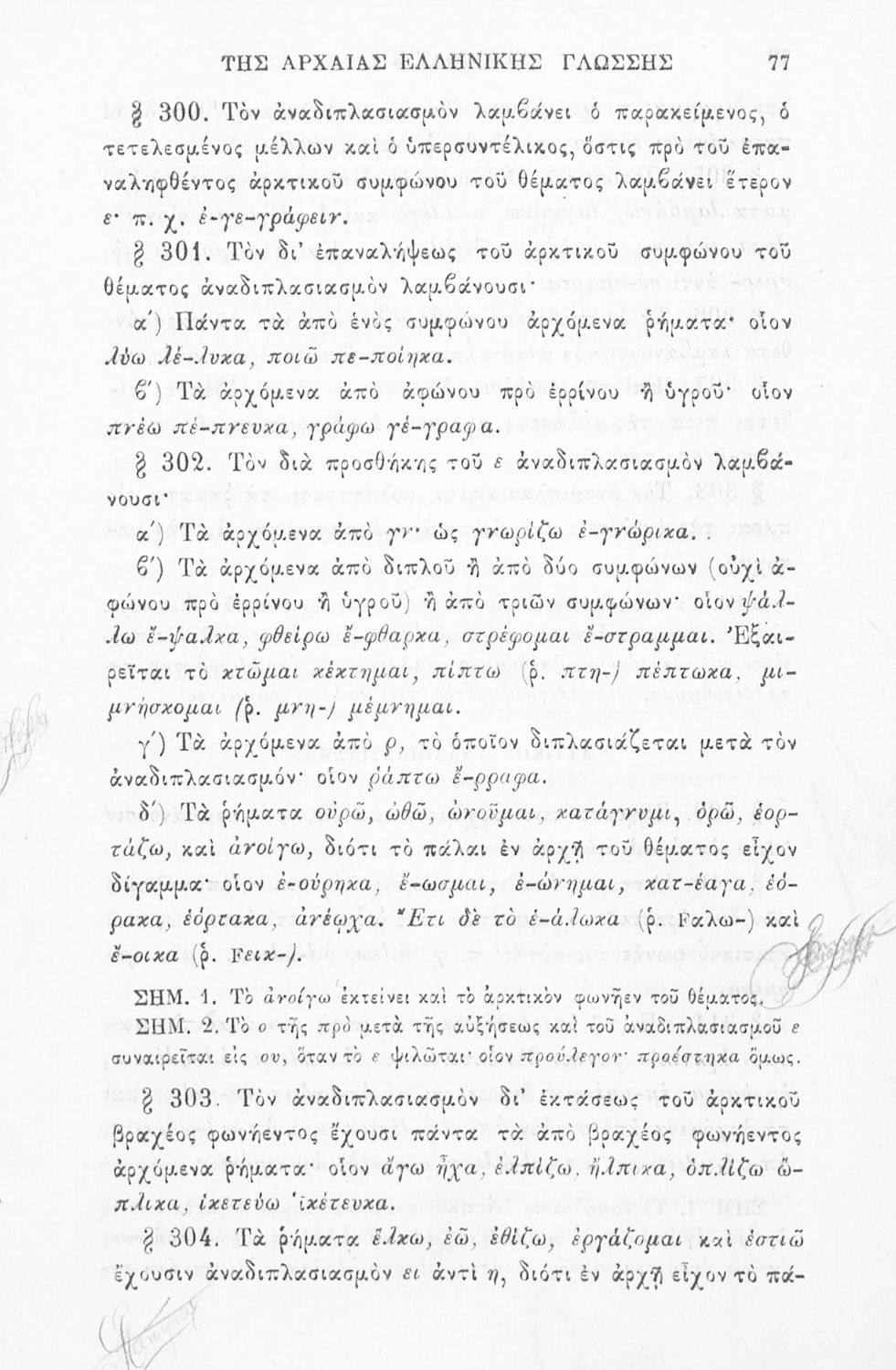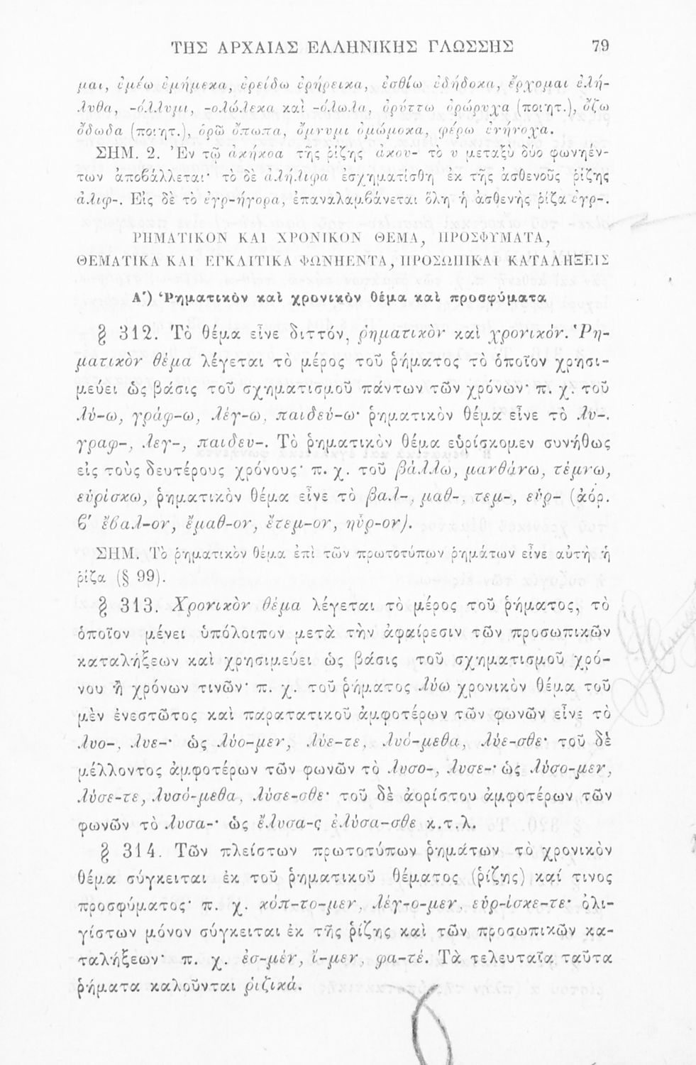 Σχολικό εγχειρίδιο Αρχαίων Ελληνικών για τα Ελληνικά Σχολεία, Παρθεναγωγεία και Γυμνάσια που περιέχει τους κανόνες γραμματικής και είναι χωρισμένο σε φθογγολογικό, τυπολογικό και ετυμολογικό μέρος.