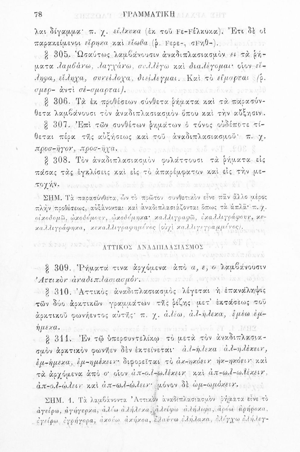 Σχολικό εγχειρίδιο Αρχαίων Ελληνικών για τα Ελληνικά Σχολεία, τα Παρθεναγωγεία και τα Γυμνάσια που περιλαμβάνει τους κανόνες γραμματικής.