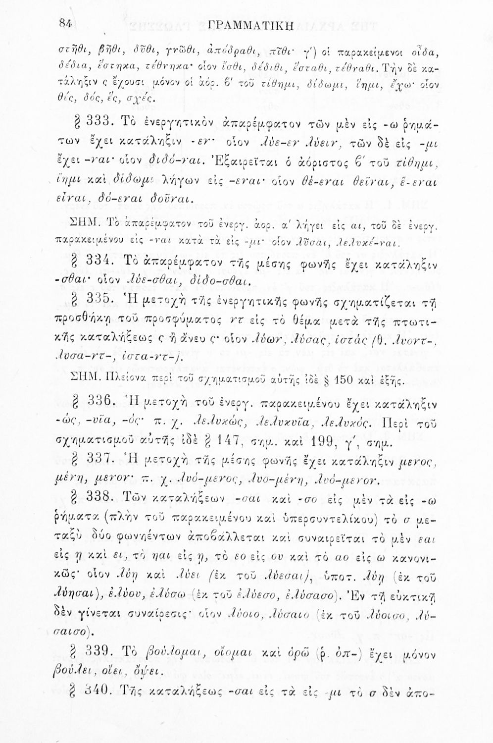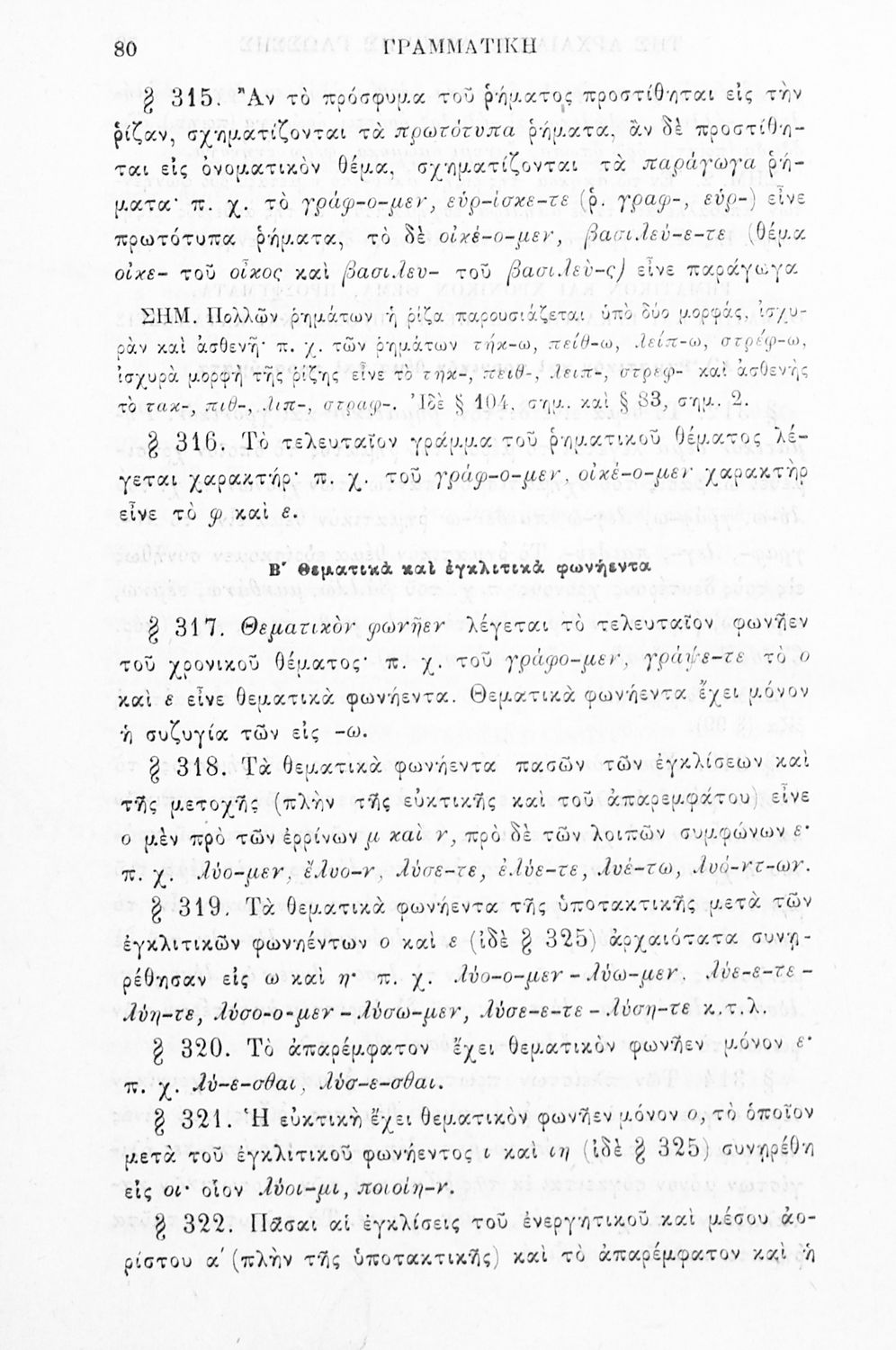 Σχολικό εγχειρίδιο Αρχαίων Ελληνικών για τα Ελληνικά Σχολεία και Παρθεναγωγεία που περιέχει τους κανόνες γραμματικής και είναι χωρισμένο σε φθογγολογικό, τυπολογικό και ετυμολογικό μέρος.