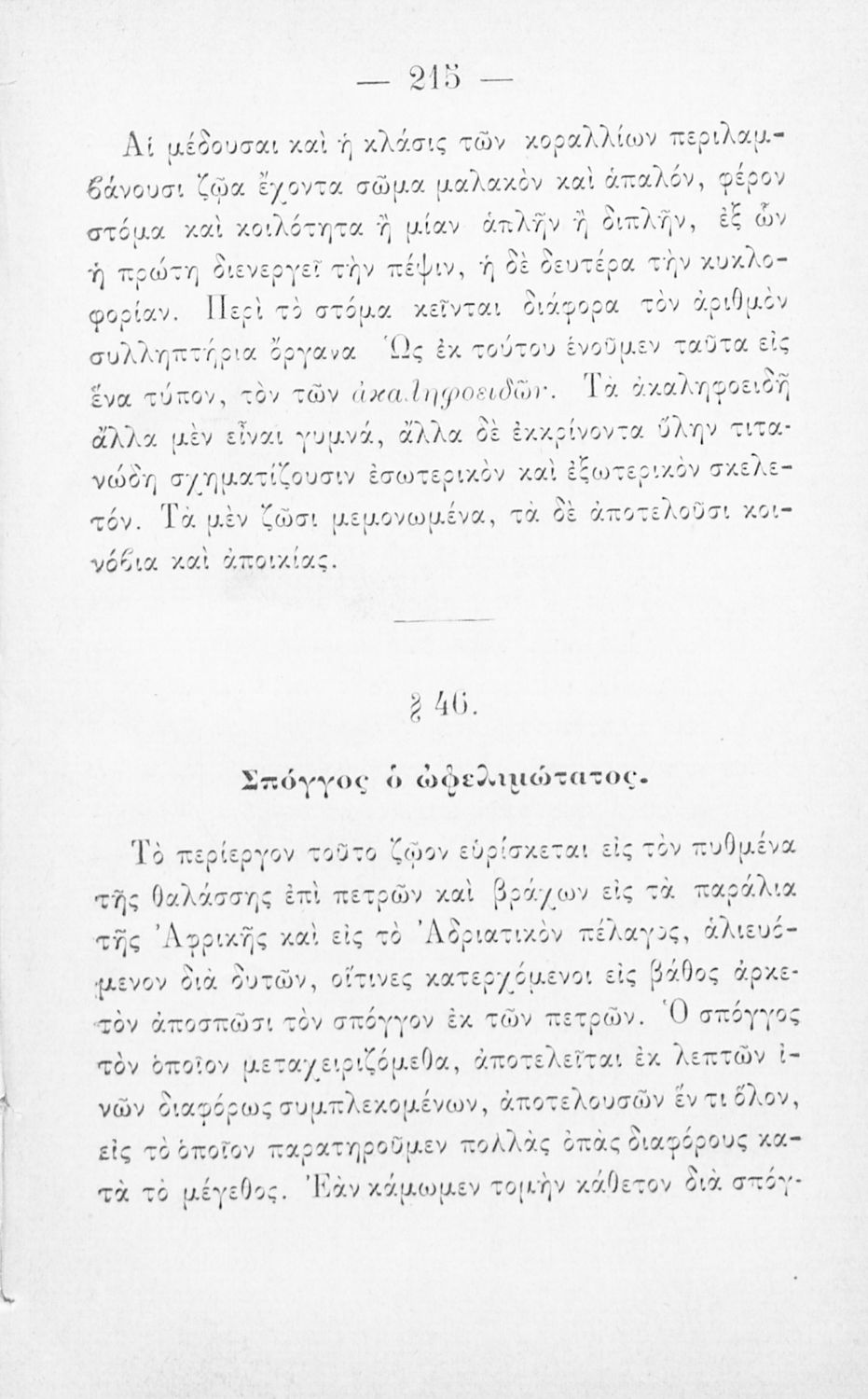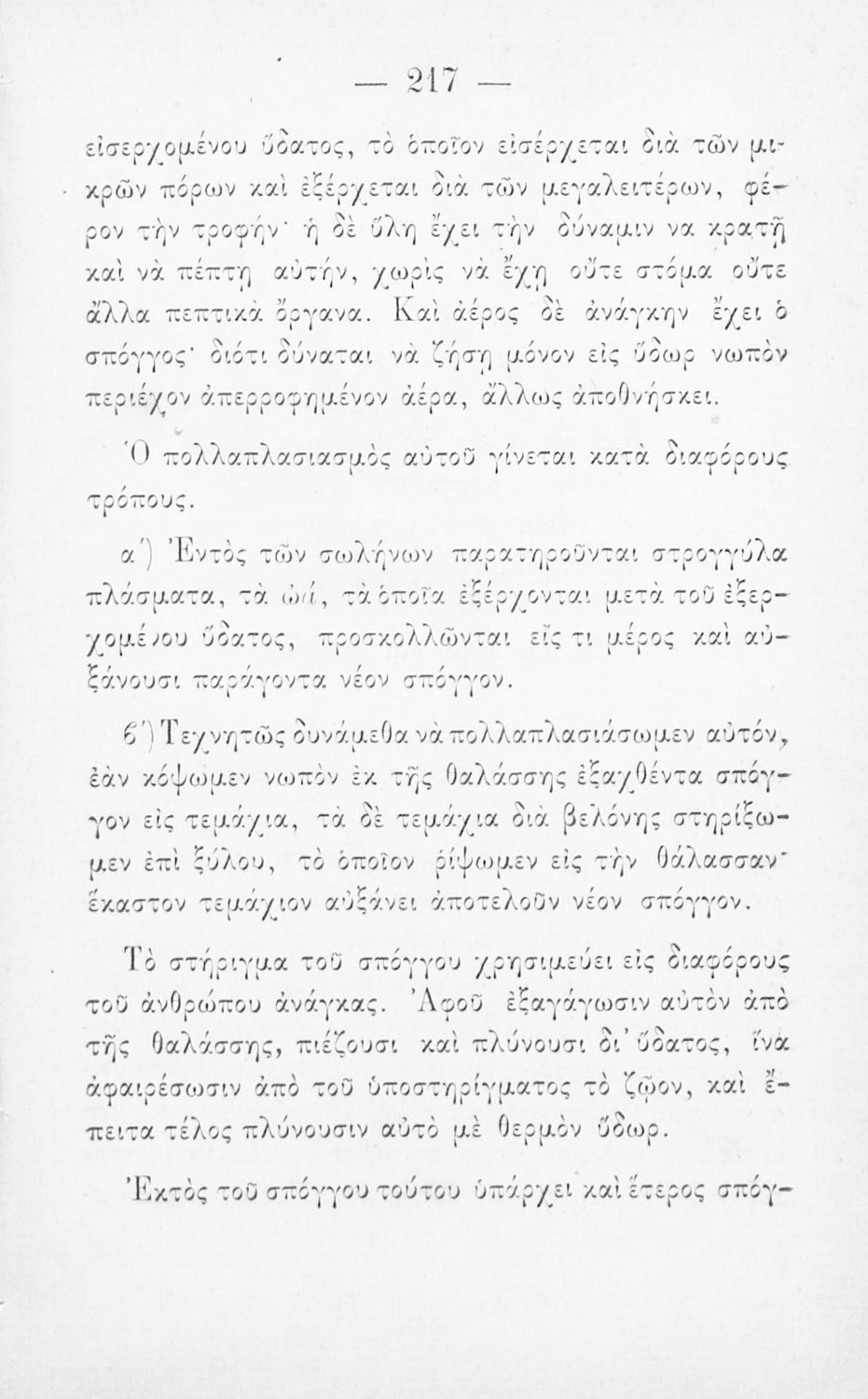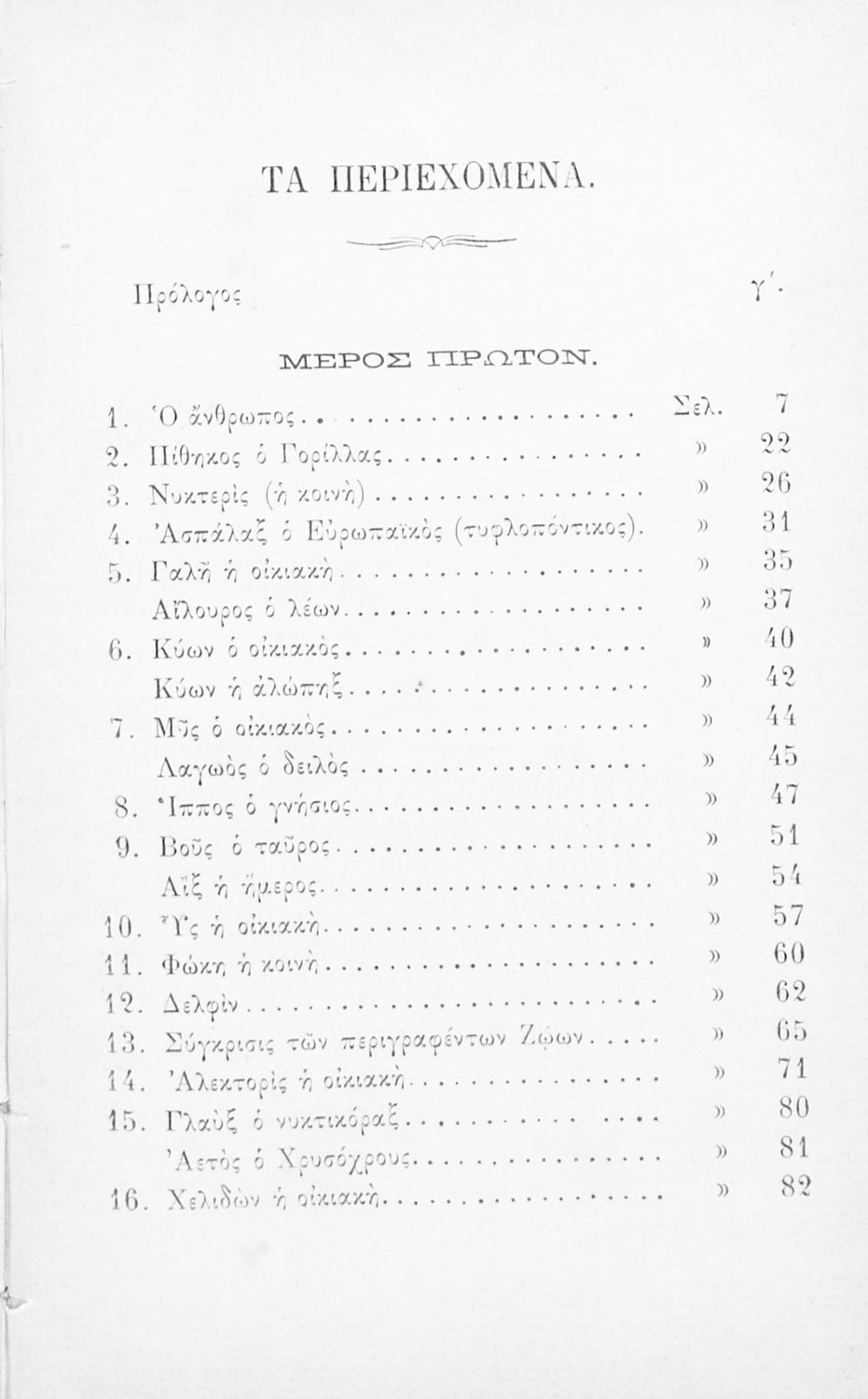Σχολικό Εγχειρίδιο Φυσικής Ιστορίας για τις Α' και Β' Ελληνικών Σχολείων και Παρθεναγωγείων που περιλαμβάνει στοιχεία ζωολογίας και της φυτολογίας και διακρίνει τα ζώα και τα φυτά ανάλογα με την συνομοταξία ...