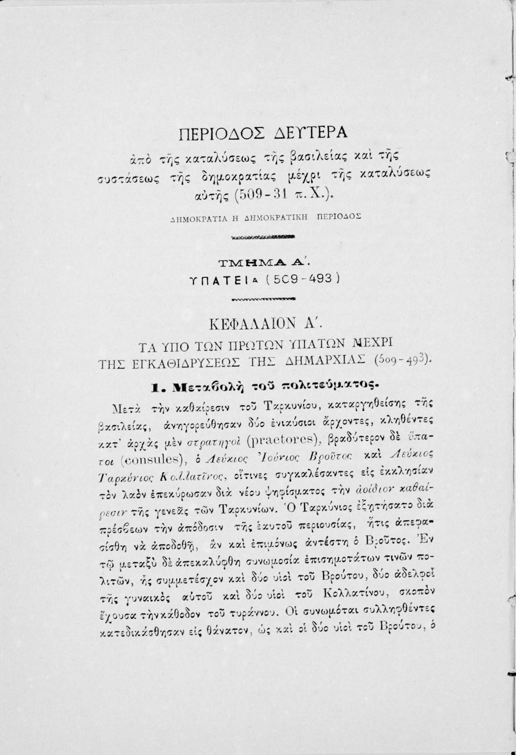 Τίτλος: Ιστορία των Ρωμαίων και ιστορία του βυζαντινού κράτους μέχρι του διχασμού του Ρωμαϊκού κράτους. Προς χρήσιν των μαθητών της Β΄ Τάξεως του Γυμνασίου και προς ιδιαιτέραν μελέτην
