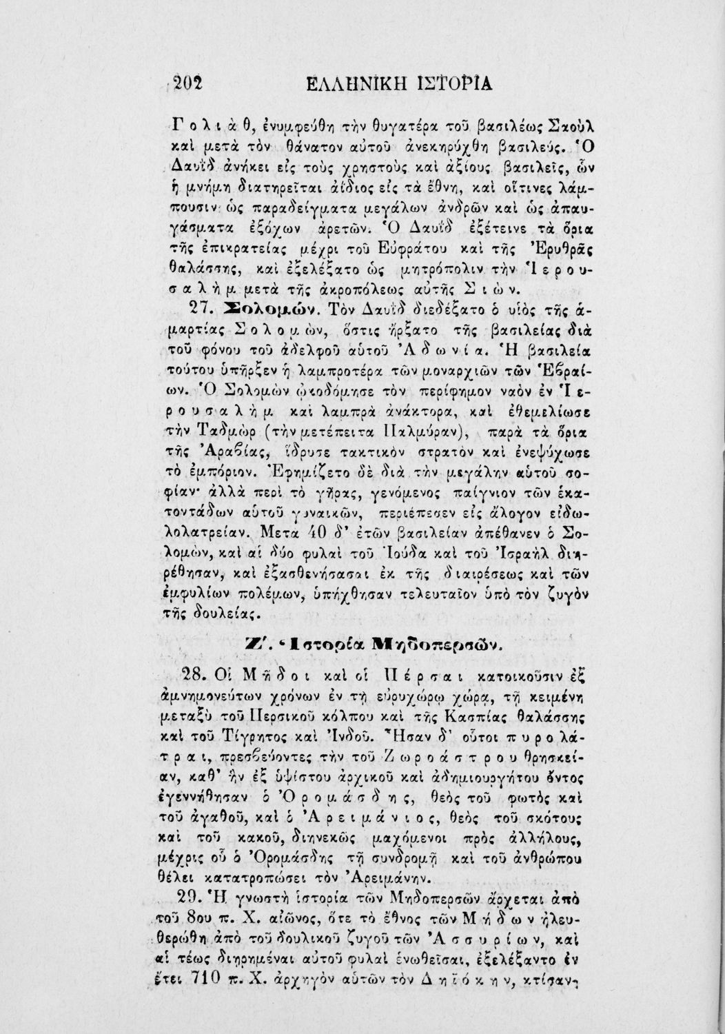 Βαθμίδα εκπαίδευσης: Δευτεροβάθμια Τάξη: Γ' Ελληνικού Σχολείου Μάθημα: Ιστορία Γλώσσα: Καθαρεύουσα Παρουσίαση περιεχομένου: Σχολικό εγχειρίδιο Ιστορίας Γ' Ελληνικού Σχολείου που καλύπτει την περίοδο από τους προϊστορικούς χρόνους μέχρι την Ελληνική Επανάσταση. Περιέχει και στοιχεία παγκόσμιας ιστορίας. |