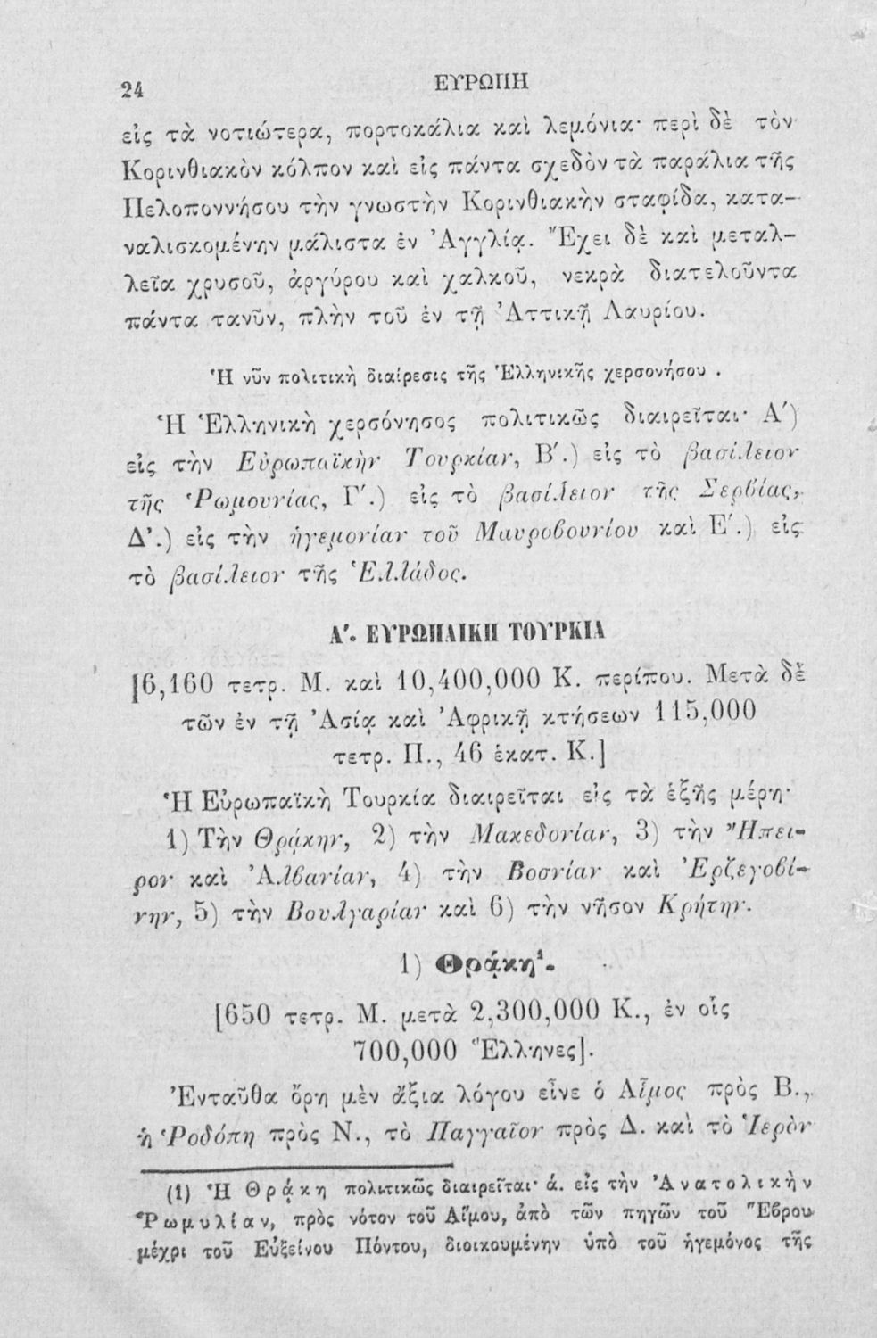 Σχολικό εγχειρίδιο Γεωγραφίας για τα Ελληνικά Σχολεία και Παρθεναγωγεία που περιλαμβάνει εισαγωγή στη φυσική, πολιτική και οικονομική γεωγραφία και μια γενική επισκόπηση της Ελλάδας και της Ευρωπαϊκής Τουρκίας