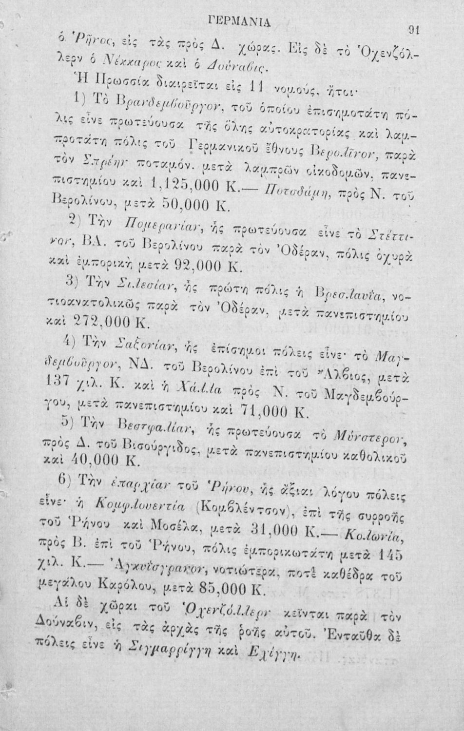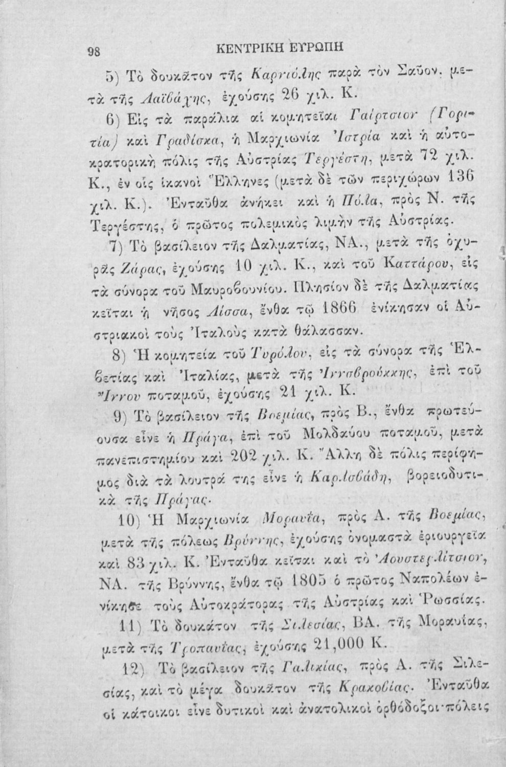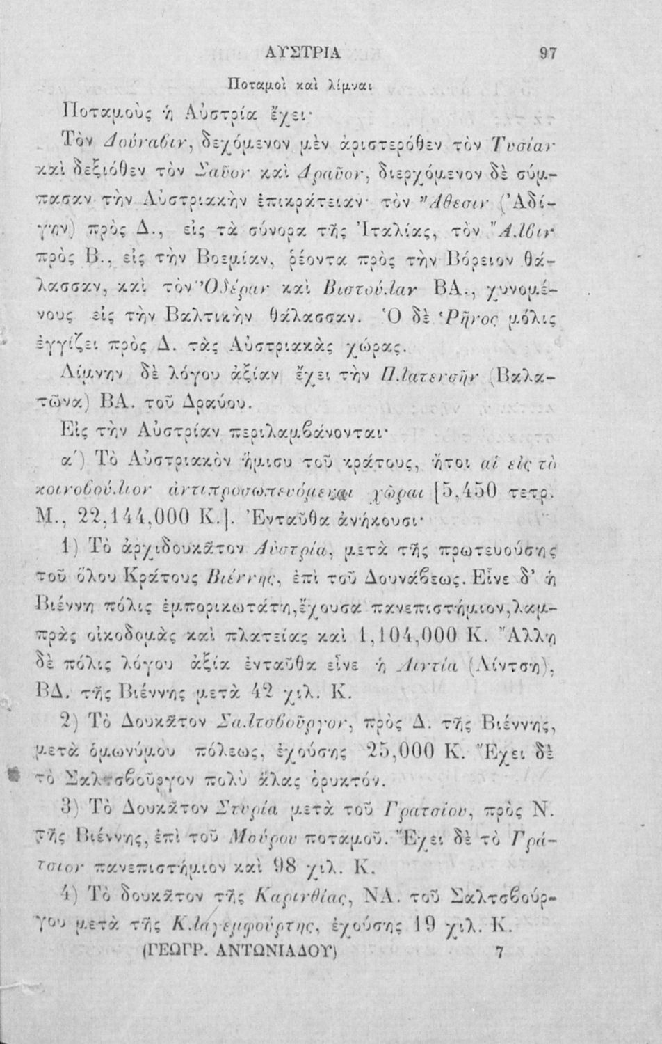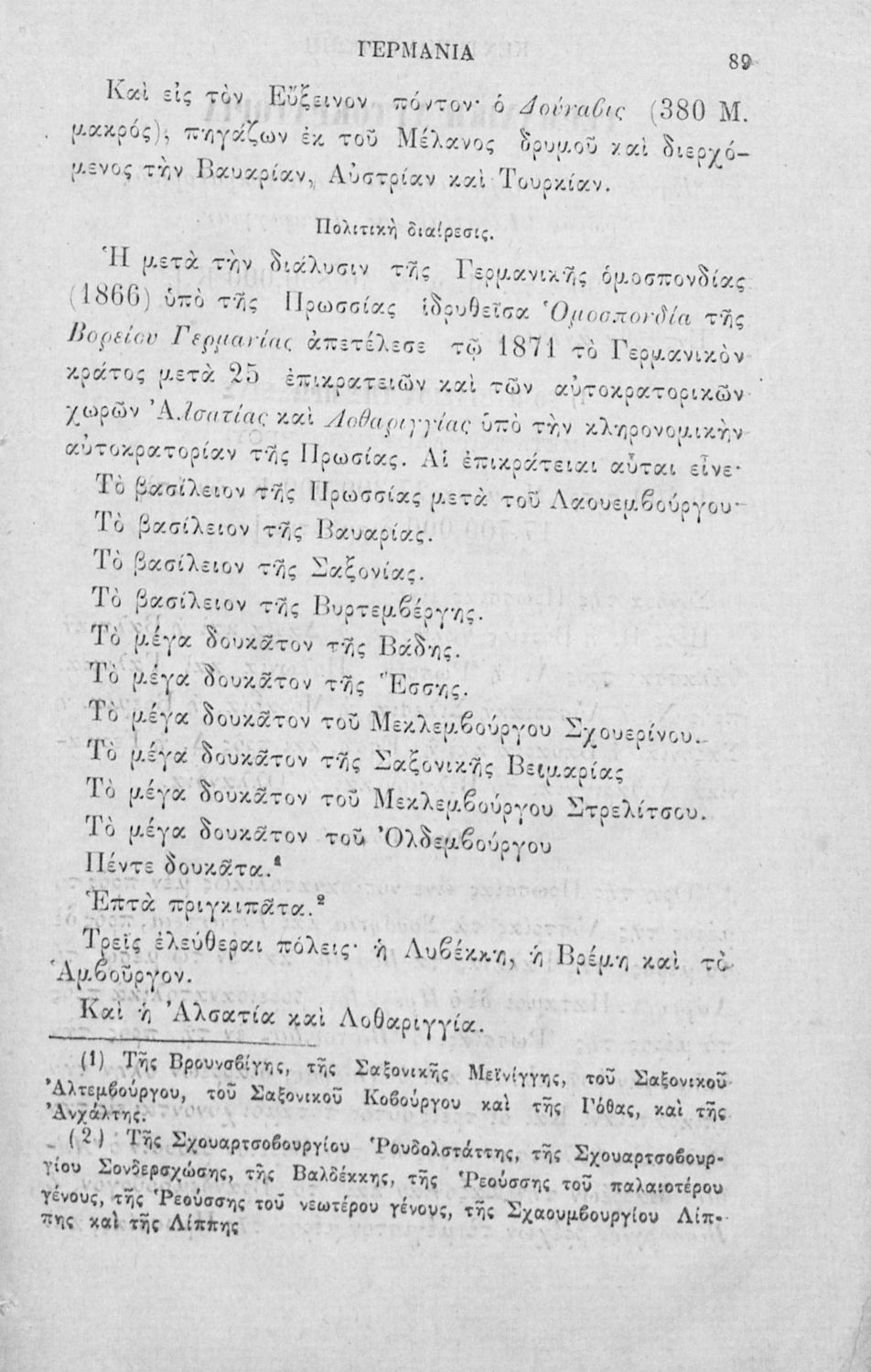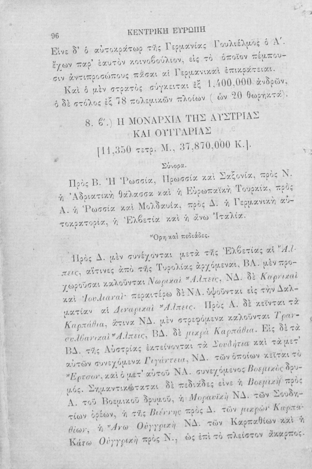 Σχολικό εγχειρίδιο Γεωγραφίας για τα Ελληνικά Σχολεία και Παρθεναγωγεία που περιλαμβάνει εισαγωγή στη φυσική, πολιτική και οικονομική γεωγραφία και μια γενική επισκόπηση της Ελλάδας και της Ευρωπαϊκής Τουρκίας