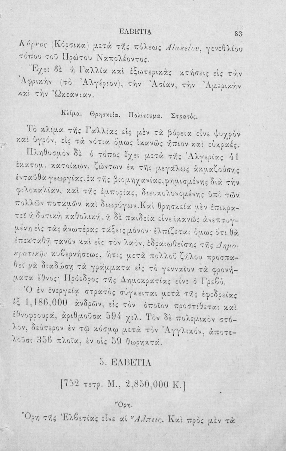 Σχολικό εγχειρίδιο Γεωγραφίας για τα Ελληνικά Σχολεία, τα Γυμνάσια, τα Διδασκαλεία, τα Παρθεναγωγεία και τις Εμπορικές-Στρατιωτικές-Ναυτικές Σχολές που περιέχει εισαγωγή στην κοσμογραφία, τη μαθηματική, ...