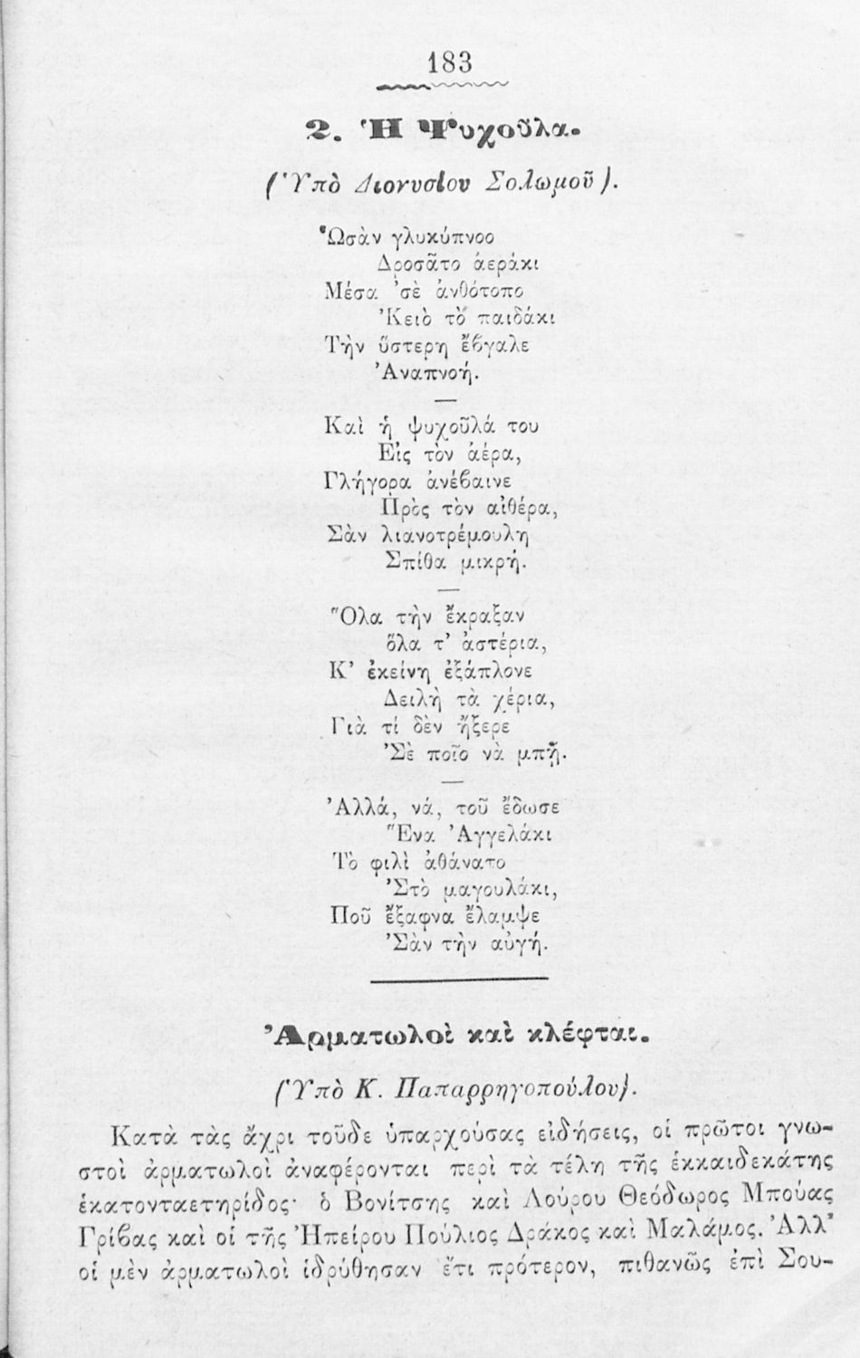 Αναγνωστικό Δημοτικού που περιλαμβάνει διηγήματα εμπνευσμένα από τον Τρωικό Πόλεμο και αποσκοπεί να διδάξει στους ελληνόπαιδες "ότι προς ταις αρεταίς της ειρήνης υπάρχουσι και αρεταίς του πολέμου, η αρετή της ...