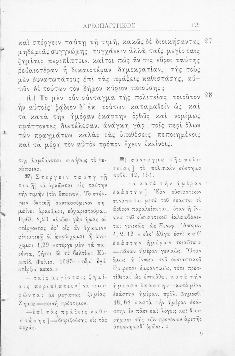 Σχολικό εγχειρίδιο Αρχαίων Ελληνικών Β΄ Γυμνασίου που περιλαμβάνει τους Λόγους του Ισοκράτη Πανηγυρικός και Αρεοπαγιτικός, και ερμηνευτικά σχόλια.