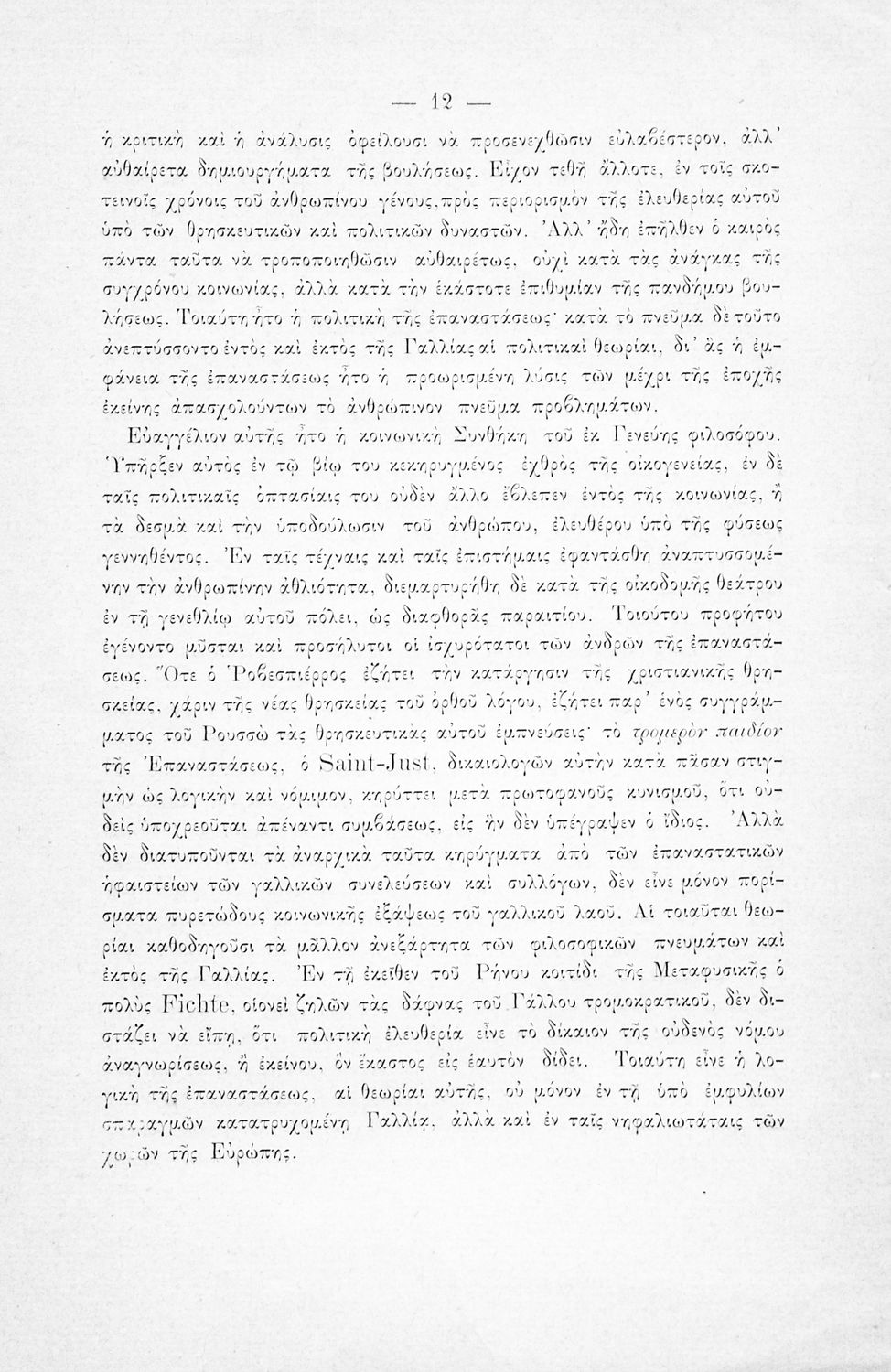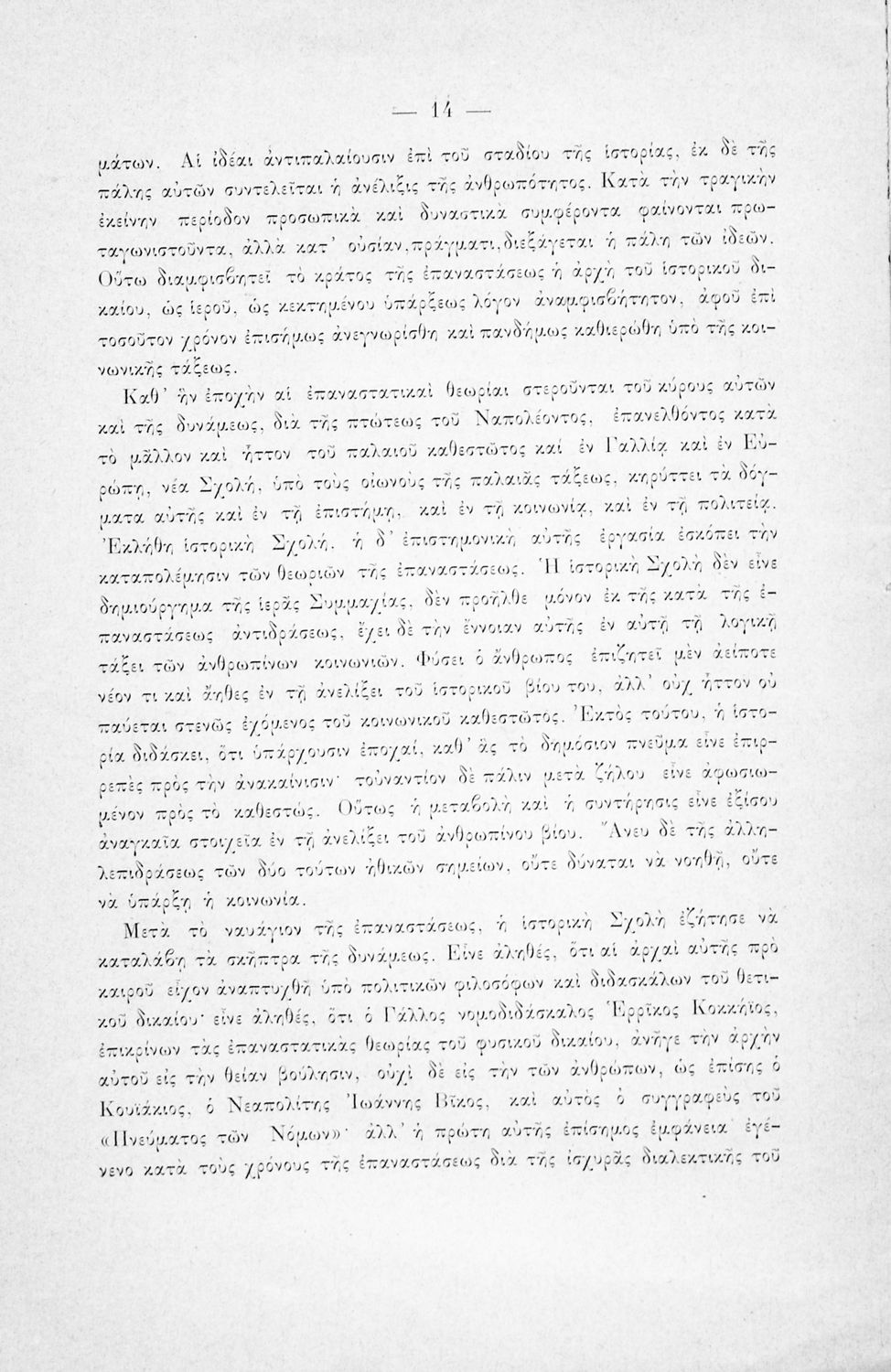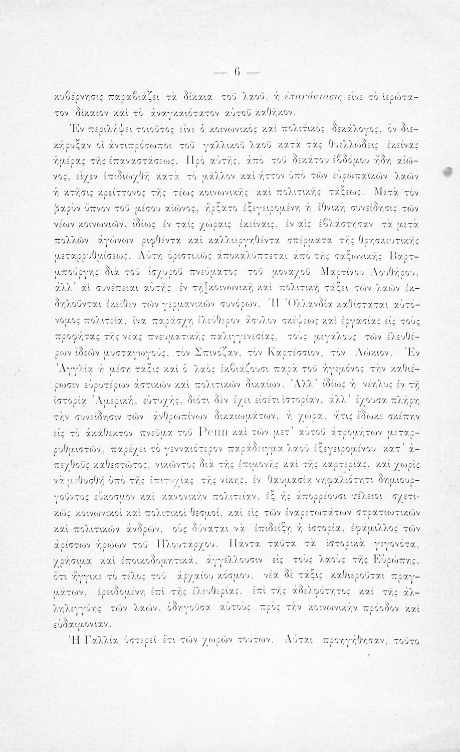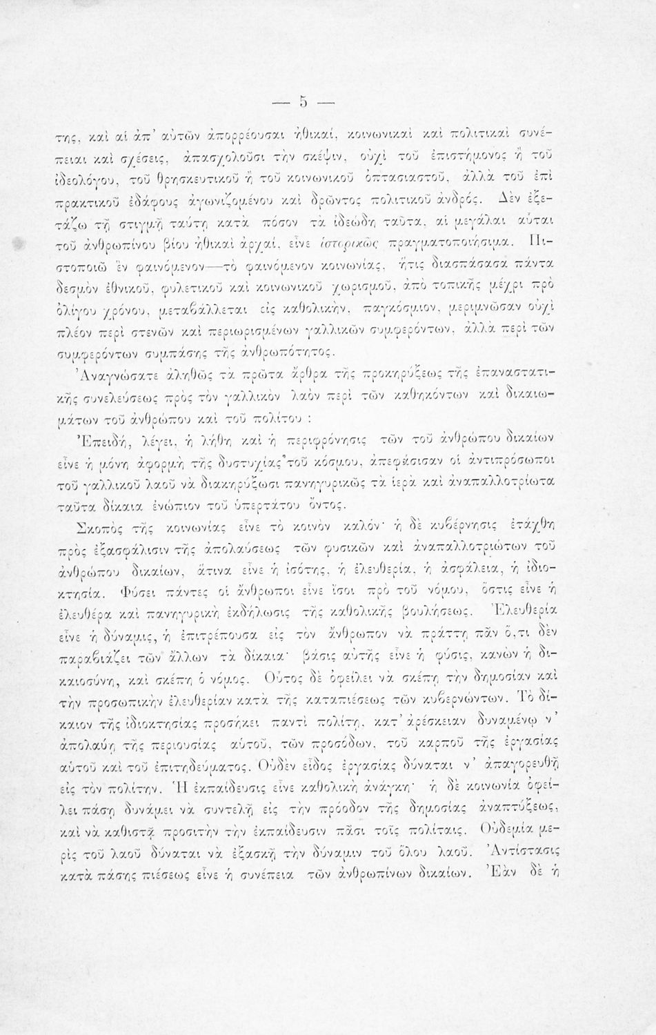 Βαθμίδα εκπαίδευσης: Τριτοβάθμια Μάθημα: Αγωγή Του Πολίτη Γλώσσα: Καθαρεύουσα Παρουσίαση περιεχομένου: Πανεπιστημιακό σύγγραμμα που έχει ως στόχο είχε τη διδασκαλία των πολιτικών θεωριών της Γαλλικής Επανάστασης καθώς και την παρουσίαση του ιστορικού πλαισίου μέσα στο οποίο αυτές εξελίχθηκαν. |