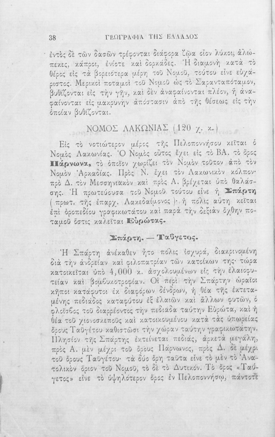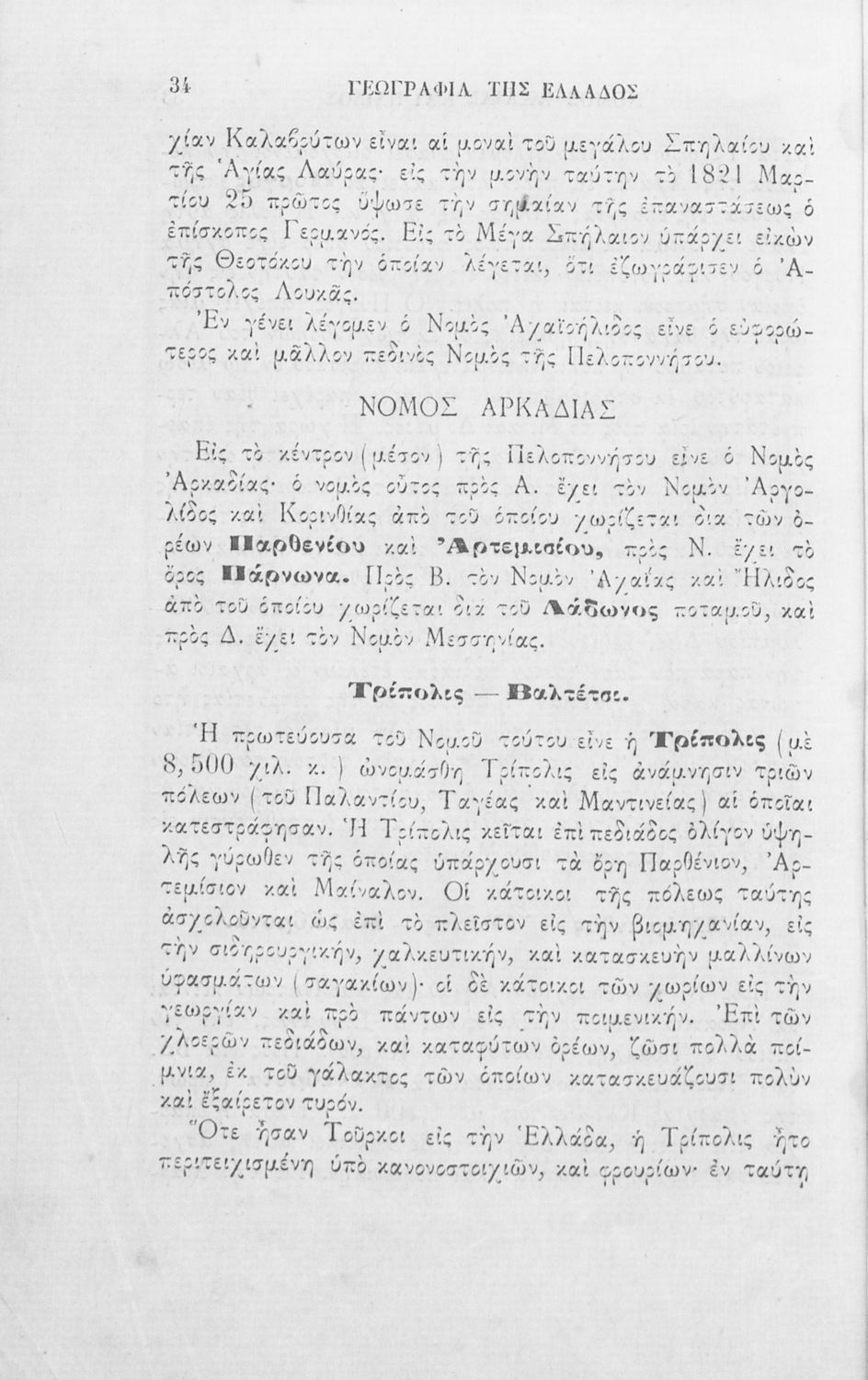Σχολικό εγχειρίδιο Γεωγραφίας για τα Ελληνικά Σχολεία και τα Παρθεναγωγεία που αναλύει τη γεωμορφολογία της Γης και παρουσιάζει, διεξοδικά, κάποιους από τους νομούς της Ελλάδας και, συνοπτικά, τα γενικά ...