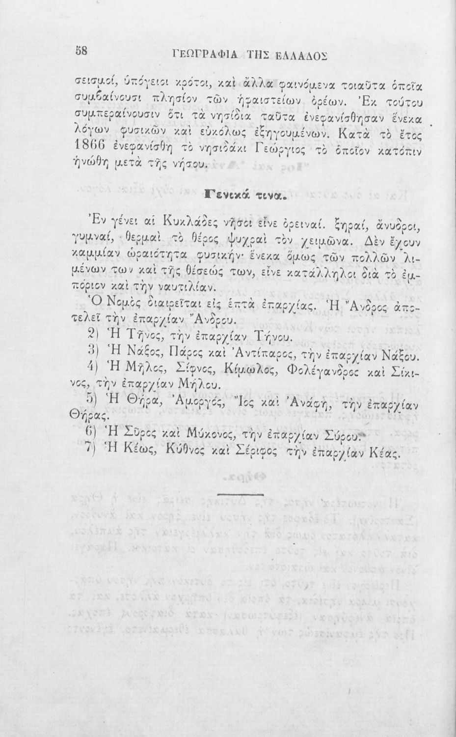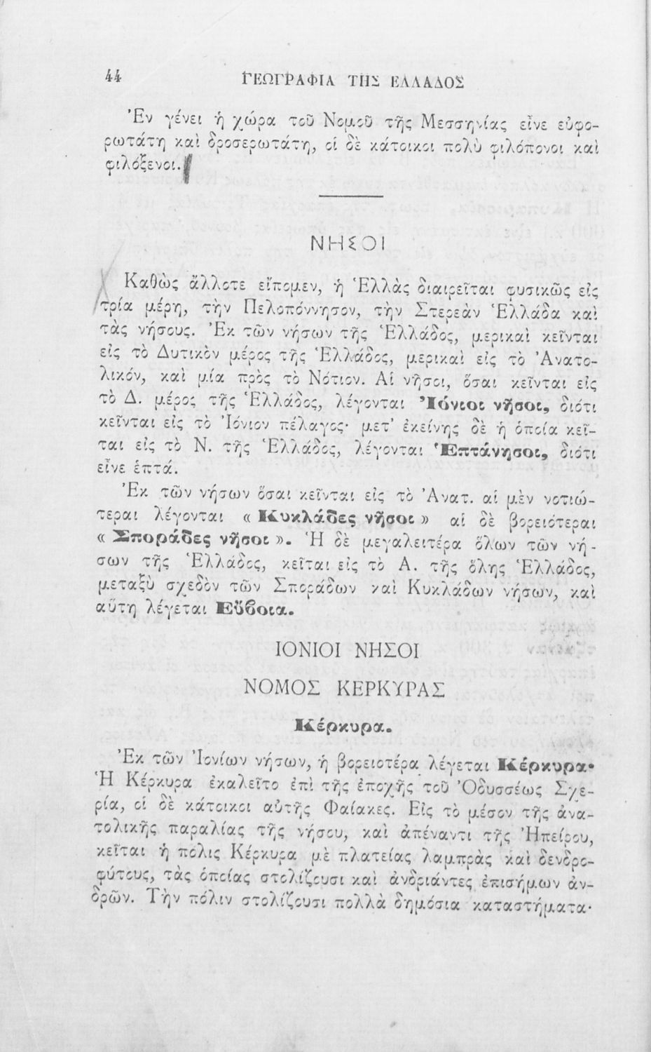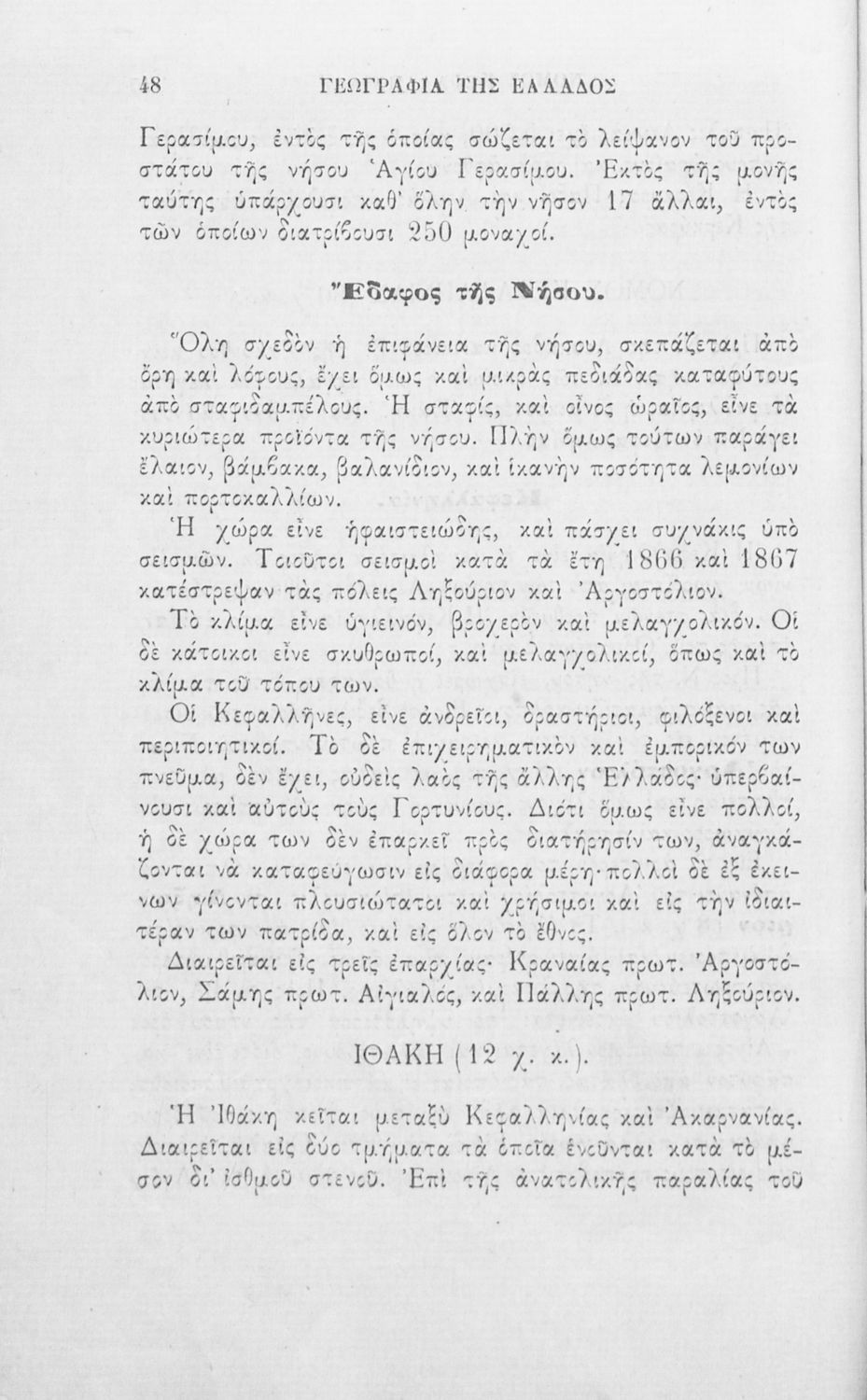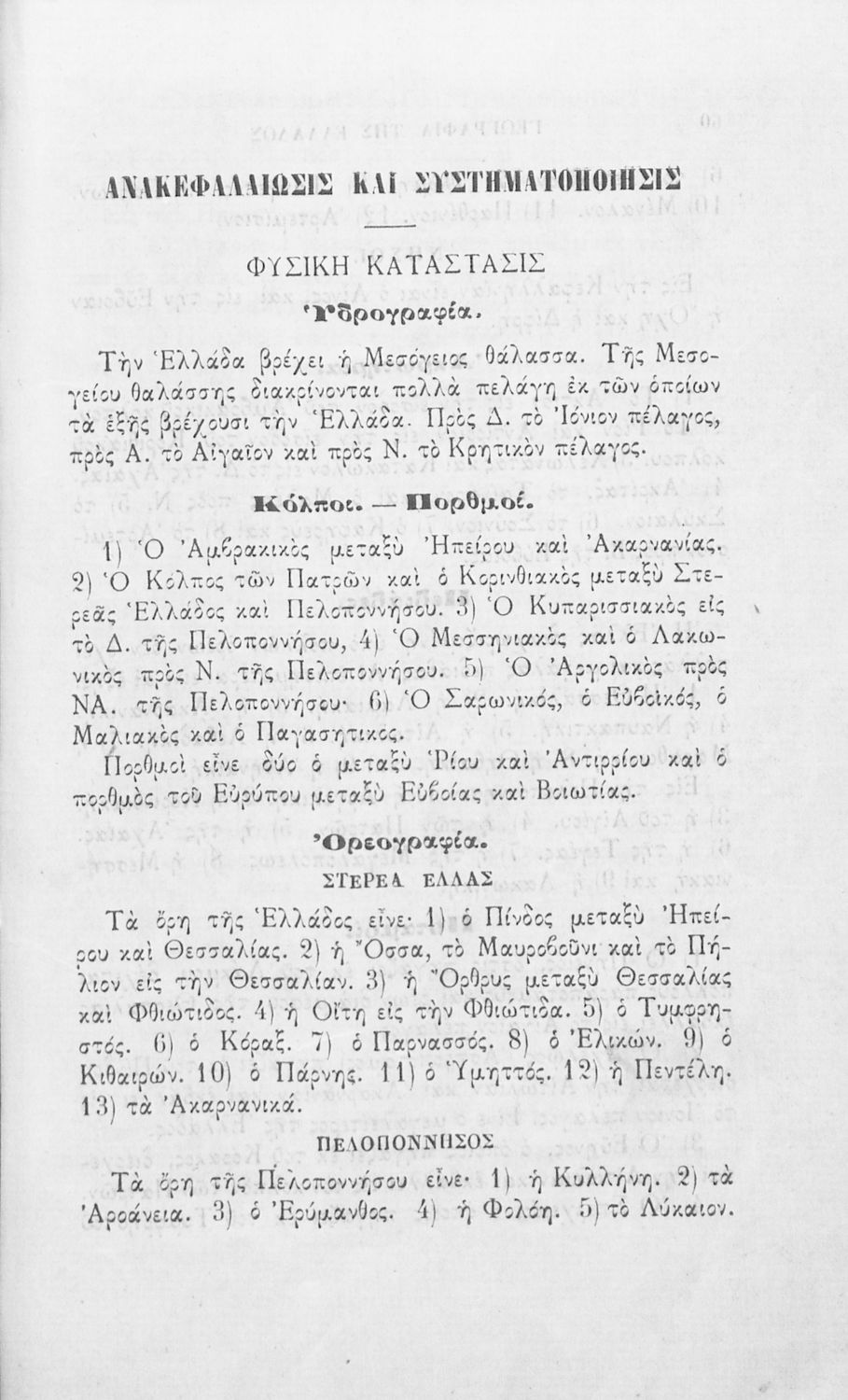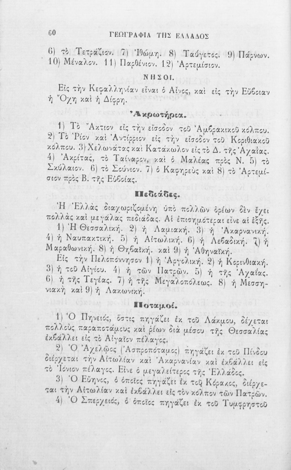 Σχολικό εγχειρίδιο Γεωγραφίας για τα Ελληνικά Σχολεία και τα Παρθεναγωγεία που αναλύει τη γεωμορφολογία της Γης και παρουσιάζει, διεξοδικά, κάποιους από τους νομούς της Ελλάδας και, συνοπτικά, τα γενικά ...