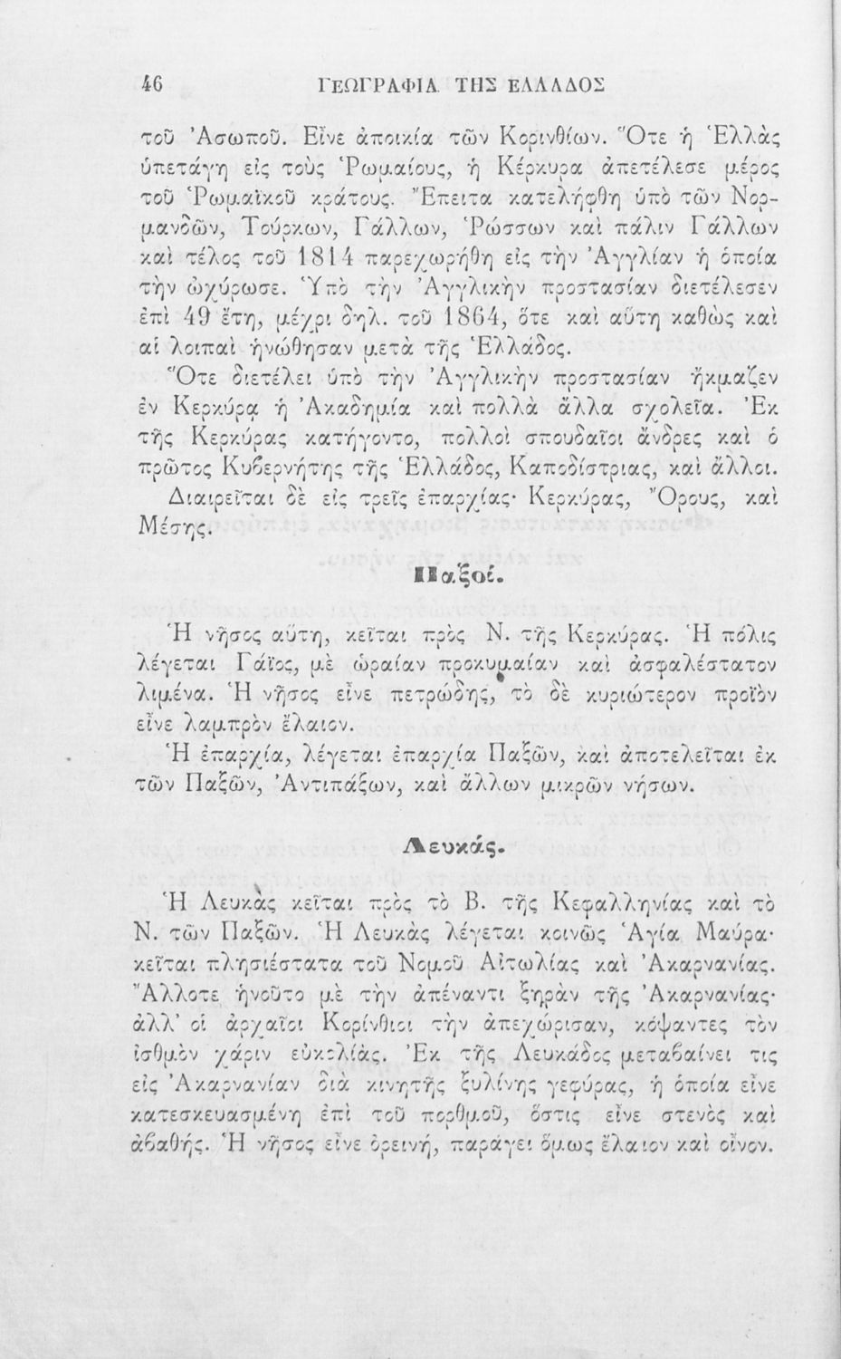 Σχολικό εγχειρίδιο Γεωγραφίας για τα Ελληνικά Σχολεία και Παρθεναγωγεία που περιλαμβάνει εισαγωγή στη φυσική, πολιτική και οικονομική γεωγραφία και μια γενική επισκόπηση της Ελλάδας και της Ευρωπαϊκής Τουρκίας