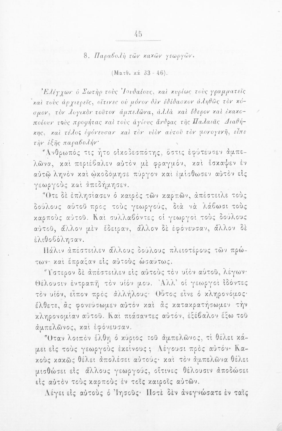 Σχολικό εγχειρίδιο Θρησκευτικών για τα Ελληνικά Σχολεία και τα Παρθεναγωγεία που αποτελεί μια εξιστόρηση της Καινής Διαθήκης από την γέννηση του Ιησού Χριστού ως το έργο των Αποστόλων