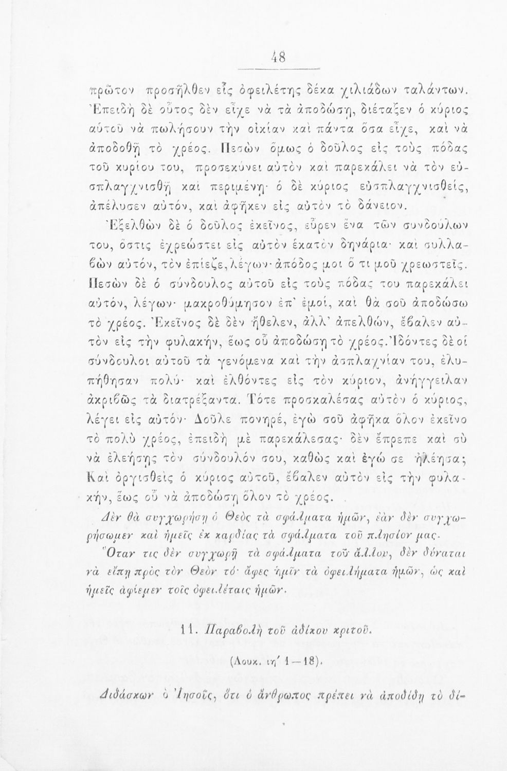 Σχολικό εγχειρίδιο Θρησκευτικών για τα Ελληνικά σχολεία και Παρθεναγωγεία που συνιστά μία εξιστόρηση της Καινής Διαθήκης από τη γέννηση της Θεοτόκου ως την ανάληψη του Χριστού και τη δράση των Αποστόλων.