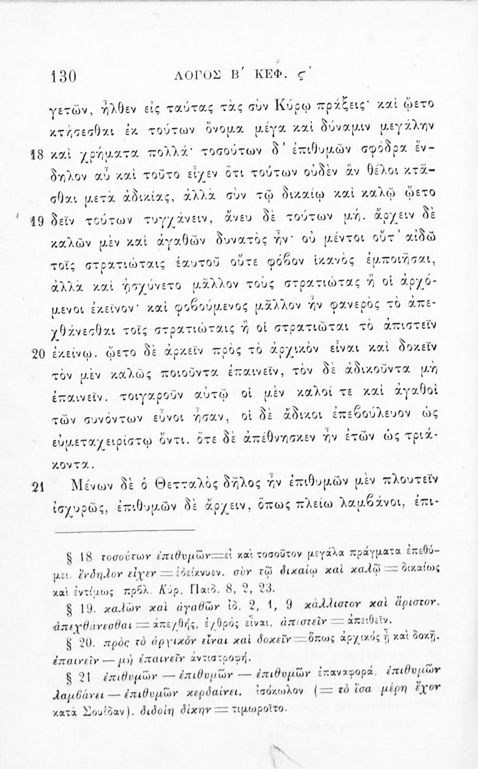 Σχολικό εγχειρίδιο Αρχαίων Ελληνικών για τα Ελληνικά Σχολεία, Γυμνάσια και Παρθεναγωγεία που περιλαμβάνει αποσπάσματα από το έργο του Ξενοφώντα Κύρου Ανάβασις, και λεξικογραφικές παρατηρήσεις.