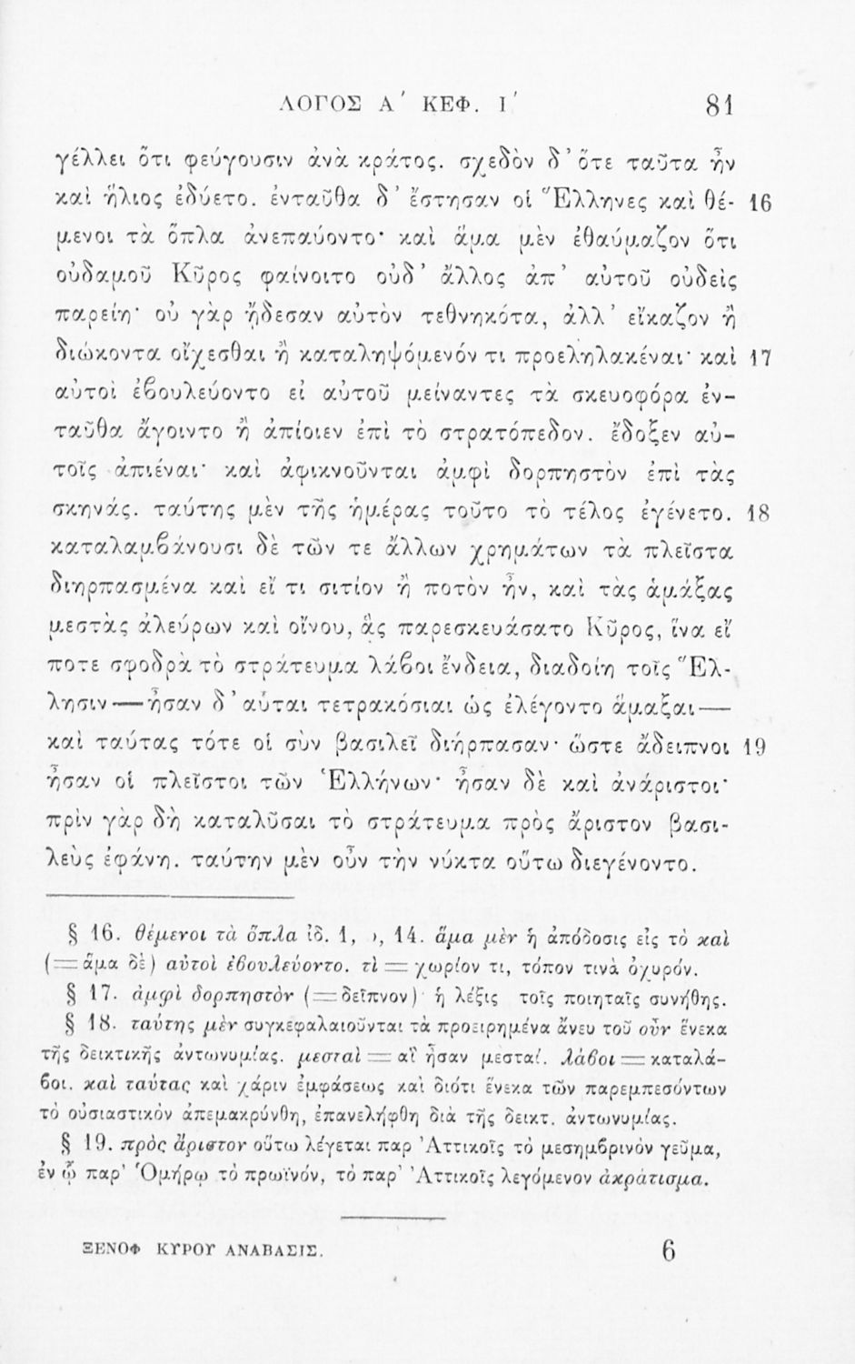 Σχολικό εγχειρίδιο Αρχαίων Ελληνικών για τα Ελληνικά Σχολεία και γυμνάσια που περιλαμβάνει το έργο του Ξενοφώντα Κύρου Ανάβασις, και ερμηνευτικές παρατηρήσεις.