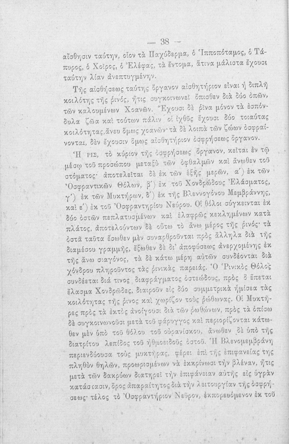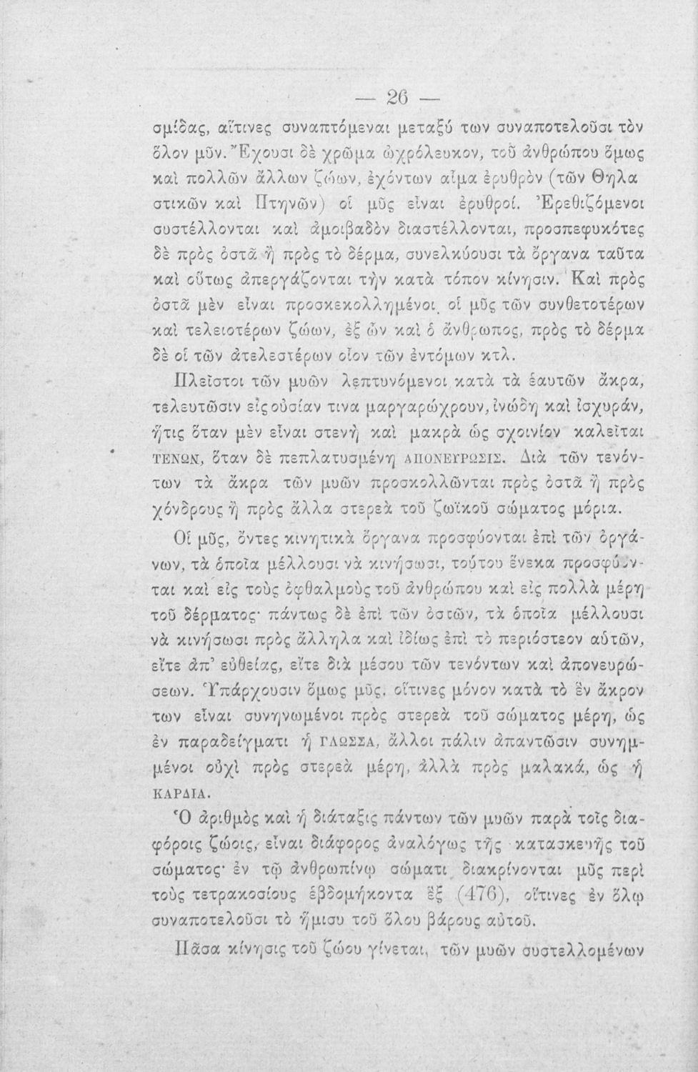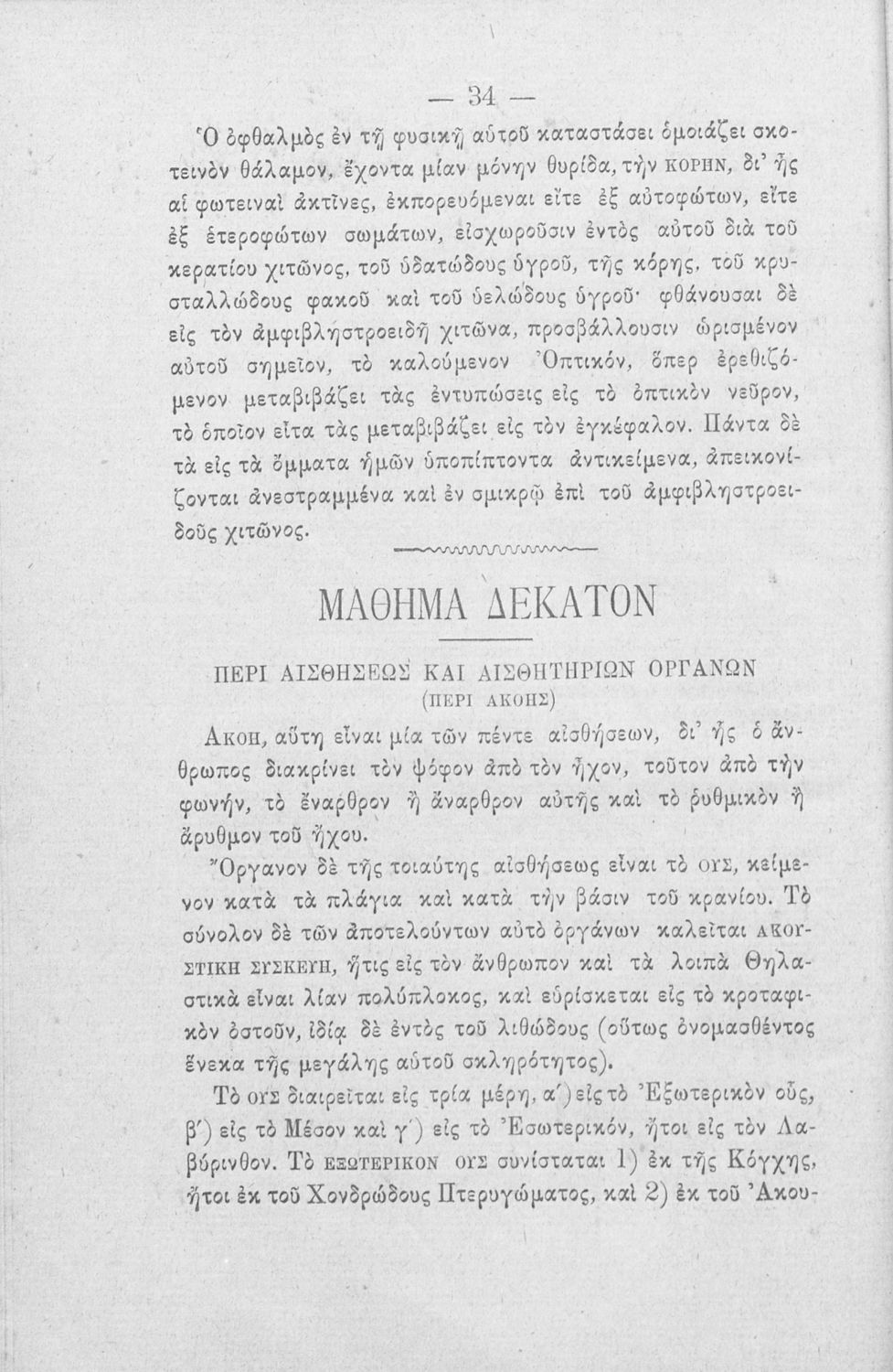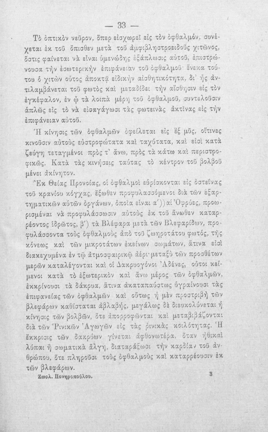 Σχολικό εγχειρίδιο Ζωολογίας των Γυμνασίων, Διδασκαλείων και Παρθεναγωγείων. Στο πρώτο μέρος του βιβλίου παρουσιάζεται η δομή του ανθρώπινου σώματος και τα διάφορα συστήματα του ανθρώπινου οργανισμού, όπως το νευρικό και αγγειακό. Στο δεύτερο μέρος, το βιβλίο παρουσιάζει τα διάφορα είδη των ζώων και τα κατηγοριοποιεί τρεις κατηγορίες, τα σπονδυλωτά, τα αρθωτά, όπως τα έντομα και τα σκουλήκια, και τέλος τα μαλάκια και παρουσιάζει τις ιδιότητές και τα χαρακτηριστικά τους και τα μέρη τα οποία συναντώνται.