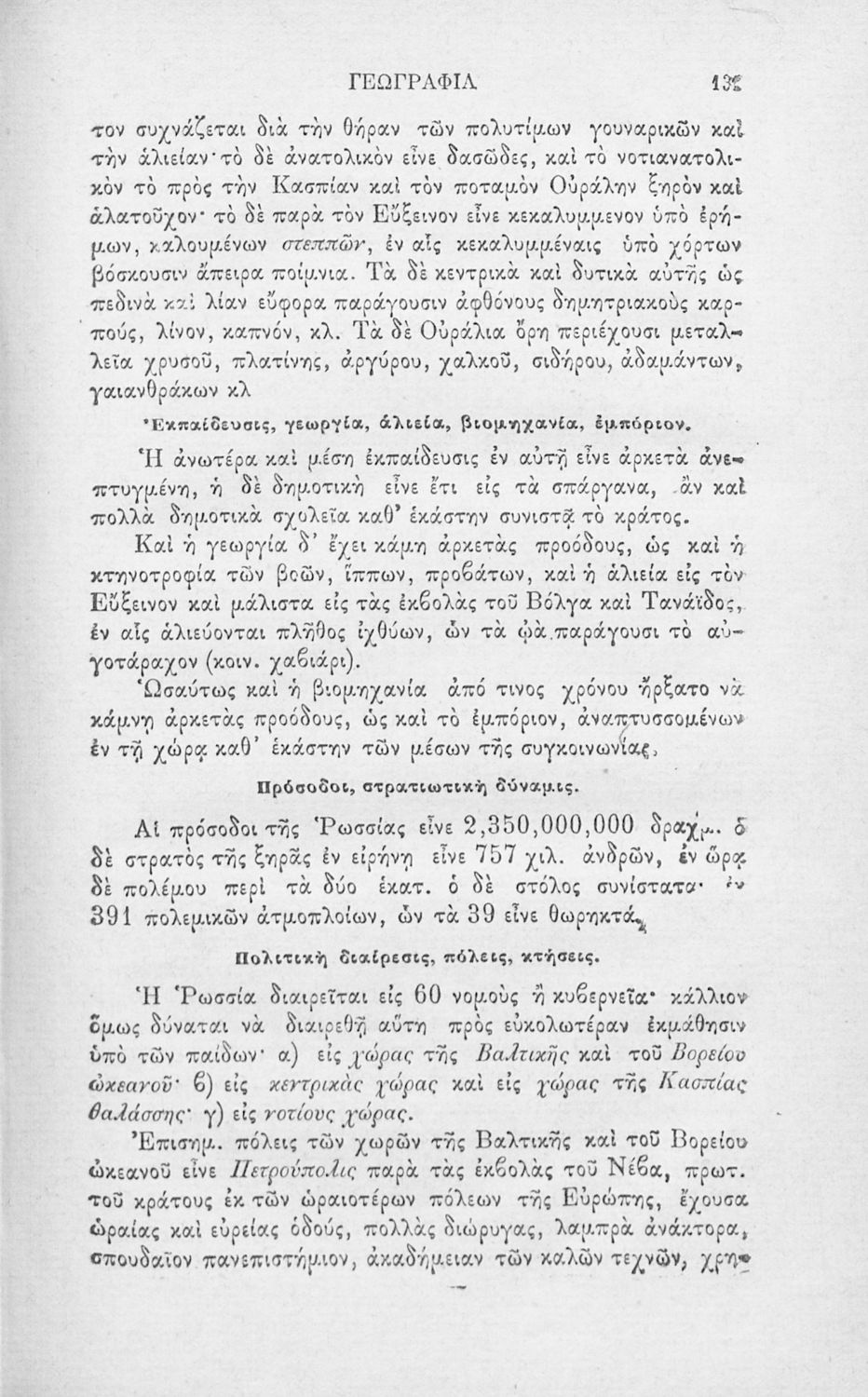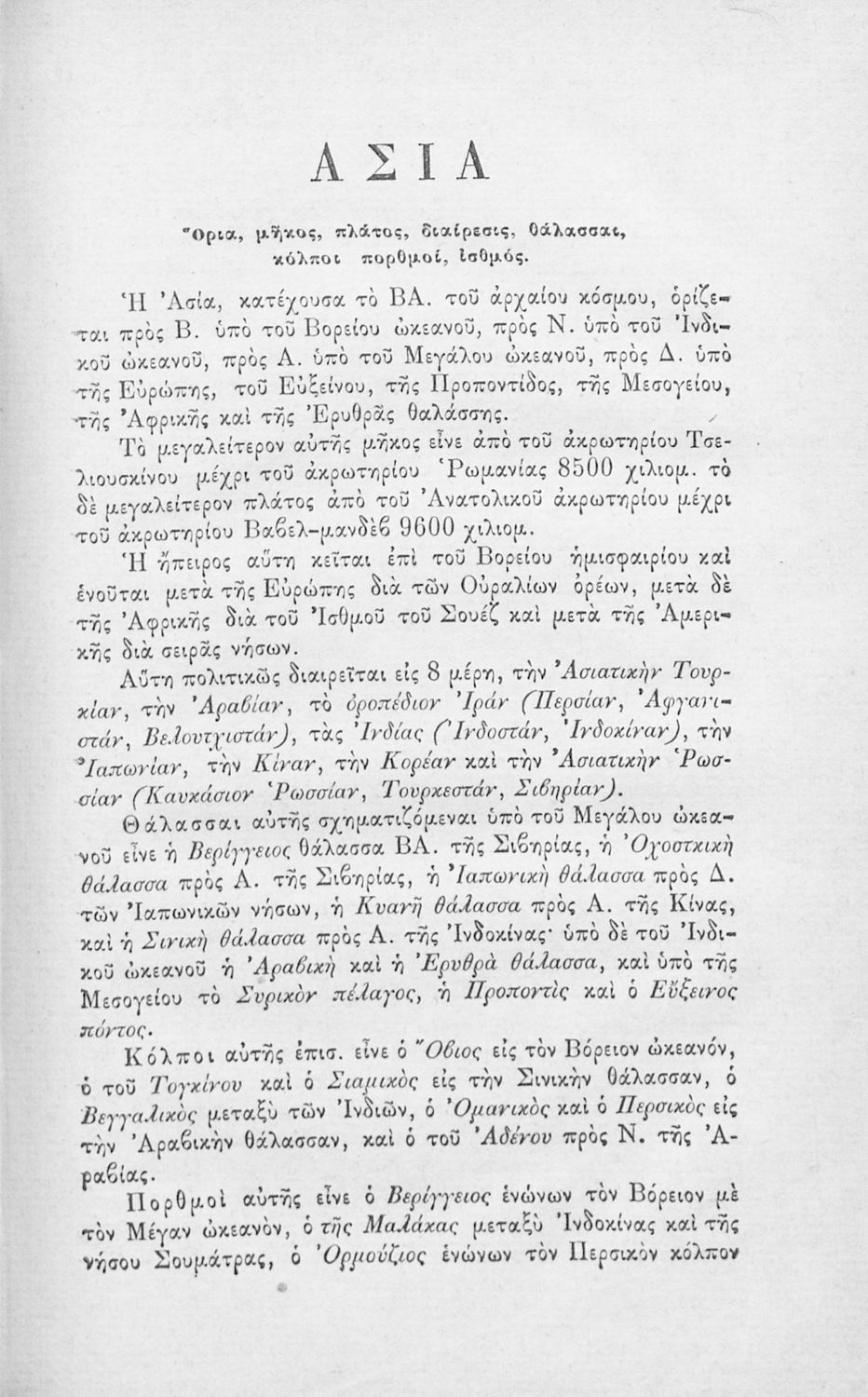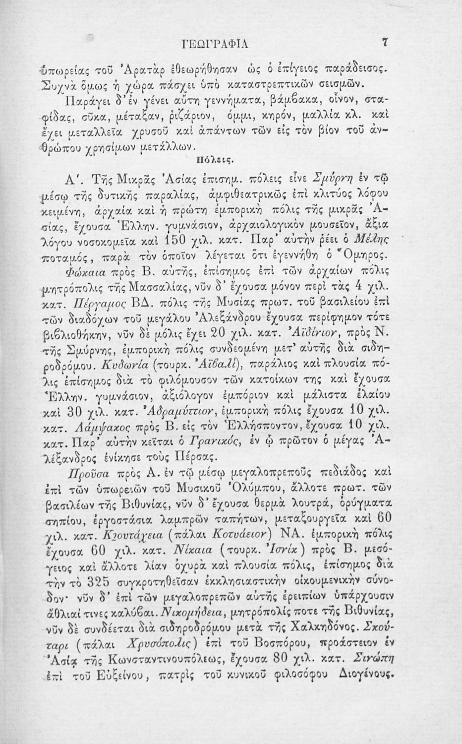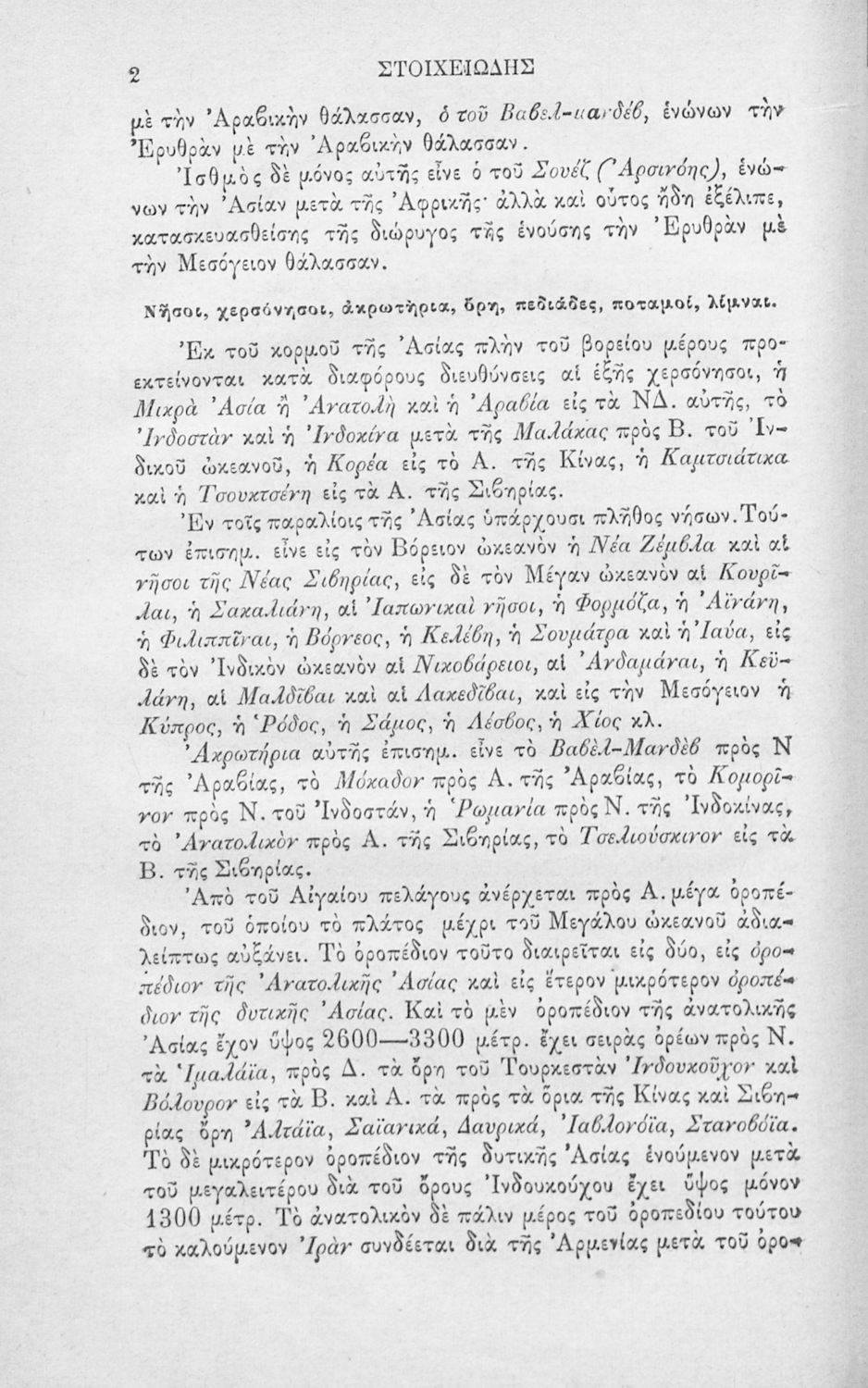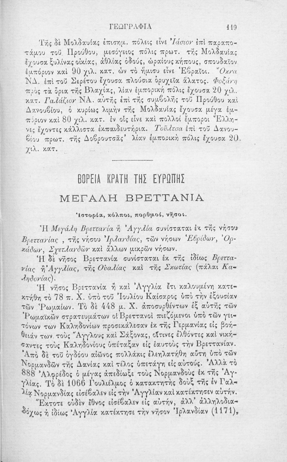 Βαθμίδα εκπαίδευσης: Δευτεροβάθμια Τάξη: Ελληνικό Σχολείο Μάθημα: Γεωγραφία Γλώσσα: Καθαρεύουσα Παρουσίαση περιεχομένου: Σχολικό εγχειρίδιο Πολιτικής και Φυσικής Γεωγραφίας για τους μαθητές των Ελληνικών Σχολείων το οποίο παρουσιάζει συνοπτικά τη γεωγραφία της Ελλάδας και των βασικότερων χωρών του ευρωπαϊκού χώρου αναλύοντας τη γεωμορφολογία καθώς και ζητήματα θρησκείας, πληθυσμού, γλώσσας και πολιτεύματος κάθε χώρας. |