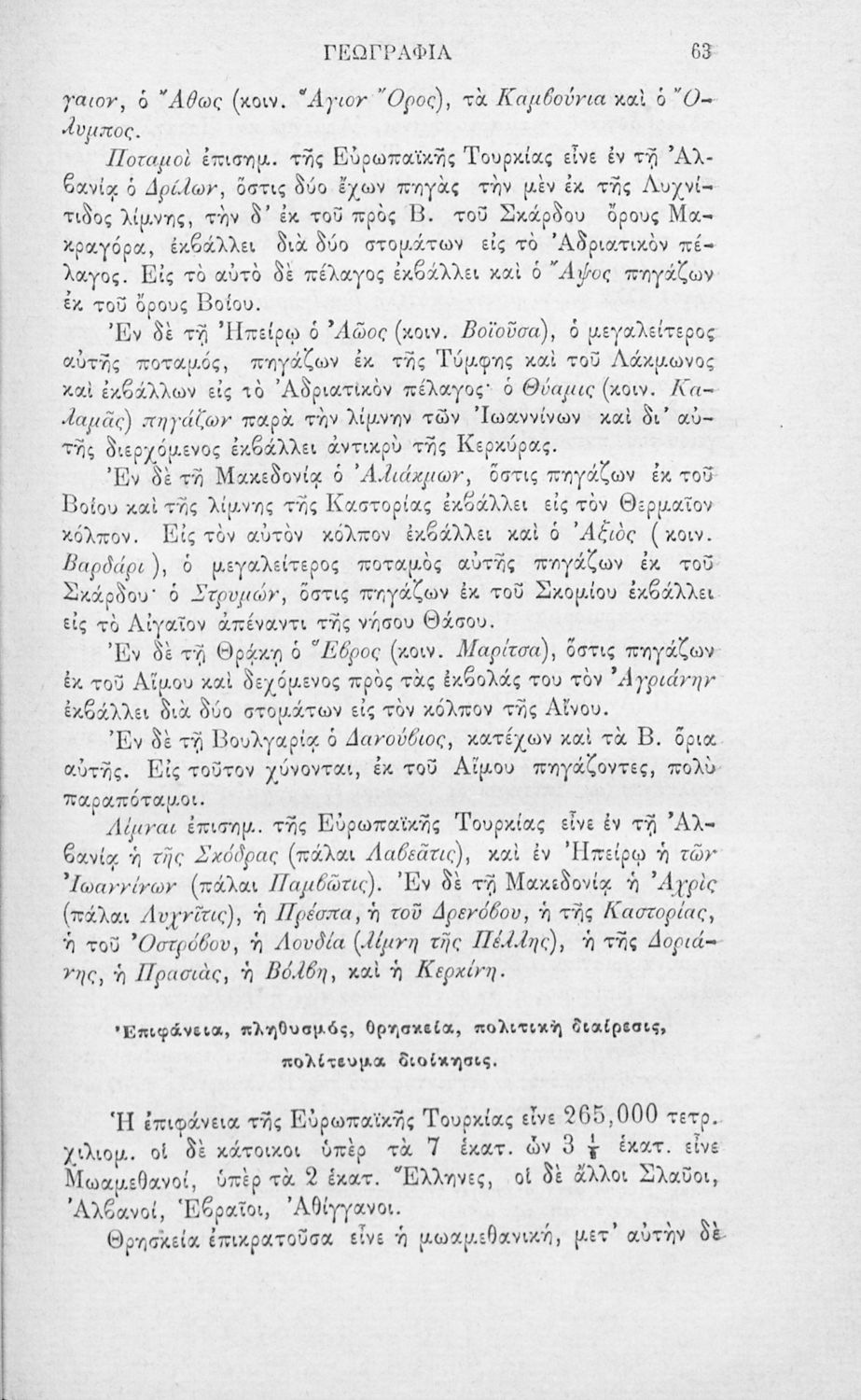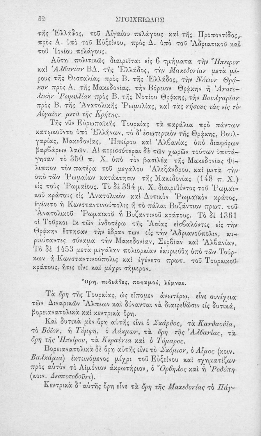 Βαθμίδα εκπαίδευσης: Δευτεροβάθμια Τάξη: Ελληνικό Σχολείο Μάθημα: Γεωγραφία Γλώσσα: Καθαρεύουσα Παρουσίαση περιεχομένου: Σχολικό εγχειρίδιο Πολιτικής και Φυσικής Γεωγραφίας για τους μαθητές των Ελληνικών Σχολείων το οποίο παρουσιάζει συνοπτικά τη γεωγραφία της Ελλάδας και των βασικότερων χωρών του ευρωπαϊκού χώρου αναλύοντας τη γεωμορφολογία καθώς και ζητήματα θρησκείας, πληθυσμού, γλώσσας και πολιτεύματος κάθε χώρας. |