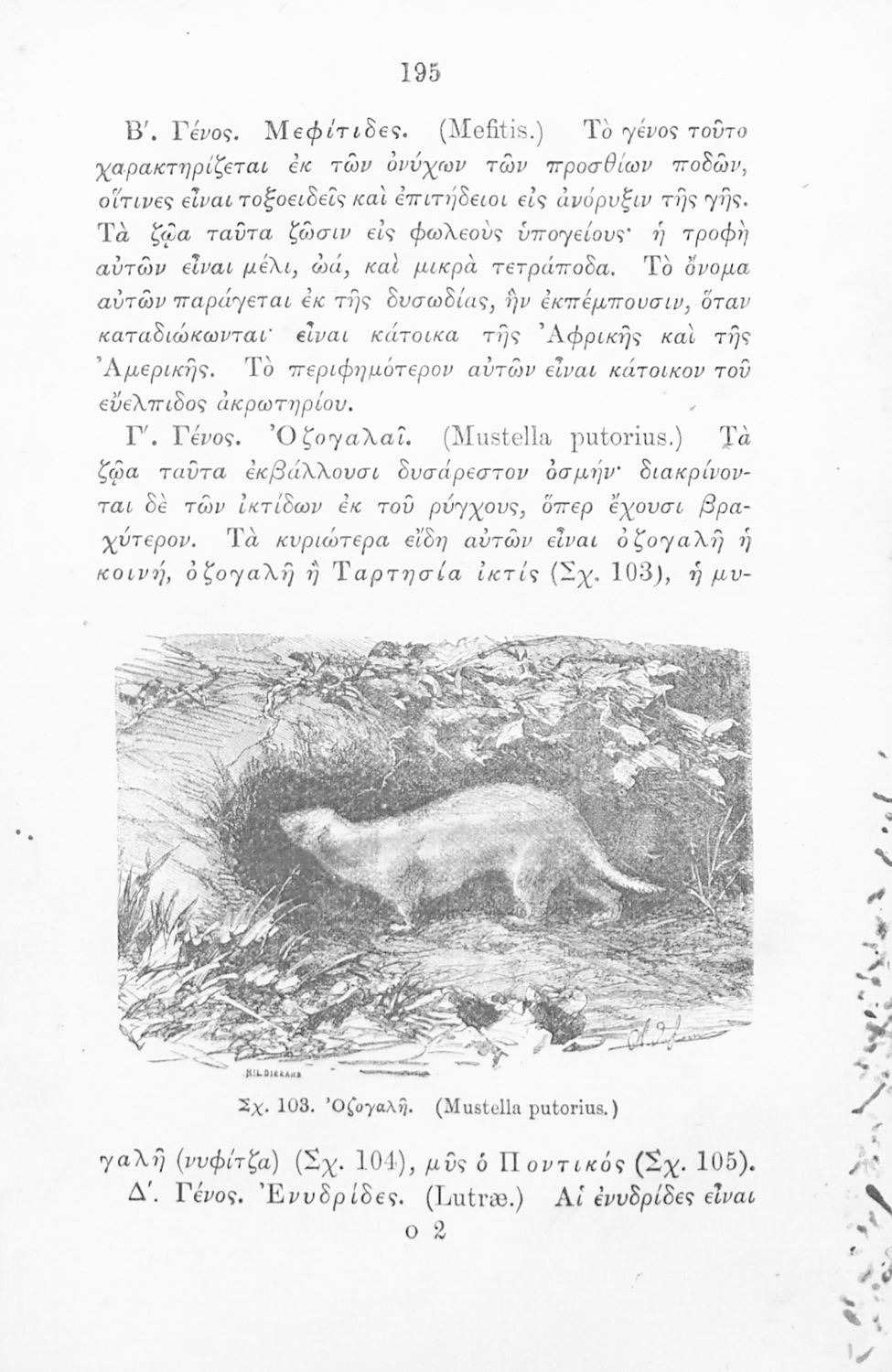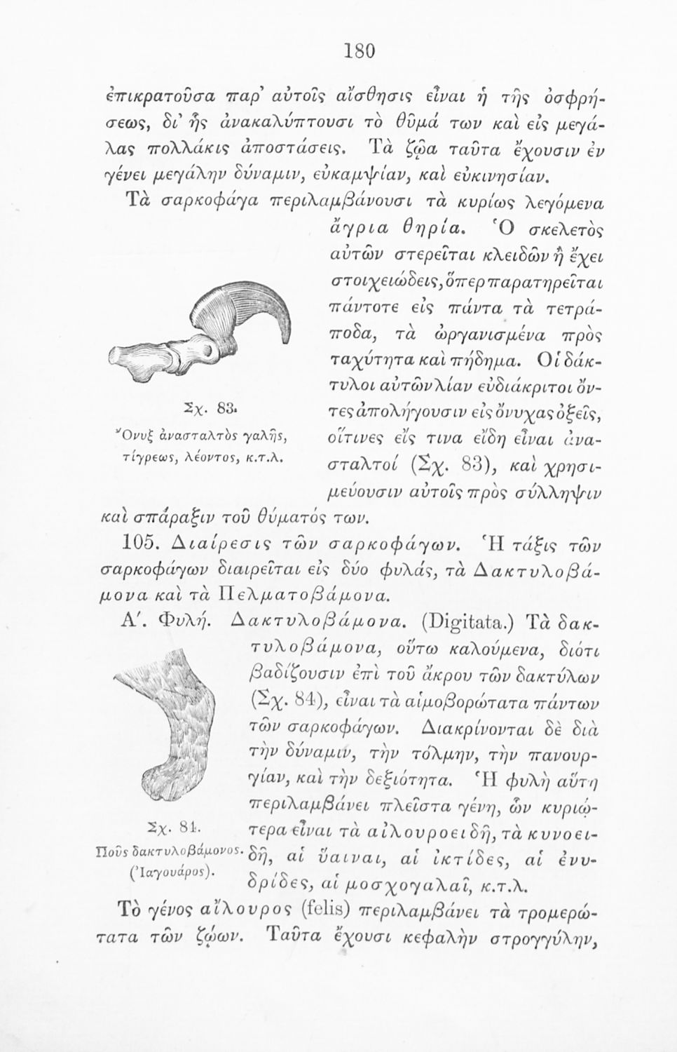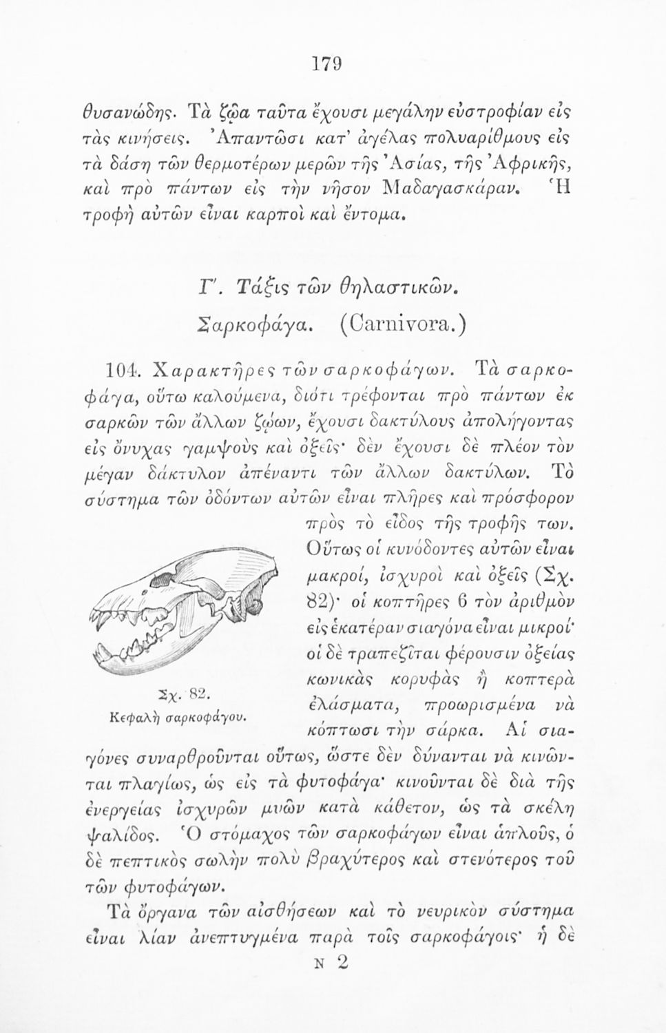 Σχολικό εγχειρίδιο Ζωολογίας των Γυμνασίων, Διδασκαλείων και Παρθεναγωγείων. Στο πρώτο μέρος του βιβλίου παρουσιάζεται η δομή του ανθρώπινου σώματος και τα διάφορα συστήματα του ανθρώπινου οργανισμού, όπως το νευρικό και αγγειακό. Στο δεύτερο μέρος, το βιβλίο παρουσιάζει τα διάφορα είδη των ζώων και τα κατηγοριοποιεί τρεις κατηγορίες, τα σπονδυλωτά, τα αρθωτά, όπως τα έντομα και τα σκουλήκια, και τέλος τα μαλάκια και παρουσιάζει τις ιδιότητές και τα χαρακτηριστικά τους και τα μέρη τα οποία συναντώνται.