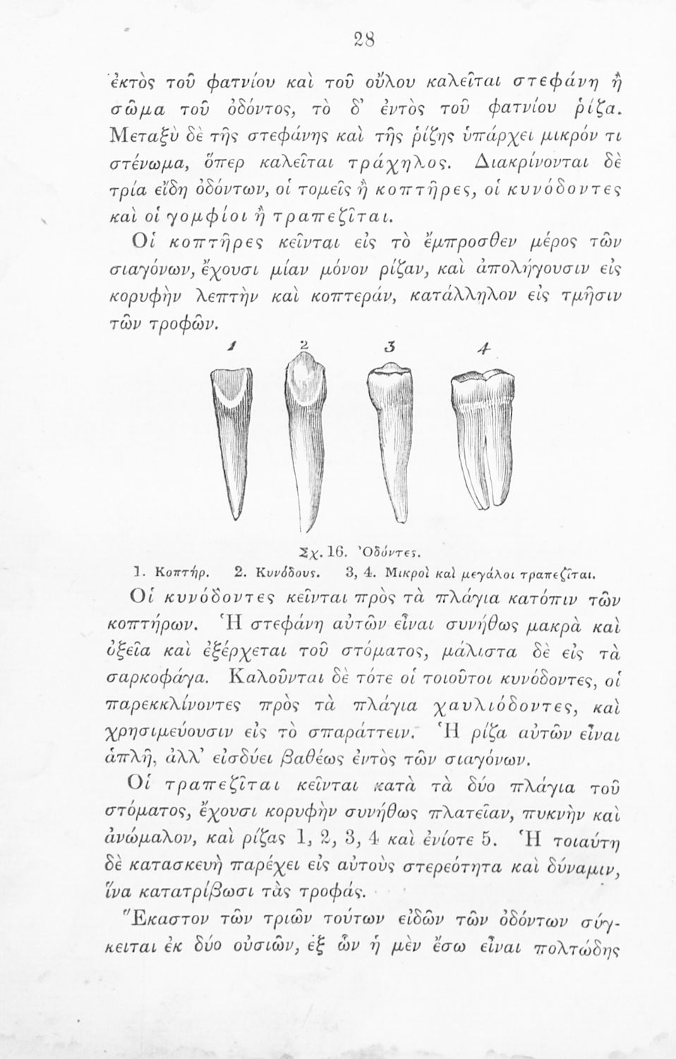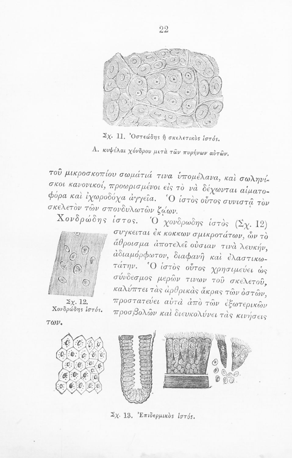 Σχολικό εγχειρίδιο Ζωολογίας των Γυμνασίων, Διδασκαλείων και Παρθεναγωγείων. Στο πρώτο μέρος του βιβλίου παρουσιάζεται η δομή του ανθρώπινου σώματος και τα διάφορα συστήματα του ανθρώπινου οργανισμού, όπως το νευρικό και αγγειακό. Στο δεύτερο μέρος, το βιβλίο παρουσιάζει τα διάφορα είδη των ζώων και τα κατηγοριοποιεί τρεις κατηγορίες, τα σπονδυλωτά, τα αρθωτά, όπως τα έντομα και τα σκουλήκια, και τέλος τα μαλάκια και παρουσιάζει τις ιδιότητές και τα χαρακτηριστικά τους και τα μέρη τα οποία συναντώνται.