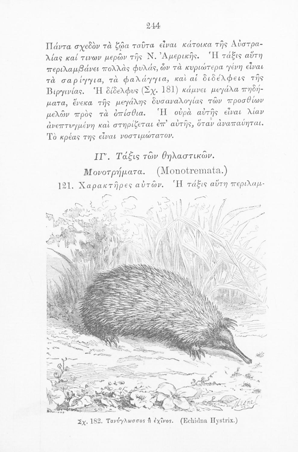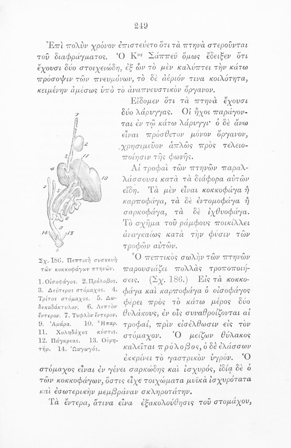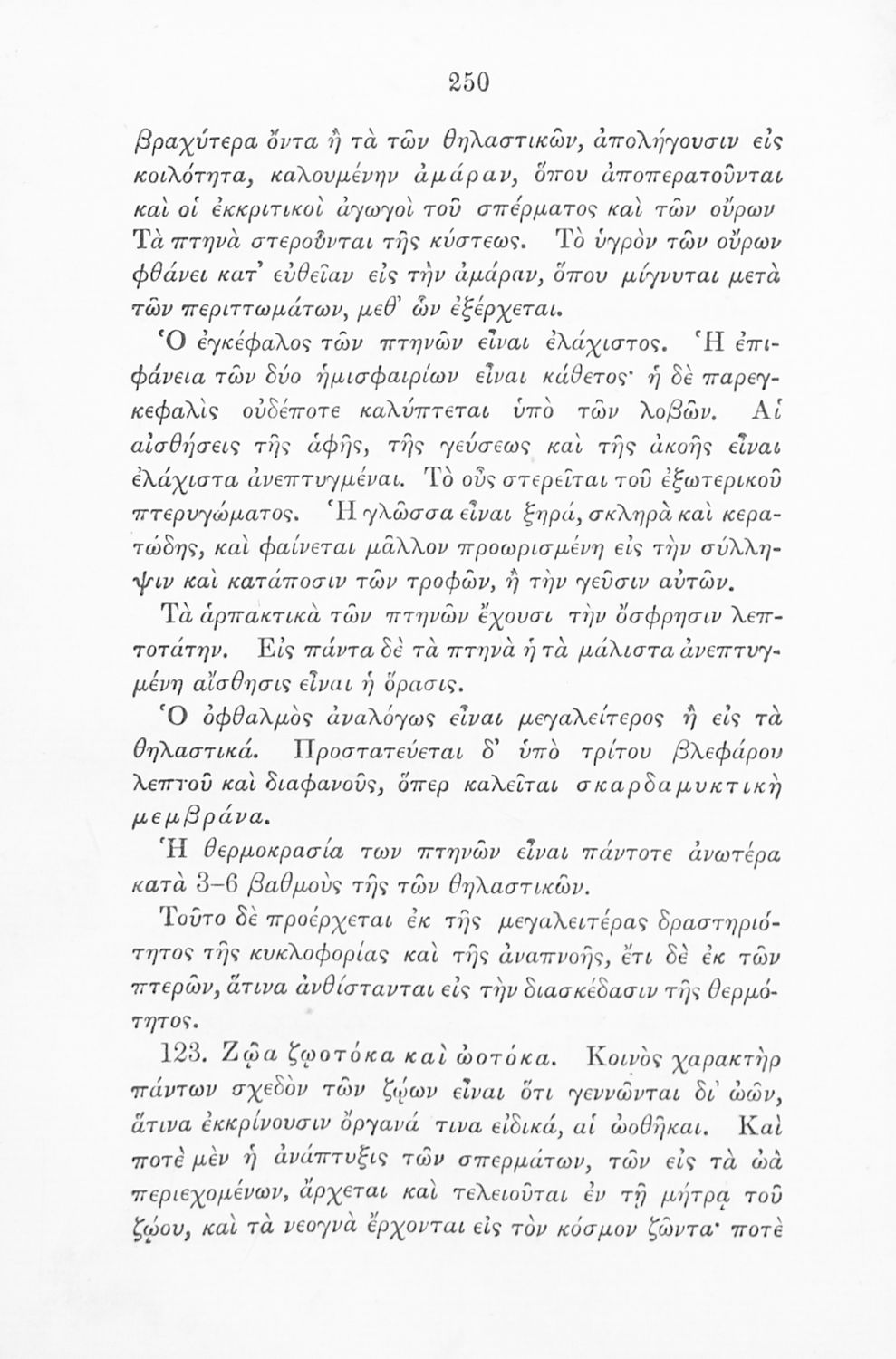 Σχολικό εγχειρίδιο Ζωολογίας των Γυμνασίων, Διδασκαλείων και Παρθεναγωγείων. Στο πρώτο μέρος του βιβλίου παρουσιάζεται η δομή του ανθρώπινου σώματος και τα διάφορα συστήματα του ανθρώπινου οργανισμού, όπως το νευρικό και αγγειακό. Στο δεύτερο μέρος, το βιβλίο παρουσιάζει τα διάφορα είδη των ζώων και τα κατηγοριοποιεί τρεις κατηγορίες, τα σπονδυλωτά, τα αρθωτά, όπως τα έντομα και τα σκουλήκια, και τέλος τα μαλάκια και παρουσιάζει τις ιδιότητές και τα χαρακτηριστικά τους και τα μέρη τα οποία συναντώνται.