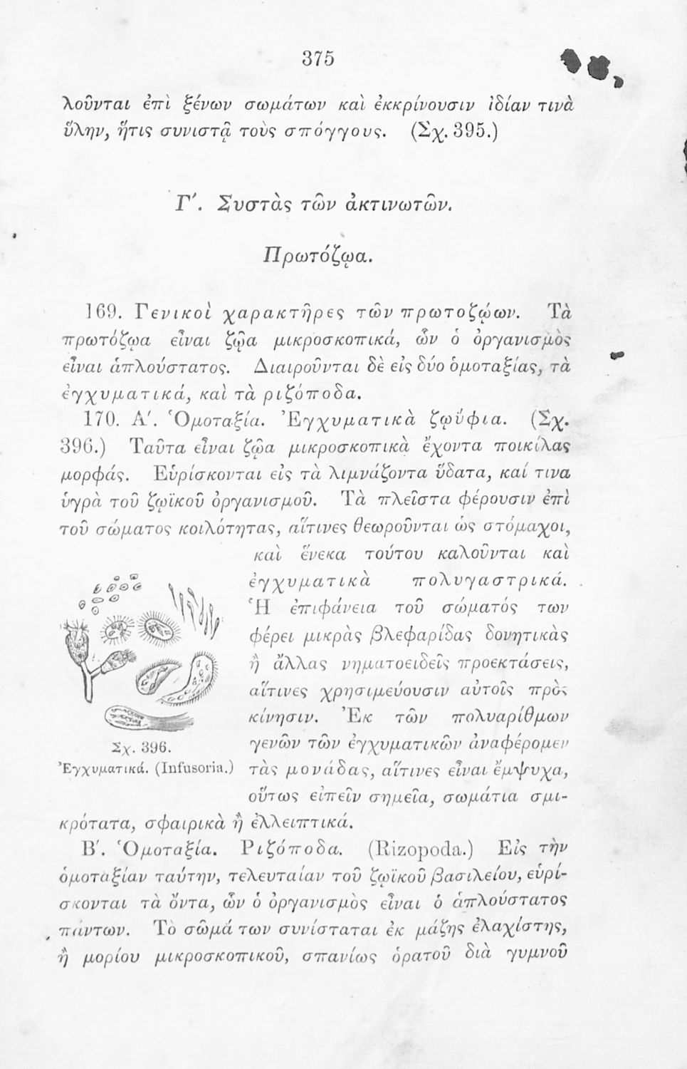 Σχολικό εγχειρίδιο Ζωολογίας των Γυμνασίων, Διδασκαλείων και Παρθεναγωγείων. Στο πρώτο μέρος του βιβλίου παρουσιάζεται η δομή του ανθρώπινου σώματος και τα διάφορα συστήματα του ανθρώπινου οργανισμού, όπως το νευρικό και αγγειακό. Στο δεύτερο μέρος, το βιβλίο παρουσιάζει τα διάφορα είδη των ζώων και τα κατηγοριοποιεί τρεις κατηγορίες, τα σπονδυλωτά, τα αρθωτά, όπως τα έντομα και τα σκουλήκια, και τέλος τα μαλάκια και παρουσιάζει τις ιδιότητές και τα χαρακτηριστικά τους και τα μέρη τα οποία συναντώνται.