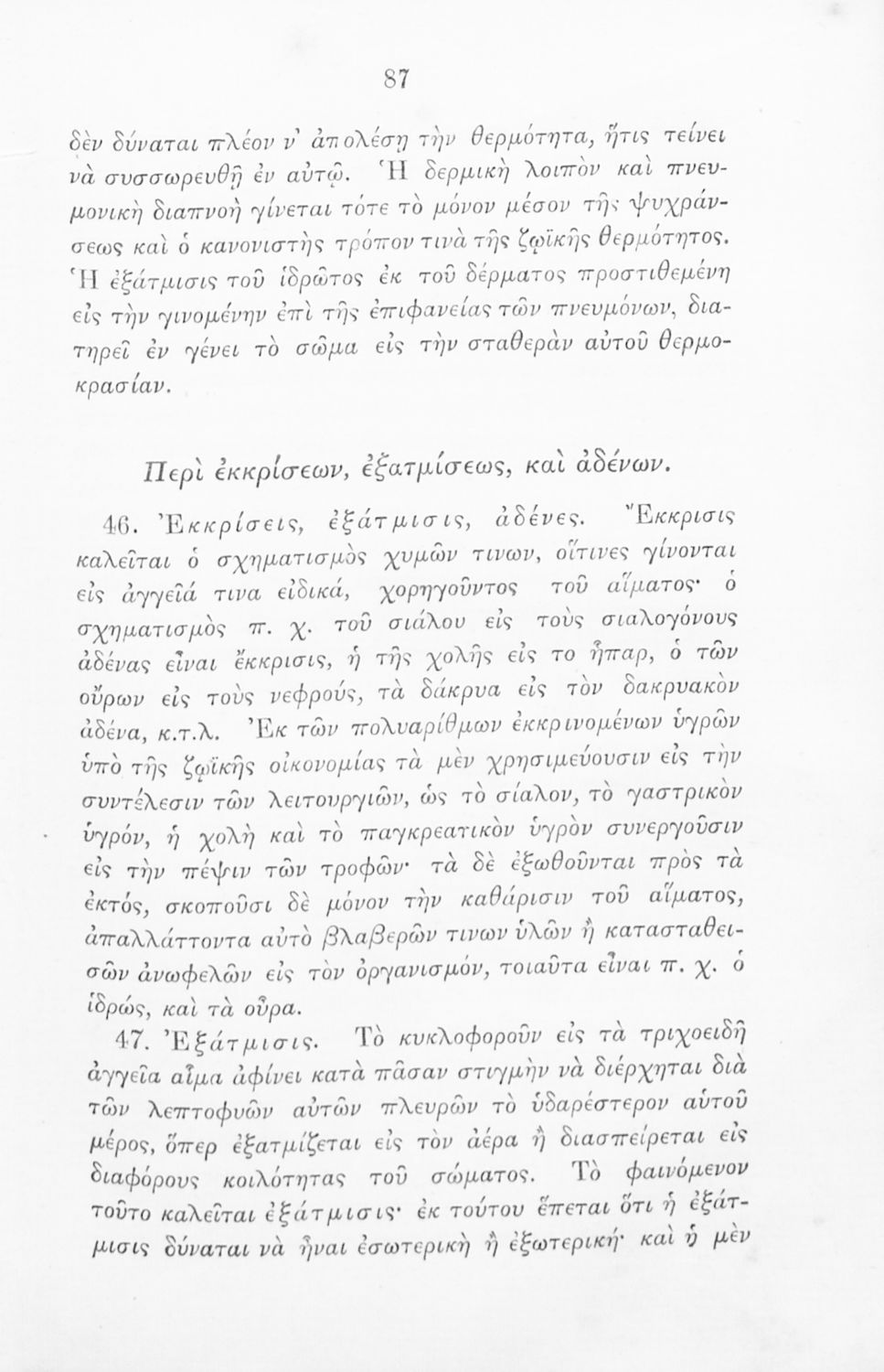 LDR 02022 2200205 4500 035 ## _a02-02449 040 ## _aΕλληνικό Λογοτεχνικό και Ιστορικό Αρχείο 041 ## _ael 100 ## _aΠ. Ψαράς 110 ## _a1887.779 245 0# _aΣτοιχειώδης Ζωολογία, ερανισθείσα εκ δοκίμων αγγλικών και γαλλικών φυσιογραφικών συγγραμμάτων, προς χρήσιν των Γυμνασίων του κράτους (μετά τετρακοσίων εικόνων) 260 ## _aΑθήνα _bΤυπογραφείο: Rivington _c1887 300 ## _a384 _bΕικόνες (ασπρόμαυρες), Σκίτσα (ασπρόμαυρα) 520 ## _aΣχολικό εγχειρίδιο Ζωολογίας των Γυμνασίων, Διδασκαλείων και Παρθεναγωγείων. Στο πρώτο μέρος του βιβλίου παρουσιάζεται η δομή του ανθρώπινου σώματος και τα διάφορα συστήματα του ανθρώπινου οργανισμού, όπως το νευρικό και αγγειακό. Στο δεύτερο μέρος, το βιβλίο παρουσιάζει τα διάφορα είδη των ζώων και τα κατηγοριοποιεί τρεις κατηγορίες, τα σπονδυλωτά, τα αρθωτά, όπως τα έντομα και τα σκουλήκια, και τέλος τα μαλάκια και παρουσιάζει τις ιδιότητές και τα χαρακτηριστικά τους και τα μέρη τα οποία συναντώνται. 521 ## _aΓυμνάσιο 522 ## _aΕλλάδα 546 ## _aΚαθαρεύουσα 563 ## _aΜαλακό Εξώφυλλο 583 ## _a8347/23-6-1884 650 #4 _aΆνθρωπος _aΑσπόνδυλα _aΕρπετά _aΘηλαστικά _aΜαλάκια _aΜυϊκό σύστημα _aΠτηνά _aΣκελετικό σύστημα _aΣπονδυλωτά
