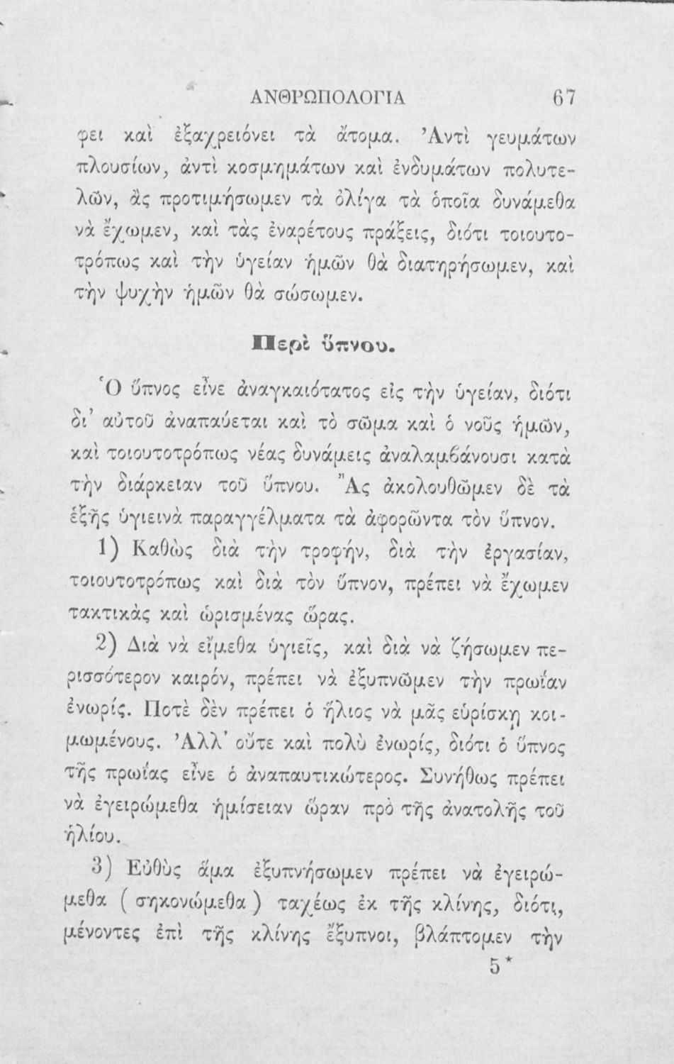 Σύντομος ανθρωπολογία, μετά υγιεινών παραγγελμάτων, προς χρήσιν των Δημοτικών Σχολείων