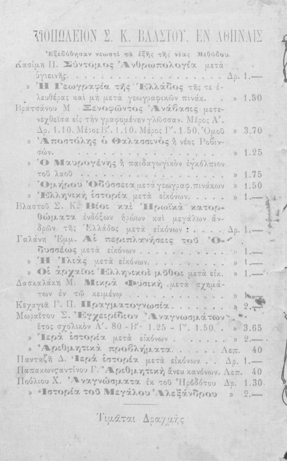 Τίτλος: Σύντομος ανθρωπολογία, μετά υγιεινών παραγγελμάτων, προς χρήσιν των Δημοτικών Σχολείων