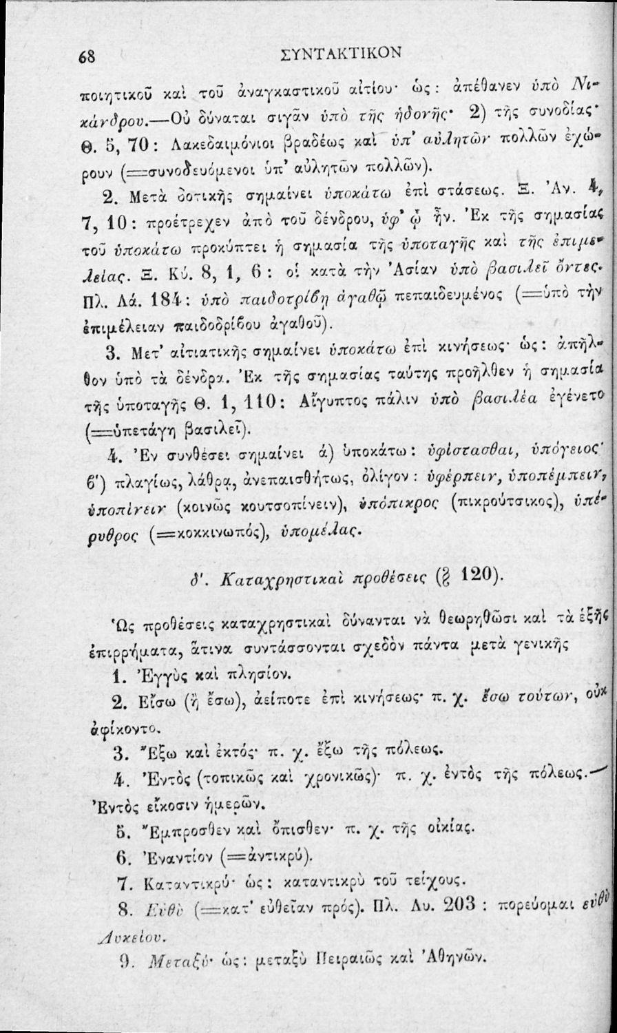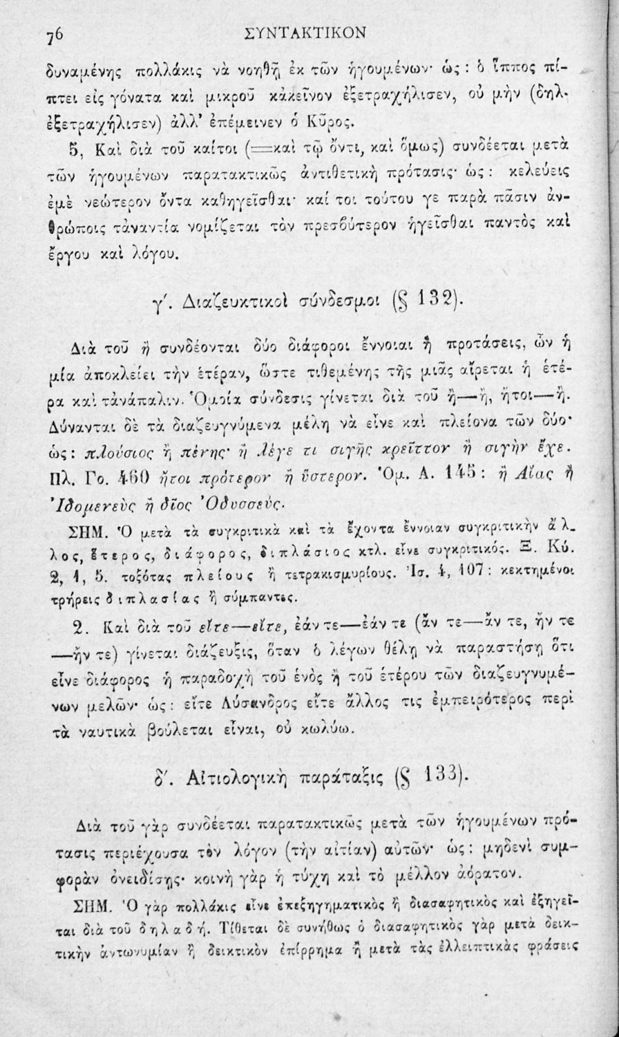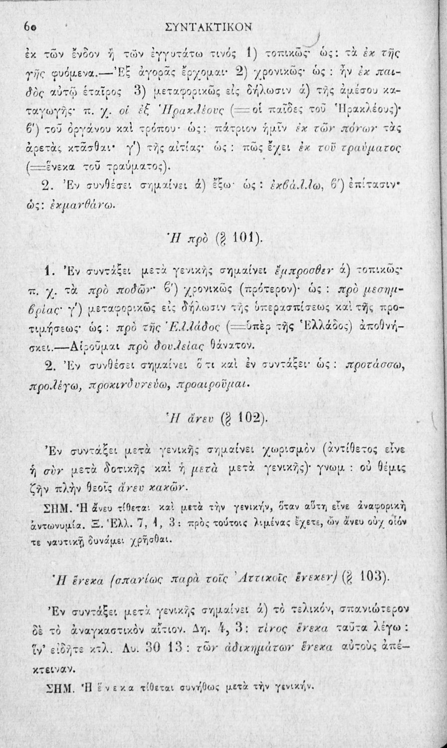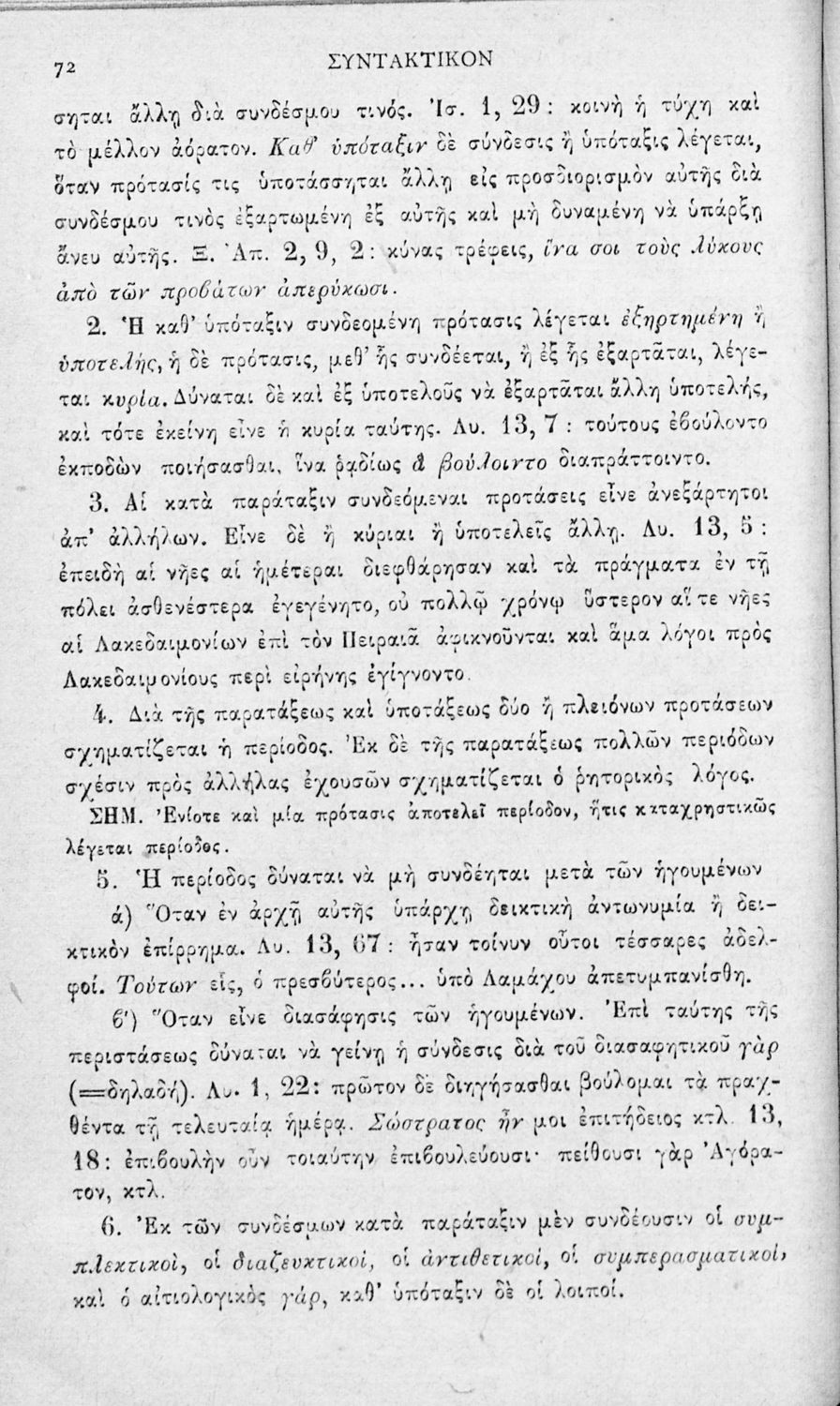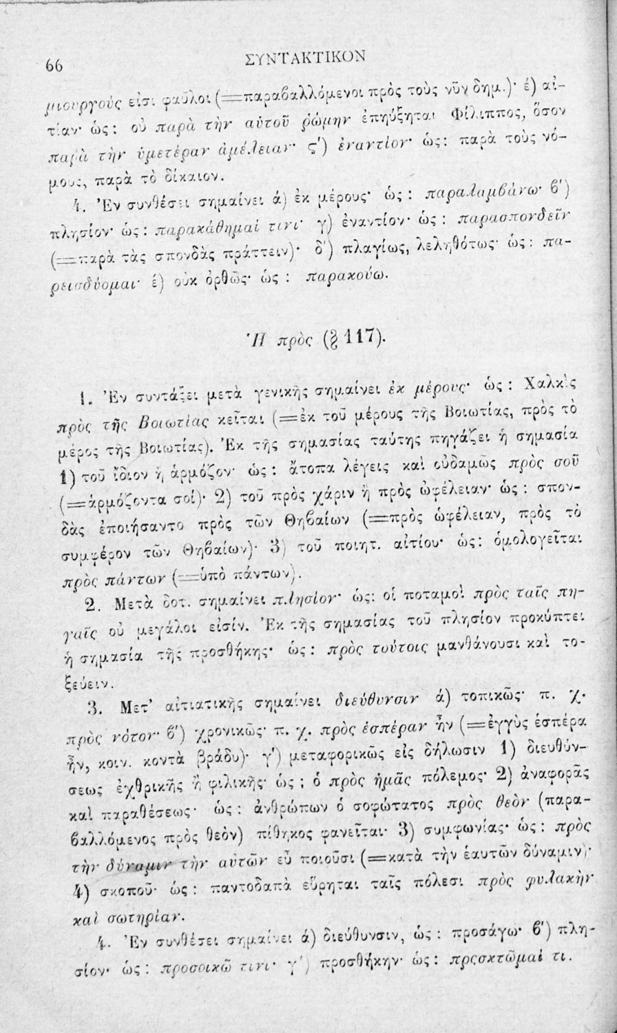 Σχολικό εγχειρίδιο Αρχαίων Ελληνικών για τα Ελληνικά Σχολεία και τα Ανώτερα Παρθεναγωγεία που εξετάζει τα μέρη του λόγου και την σύνταξή τους.