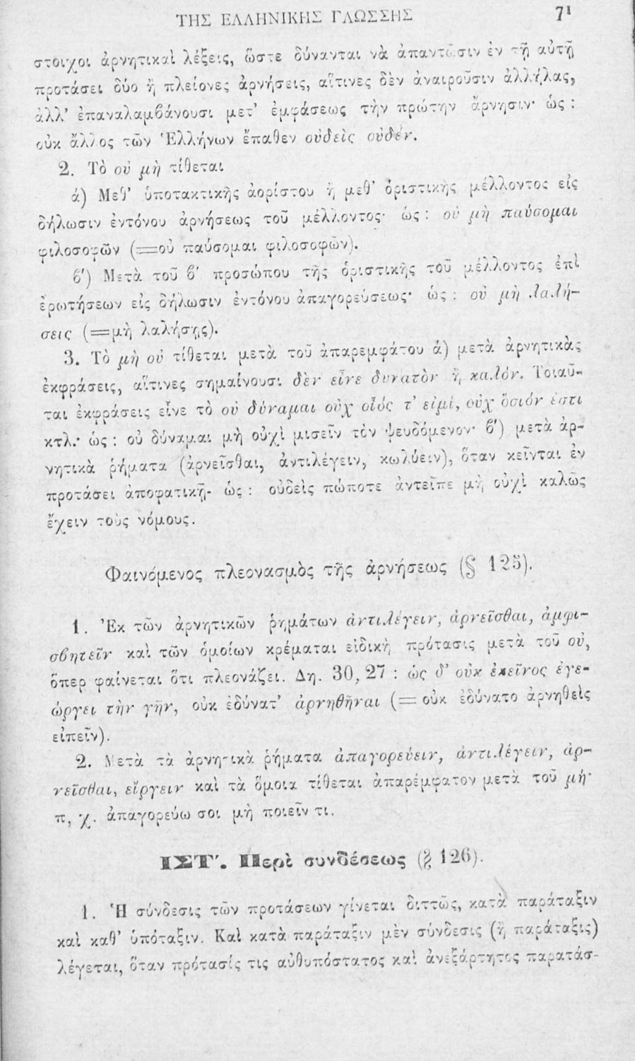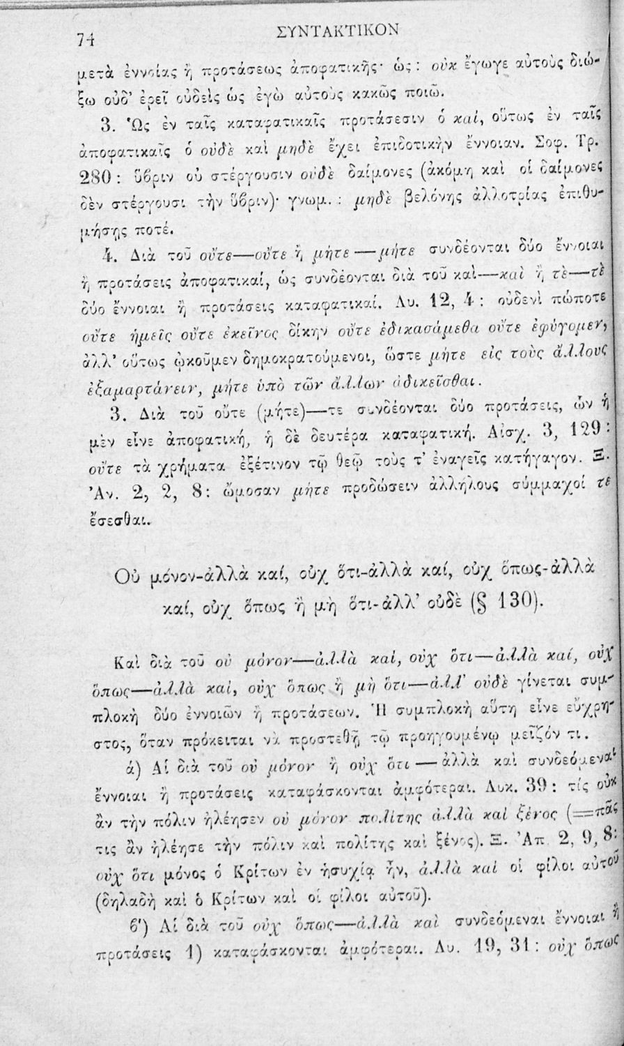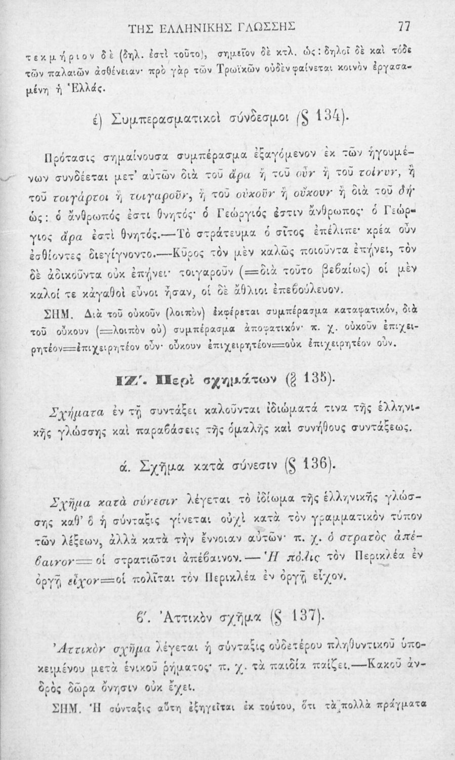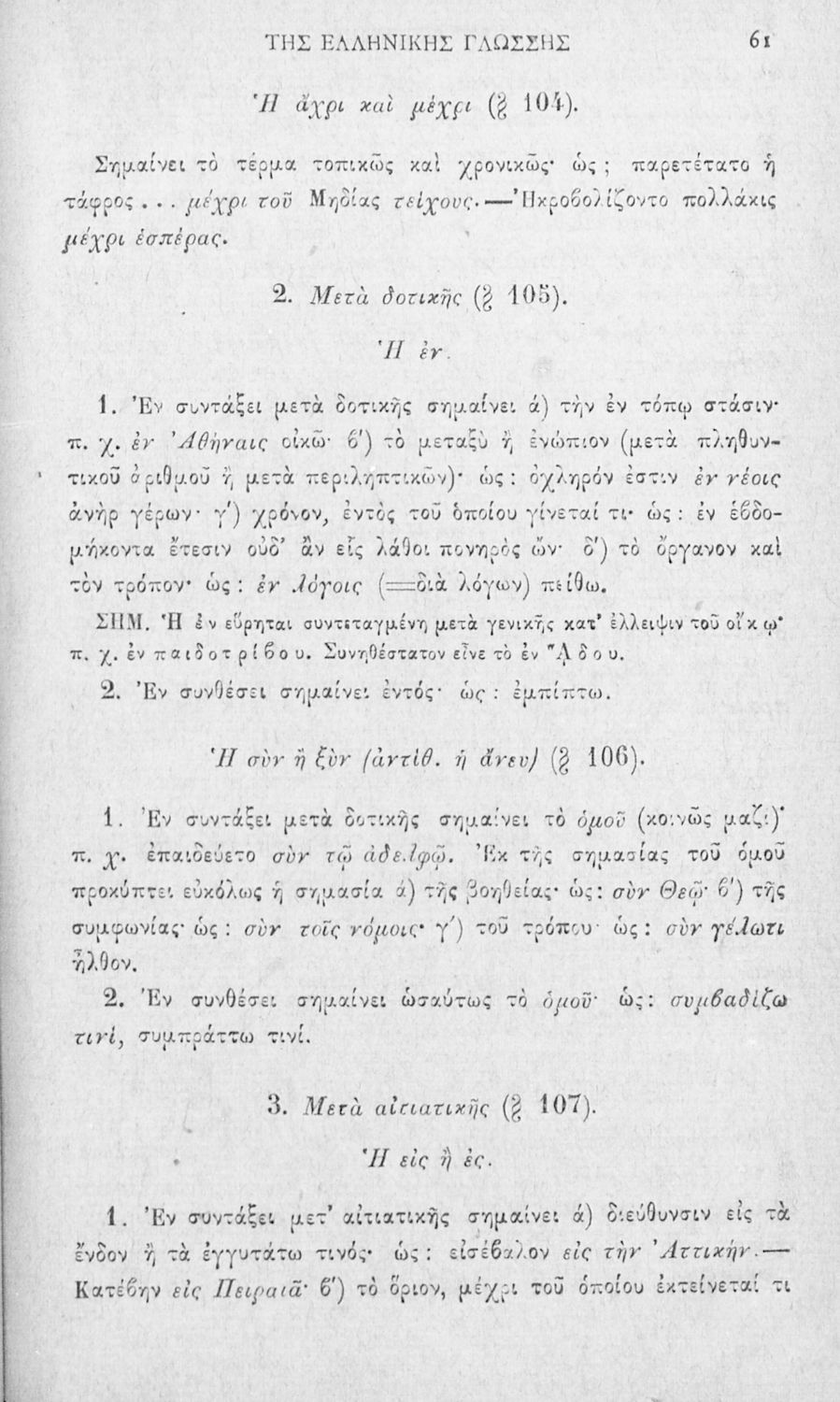 Σχολικό εγχειρίδιο Αρχαίων Ελληνικών για τα Ελληνικά Σχολεία και τα Ανώτερα Παρθεναγωγεία που εξετάζει τα μέρη του λόγου και την σύνταξή τους.