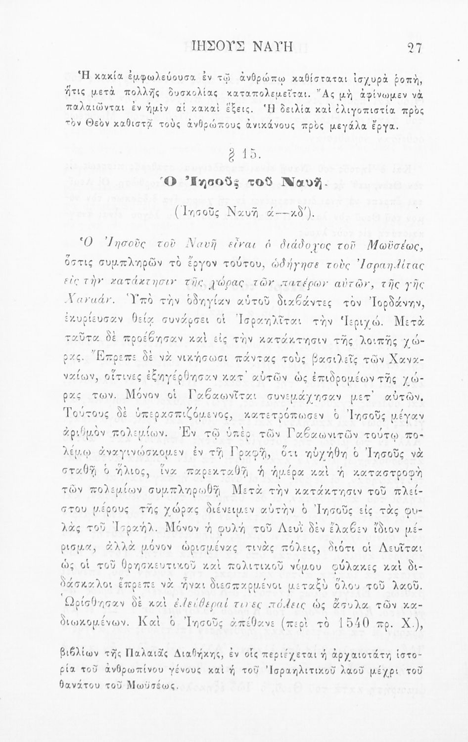 Μαθητικό βοήθημα Θρησκευτικών που συνιστά μία εξιστόρηση της Παλαιάς και Καινής διαθήκης Διαθήκης από τη δημιουργία του κόσμου ως την ανάληψη του Ιησού Χριστού. Ο συγγραφέας ήταν καθηγητής Θεολογίας στο Εθνικό Πανεπιστήμιο.