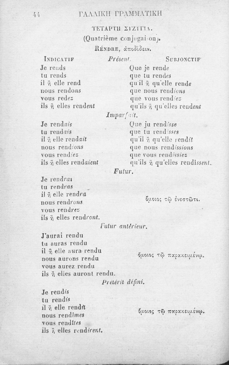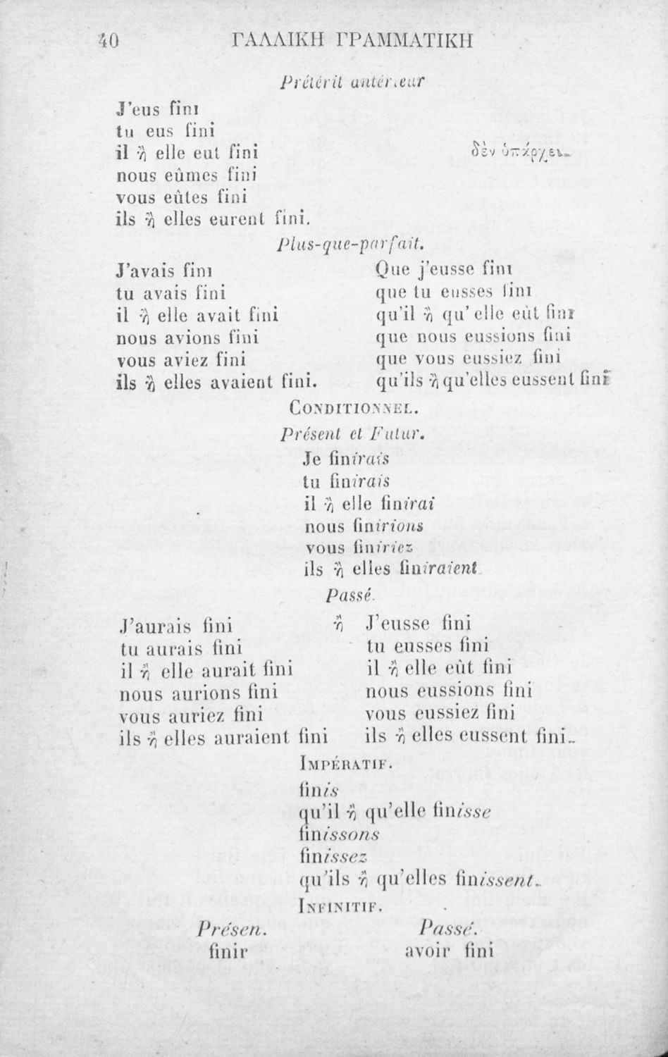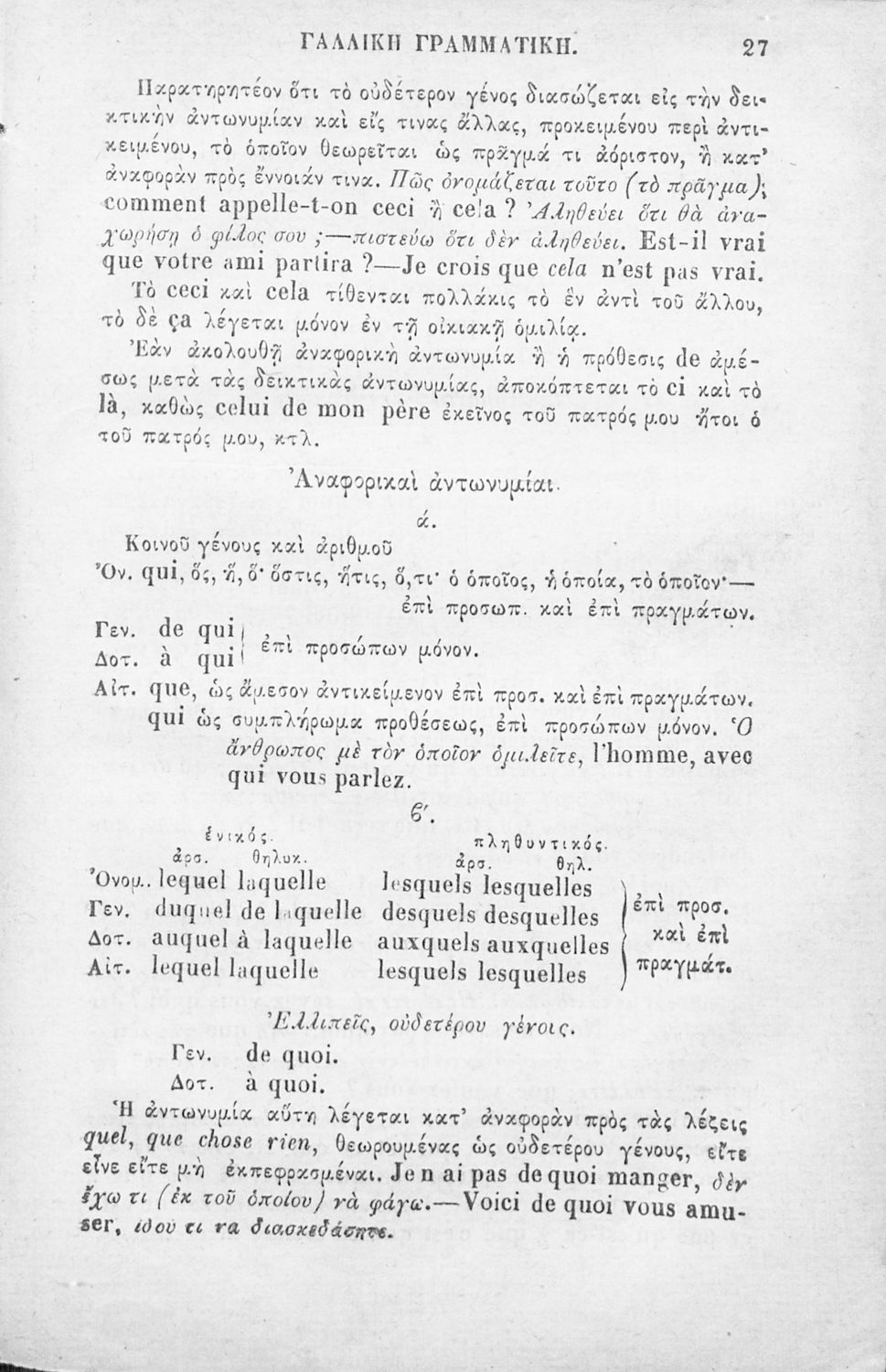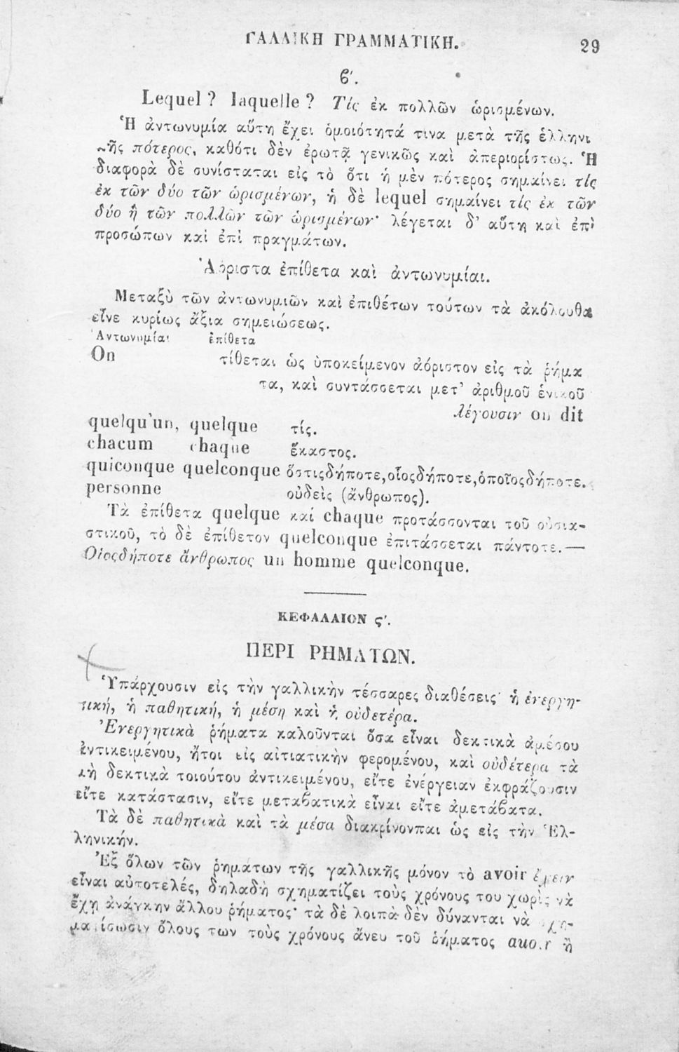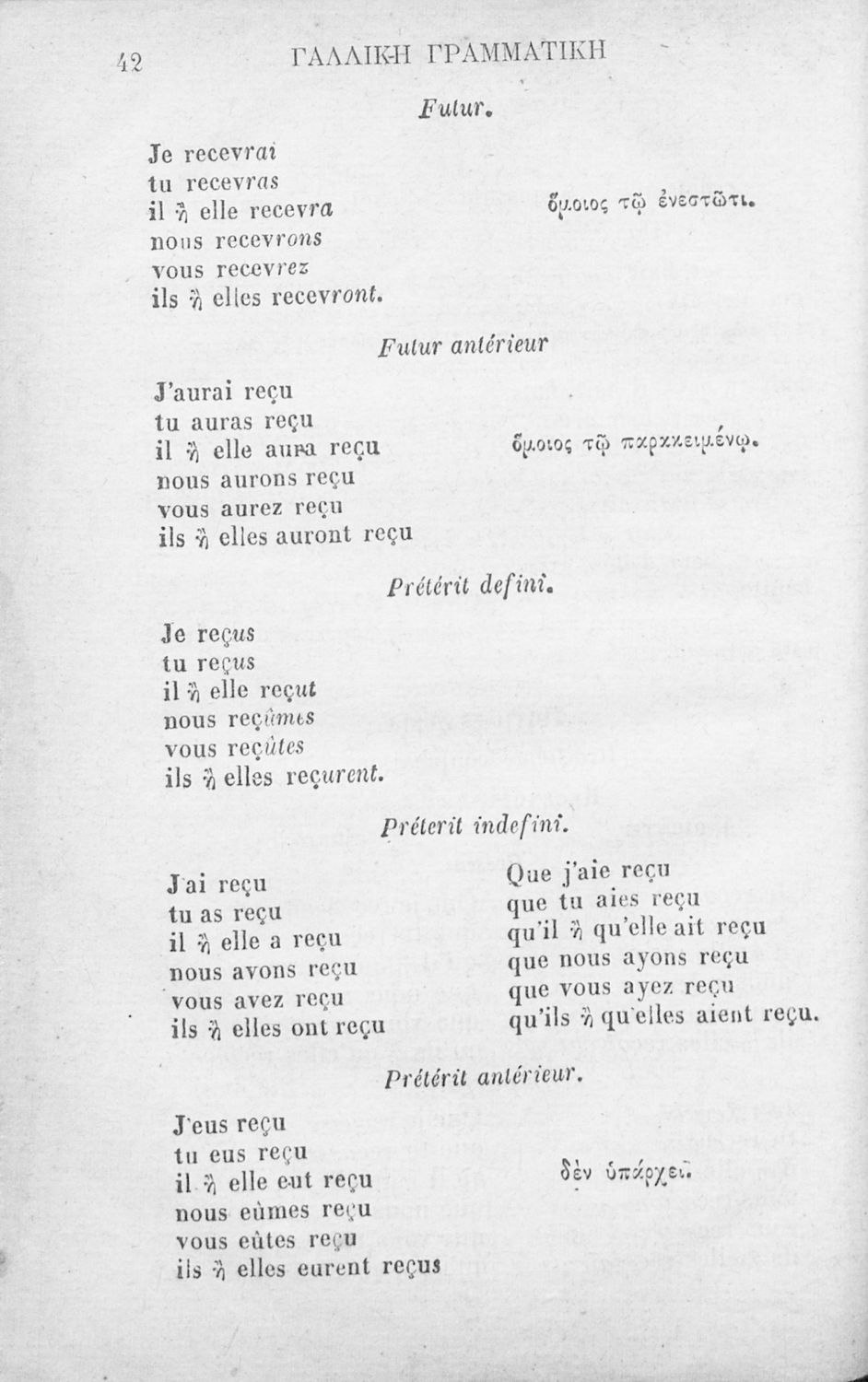 Γραμματική της γαλλικής γλώσσας για τους μαθητές των Ελληνικών σχολείων. Στο εγχειρίδιο παρουσιάζονται τα διάφορα μέρη του λόγου και η σωστή χρήση τους στις προτάσεις.