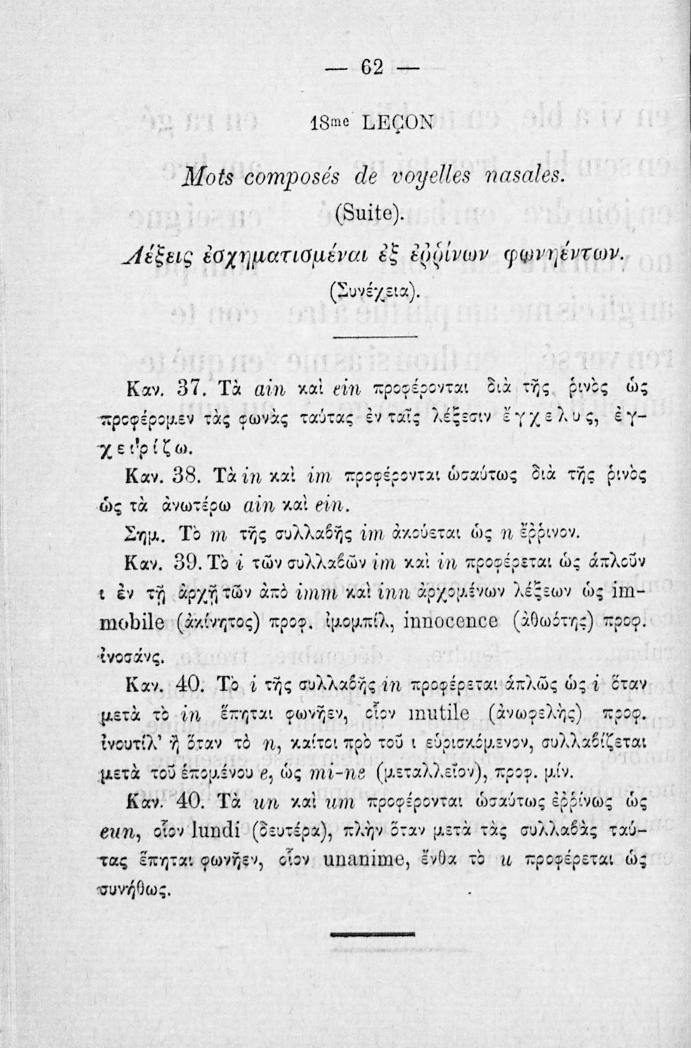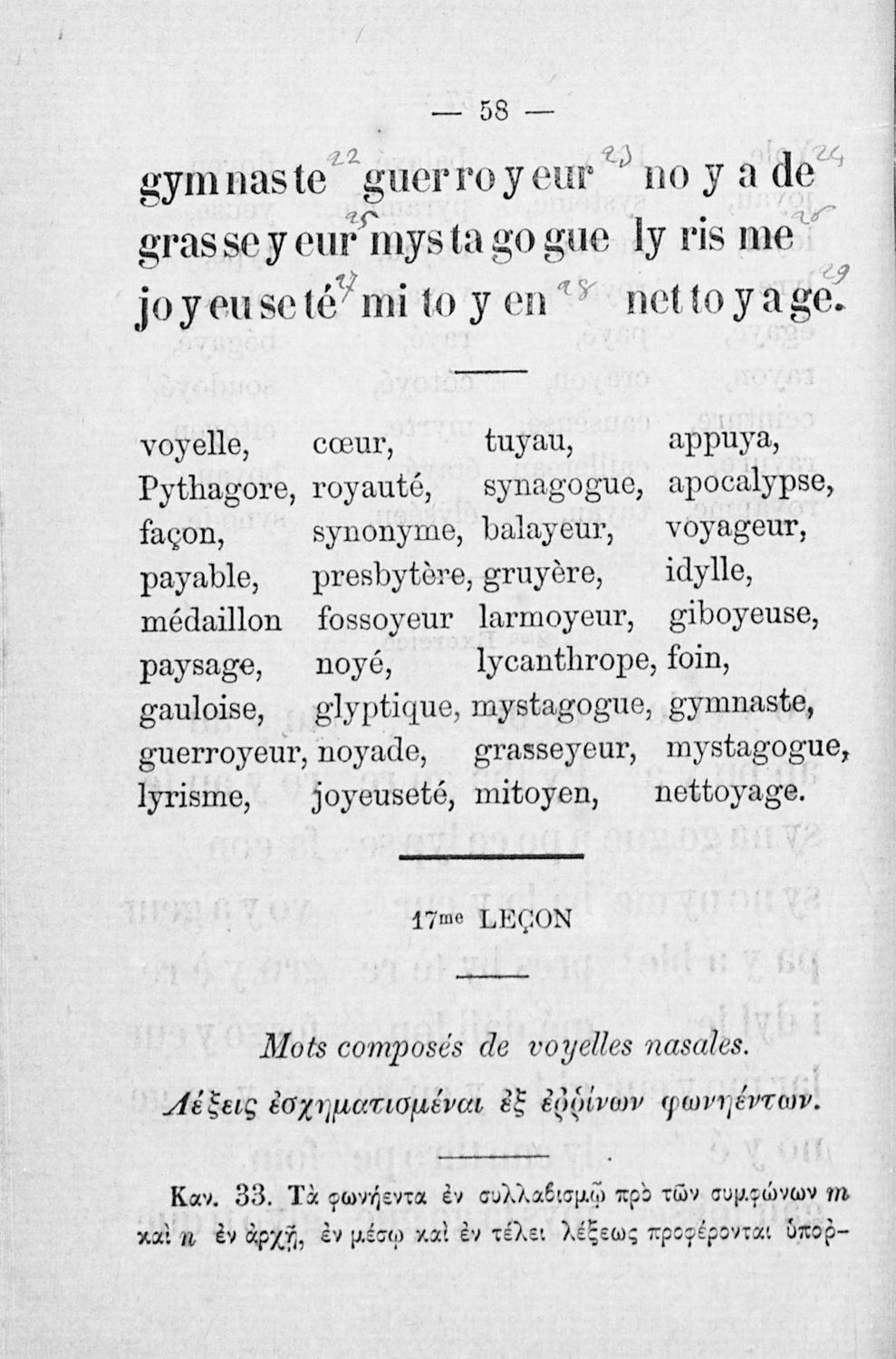 Σχολικό εγχειρίδιο Γαλλικών για τους μαθητές των Ελληνικών Σχολείων που περιλαμβάνει τους κανόνες γραμματικής και προφοράς, σύντομα κείμενα για τη διδασκαλία της ανάγνωσης και αποσπάσματα κειμένων κλασσικών συγγραφέων.