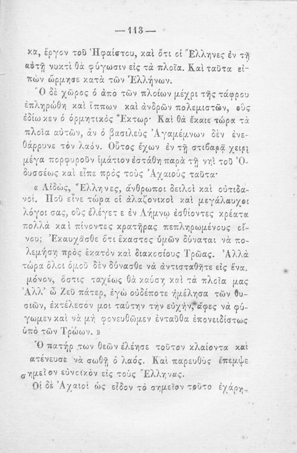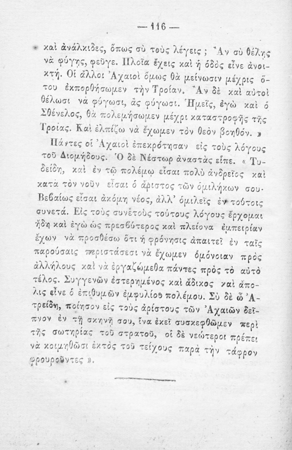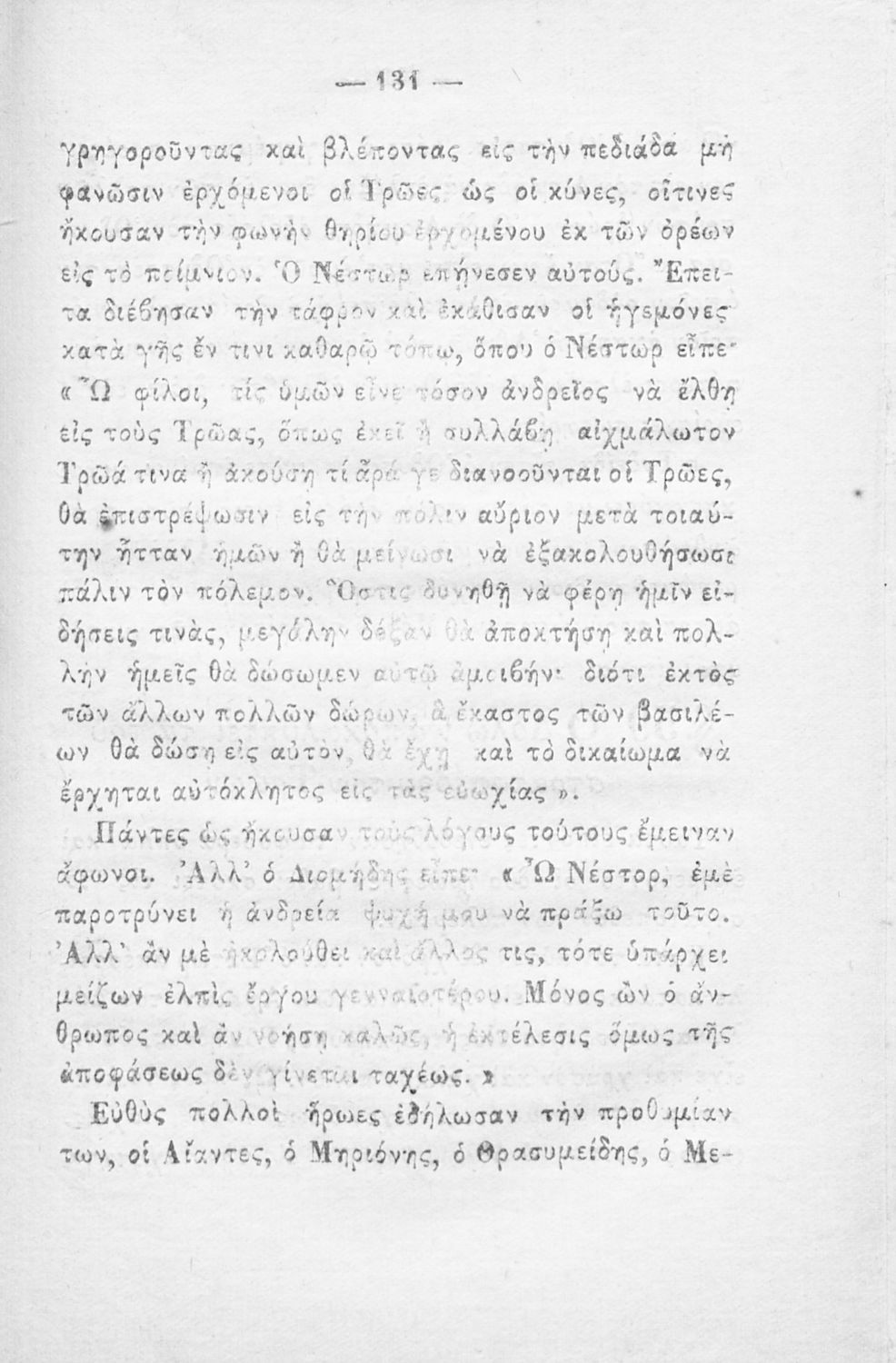 Αναγνωστικό Δημοτικού που περιλαμβάνει διηγήματα εμπνευσμένα από τον Τρωικό Πόλεμο και αποσκοπεί να διδάξει στους ελληνόπαιδες "ότι προς ταις αρεταίς της ειρήνης υπάρχουσι και αρεταίς του πολέμου, η αρετή της ...