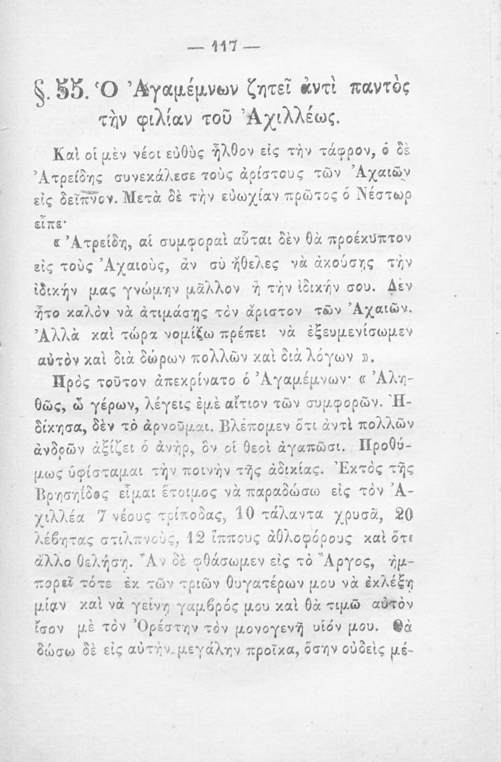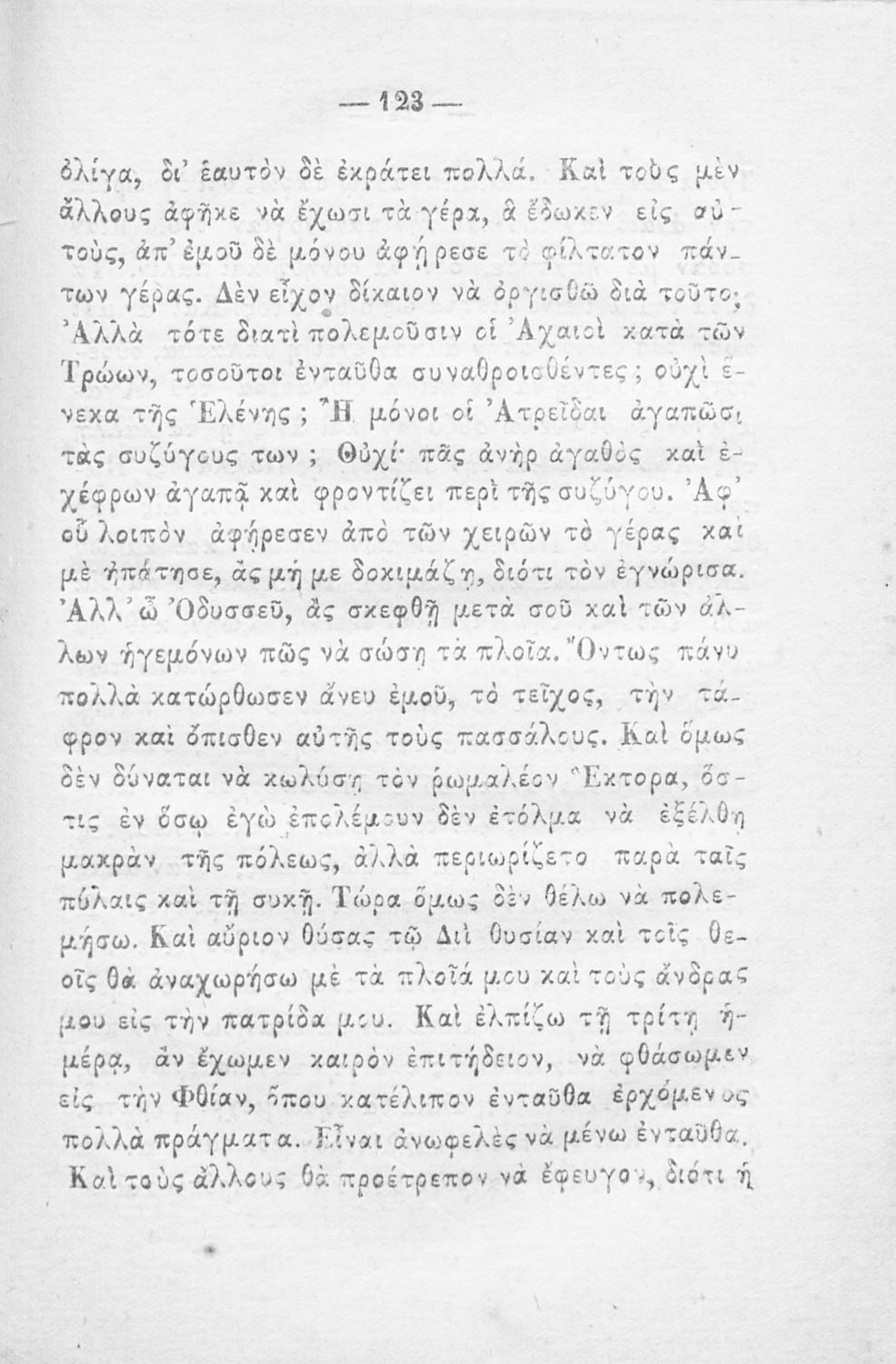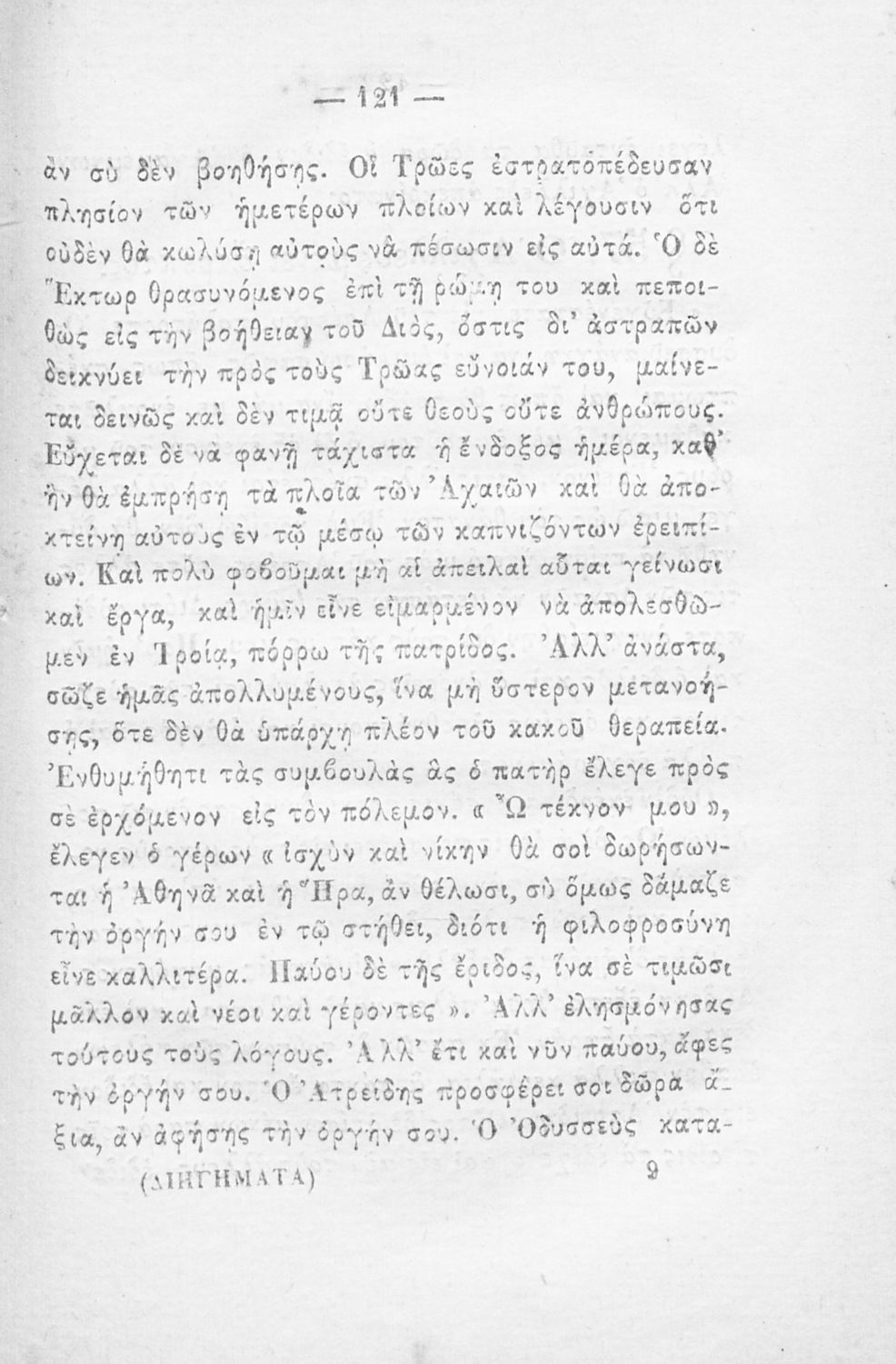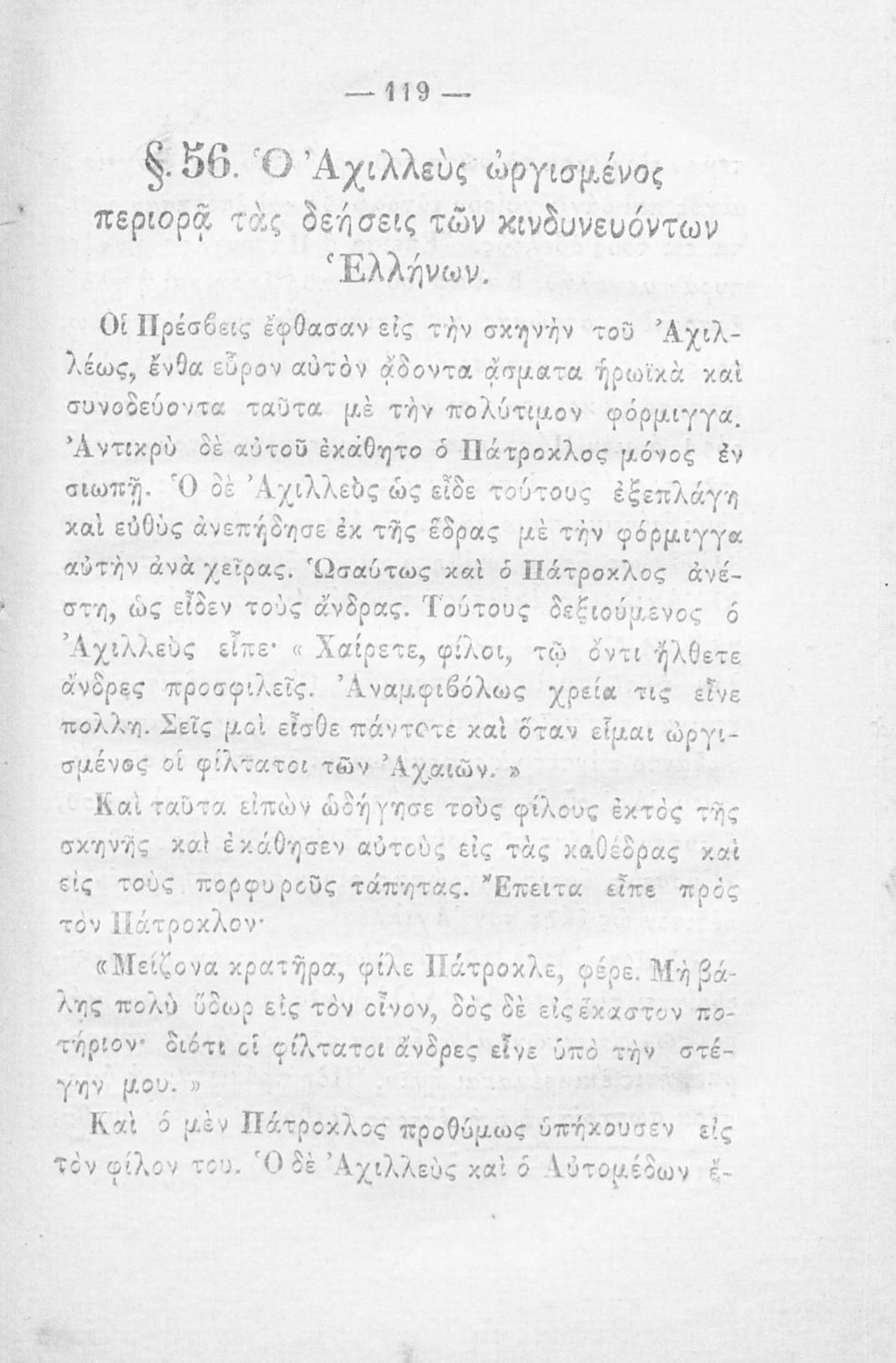 Αναγνωστικό Δημοτικού που περιλαμβάνει διηγήματα εμπνευσμένα από τον Τρωικό Πόλεμο και αποσκοπεί να διδάξει στους ελληνόπαιδες "ότι προς ταις αρεταίς της ειρήνης υπάρχουσι και αρεταίς του πολέμου, η αρετή της ...