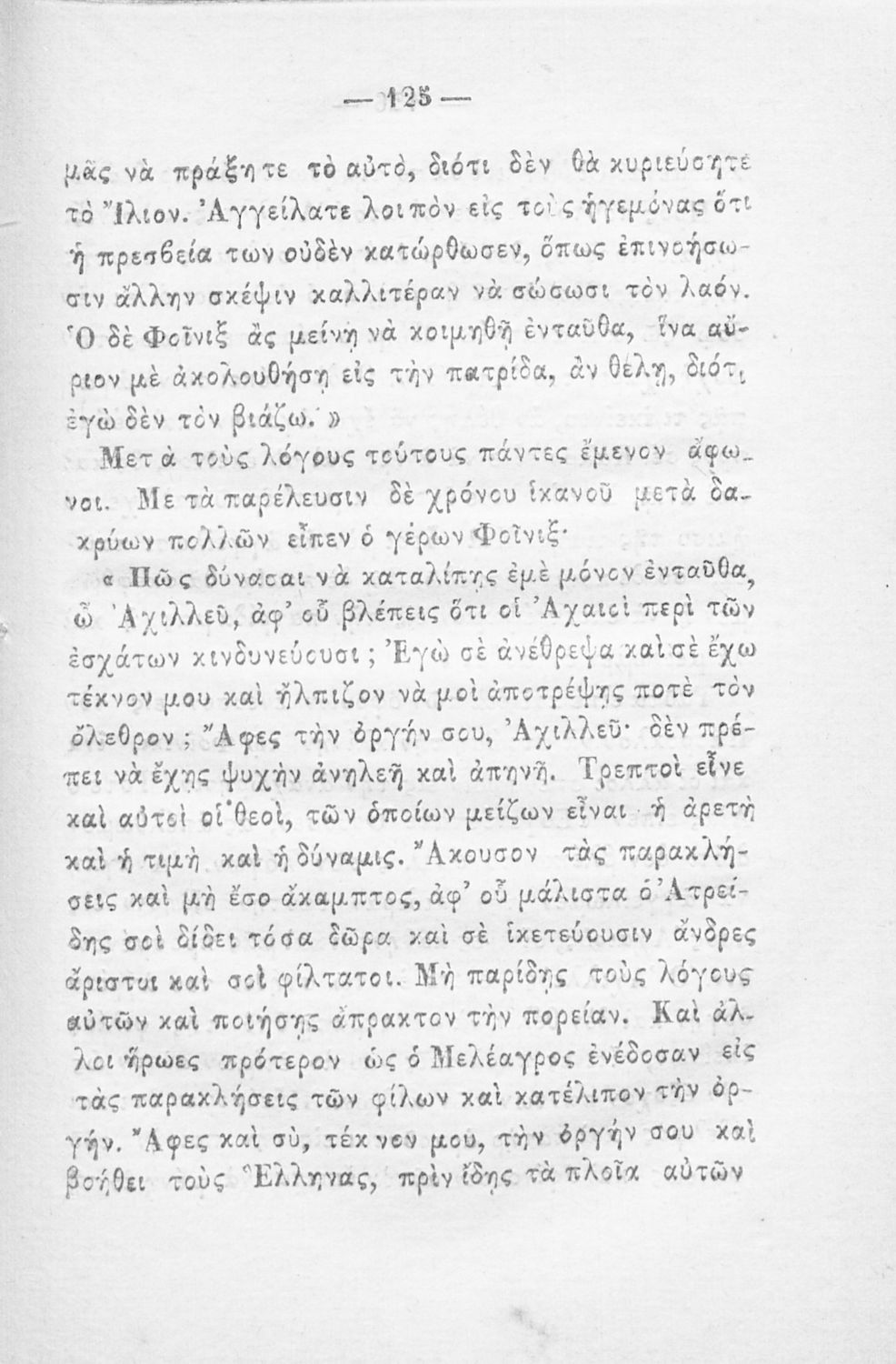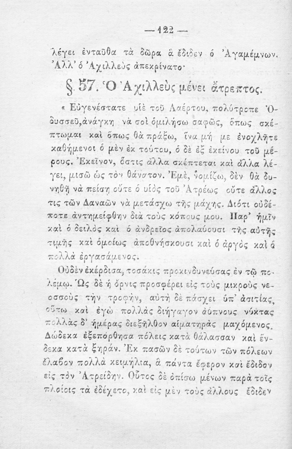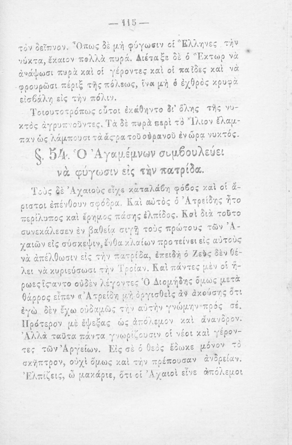 Αναγνωστικό που περιλαμβάνει διηγήματα εμπνευσμένα από τον Τρωικό Πόλεμο και αποσκοπεί να διδάξει στους ελληνόπαιδες "ότι προς ταις αρεταίς της ειρήνης υπάρχουσι και αρεταίς του πολέμου, η αρετή της πειθαρχίας και του ξίφους".