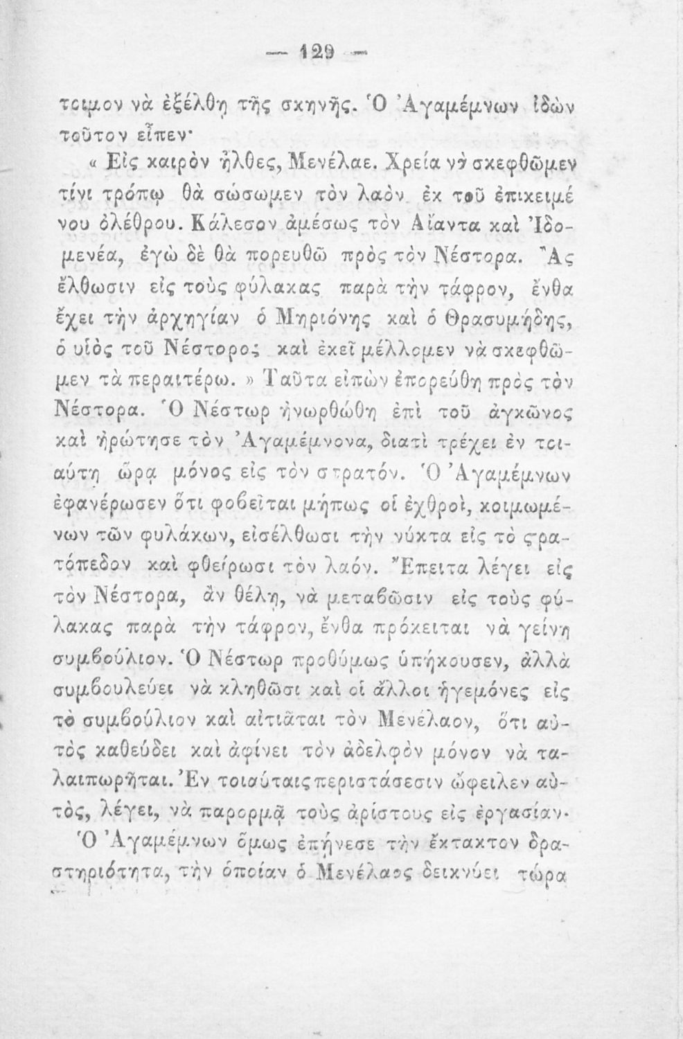 Αναγνωστικό που περιλαμβάνει διηγήματα εμπνευσμένα από τον Τρωικό Πόλεμο και αποσκοπεί να διδάξει στους ελληνόπαιδες "ότι προς ταις αρεταίς της ειρήνης υπάρχουσι και αρεταίς του πολέμου, η αρετή της πειθαρχίας