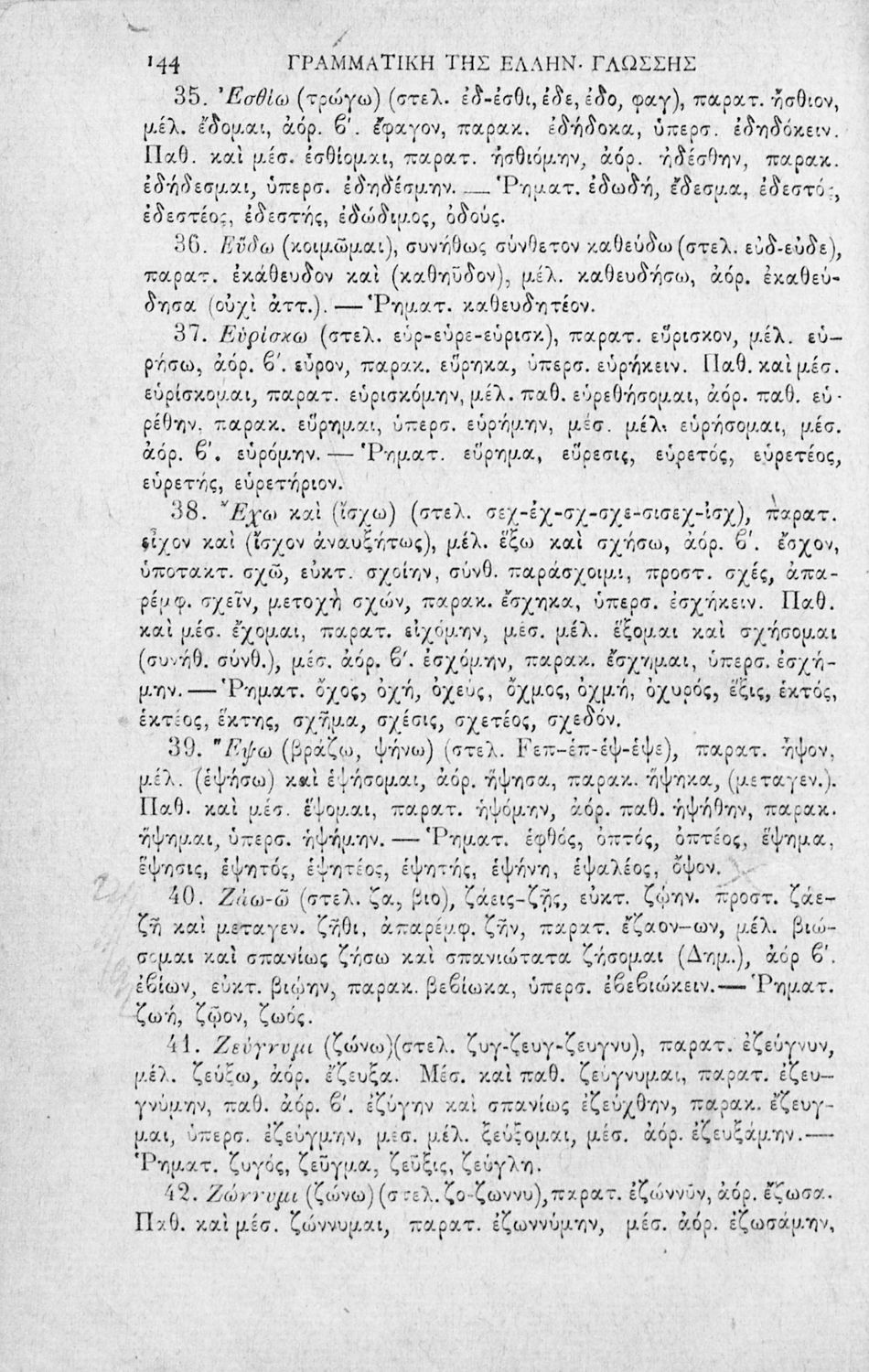 Μαθητικό βοήθημα Αρχαίων Ελληνικών για τα Ελληνικά Σχολεία, Παρθεναγωγεία και Γυμνάσια που περιλαμβάνει γραμματική της αρχαίας ελληνικής και κατάλογο ανωμάλων ρημάτων.