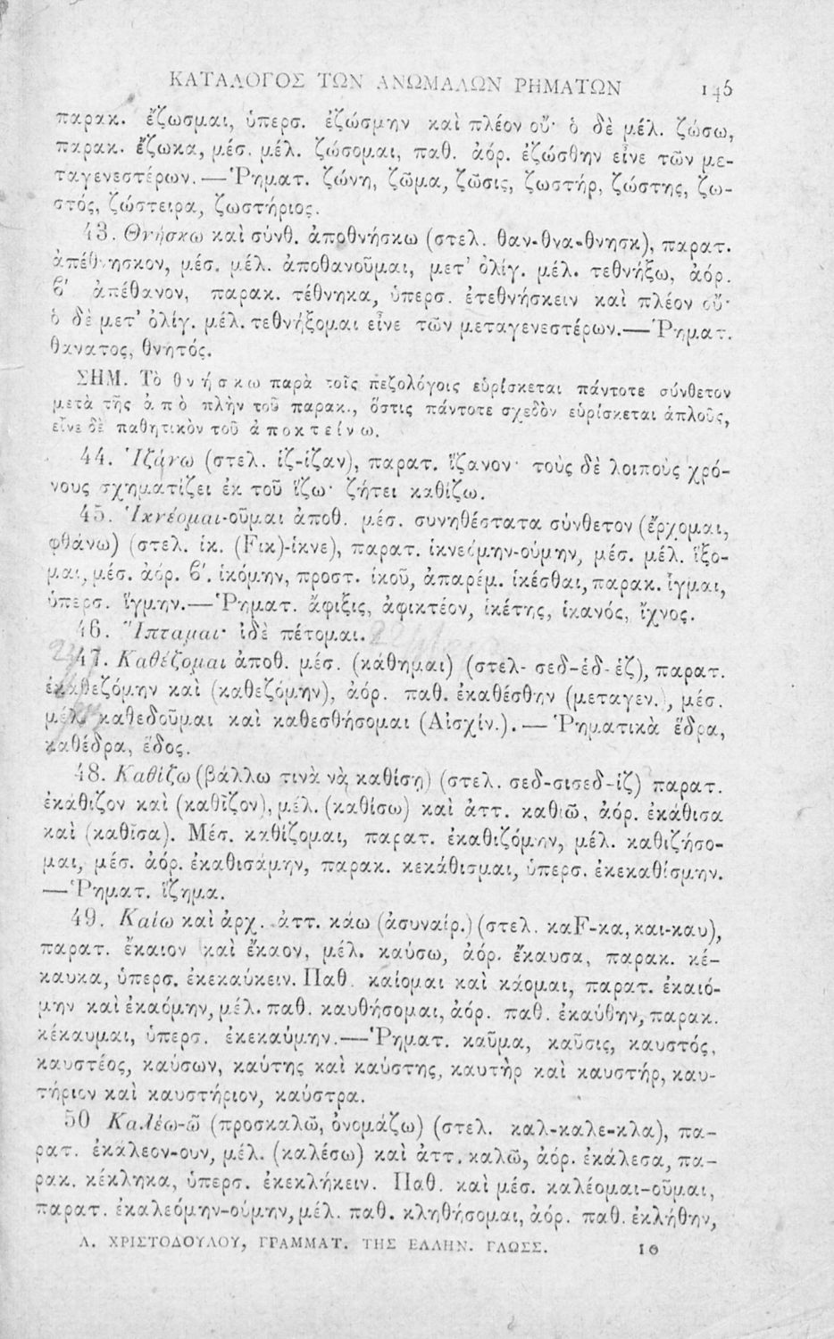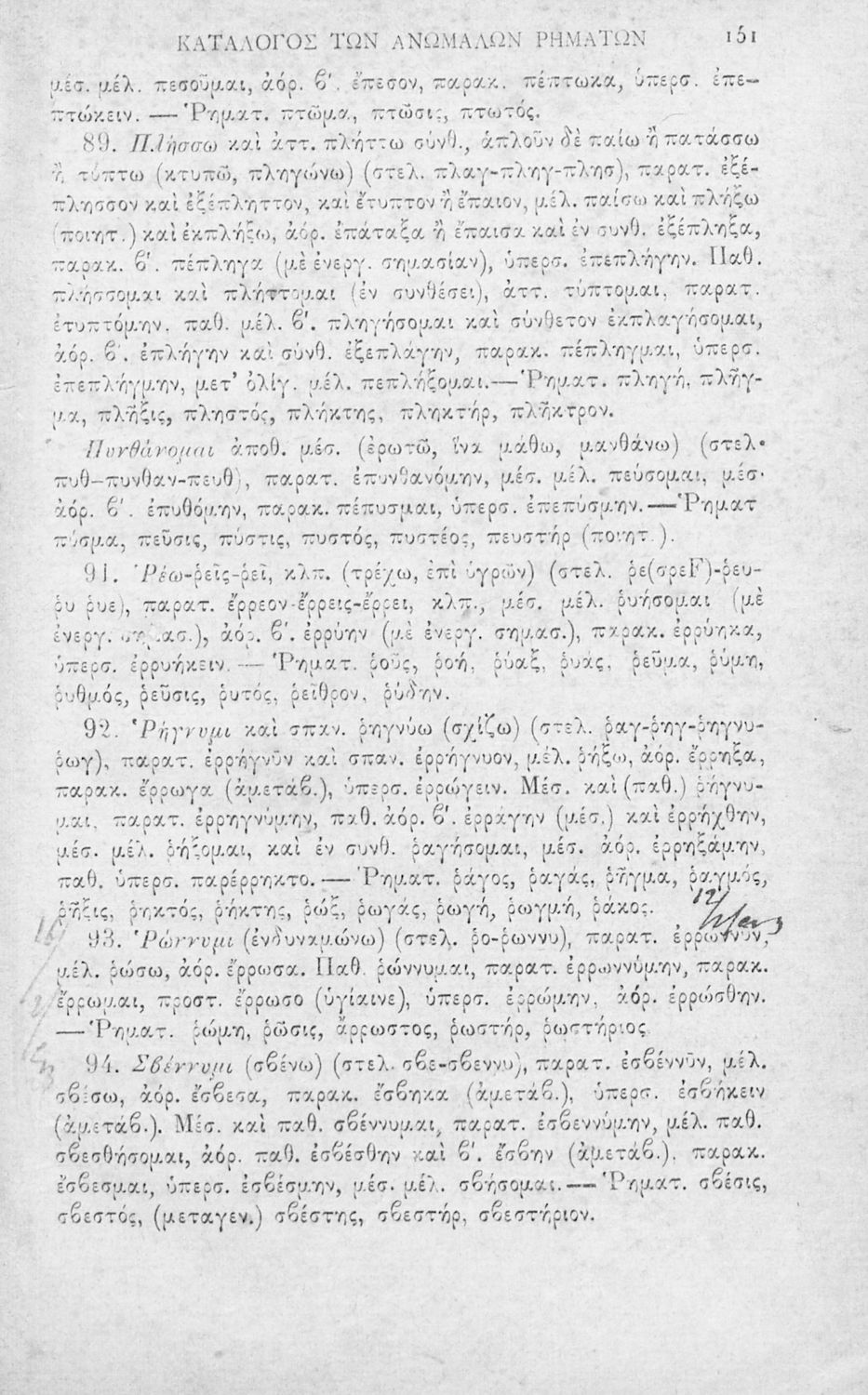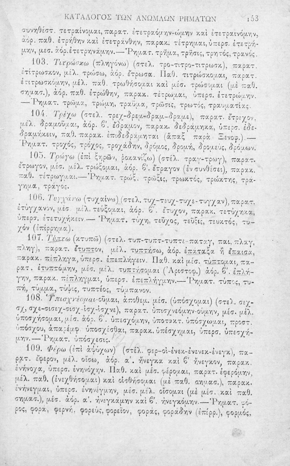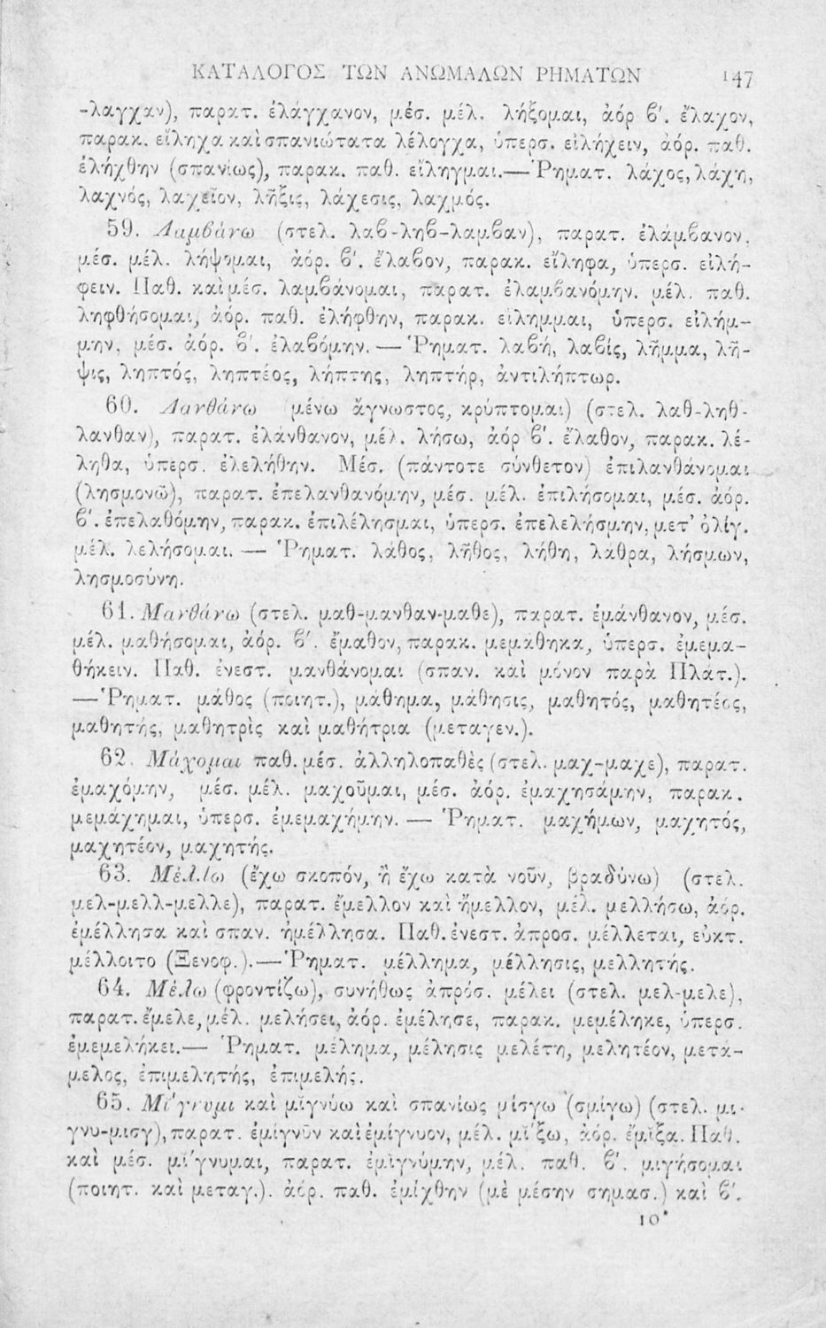 Μαθητικό βοήθημα Αρχαίων Ελληνικών για τα Γυμνάσια, Παρθεναγωγεία και Ελληνικά σχολεία το οποίο περιέχει κατάλογο ανωμάλων ρημάτων της Αττικής διαλέκτου.