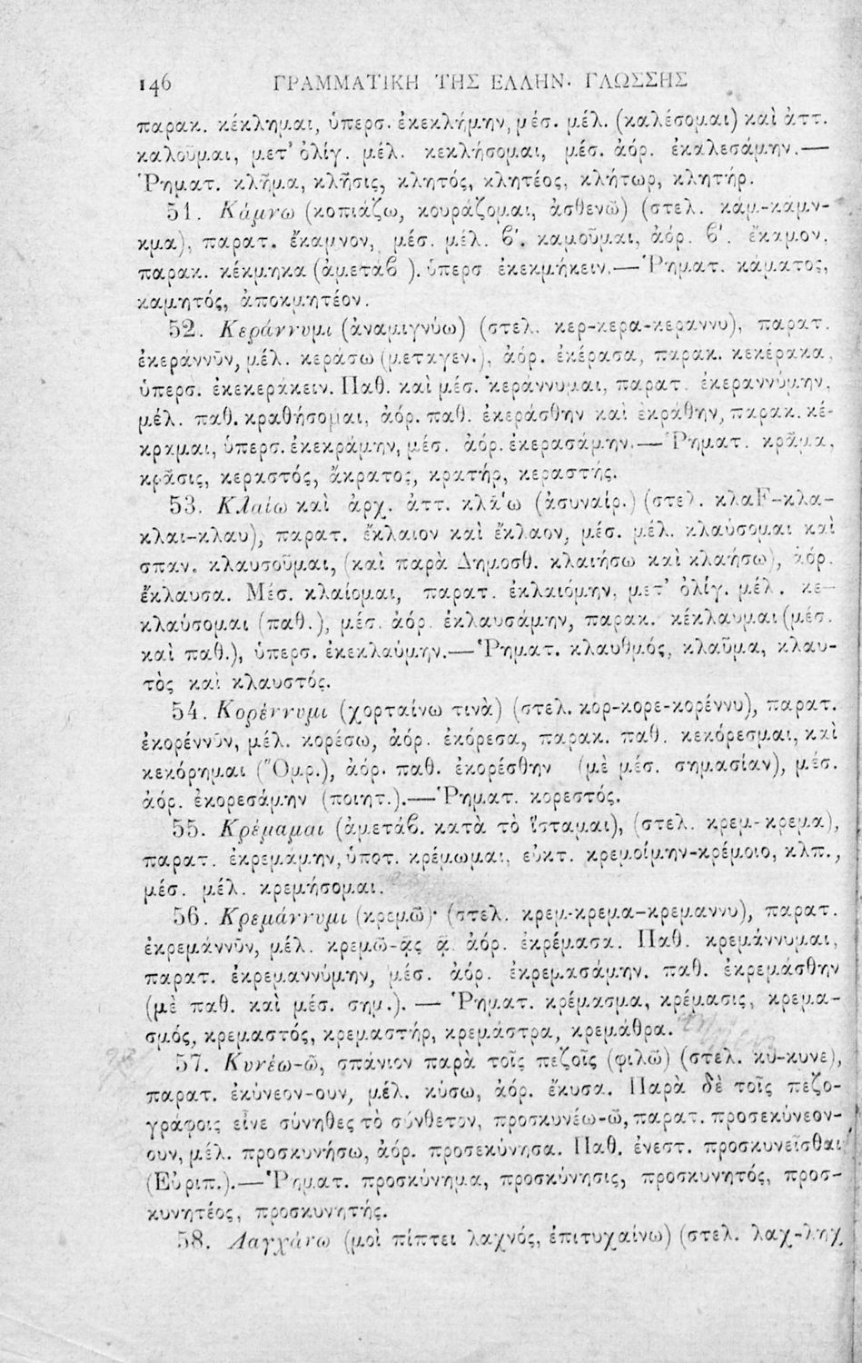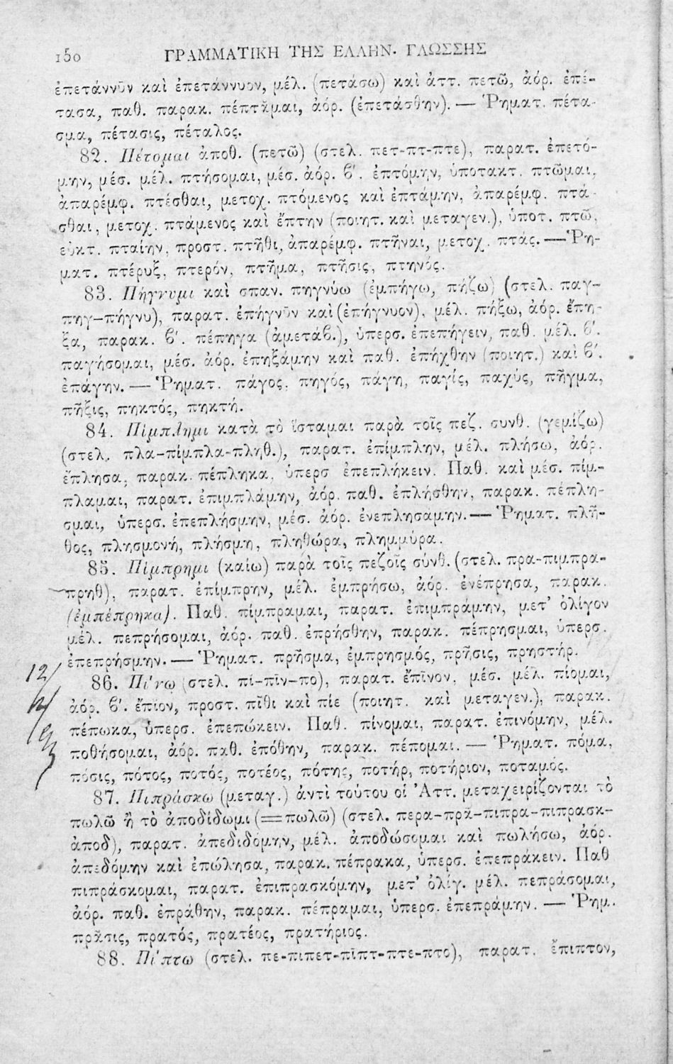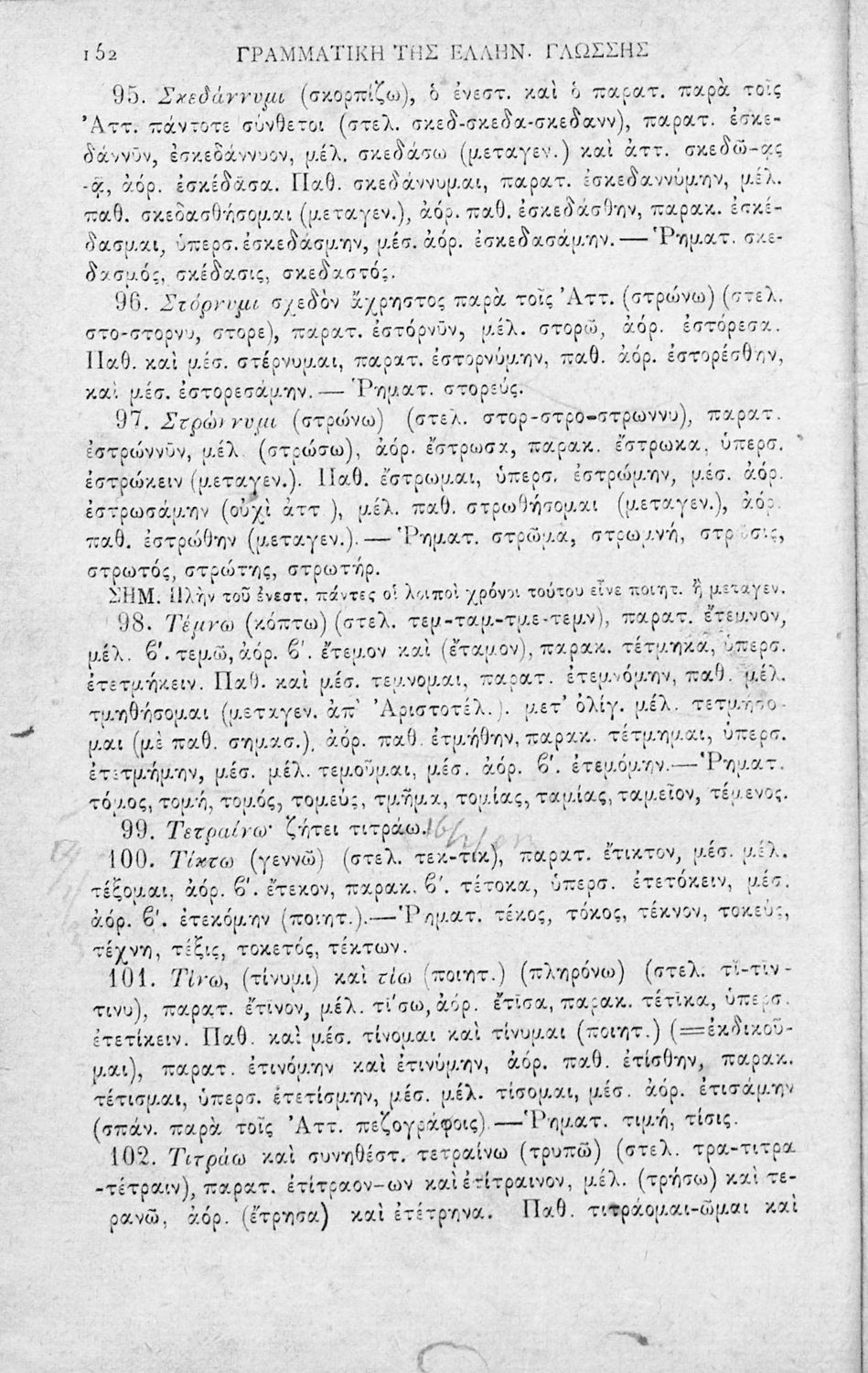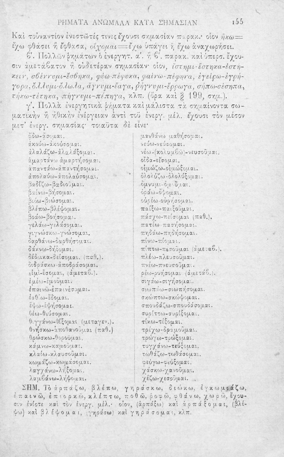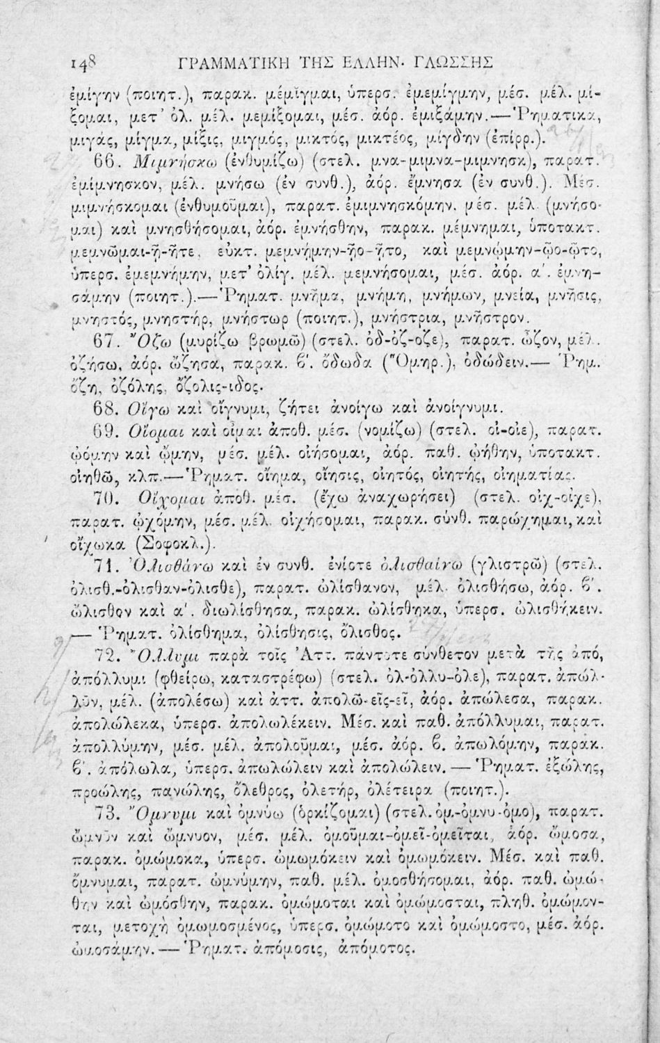 Μαθητικό βοήθημα Αρχαίων Ελληνικών για τα Γυμνάσια, Παρθεναγωγεία και Ελληνικά σχολεία το οποίο περιέχει κατάλογο ανωμάλων ρημάτων της Αττικής διαλέκτου.
