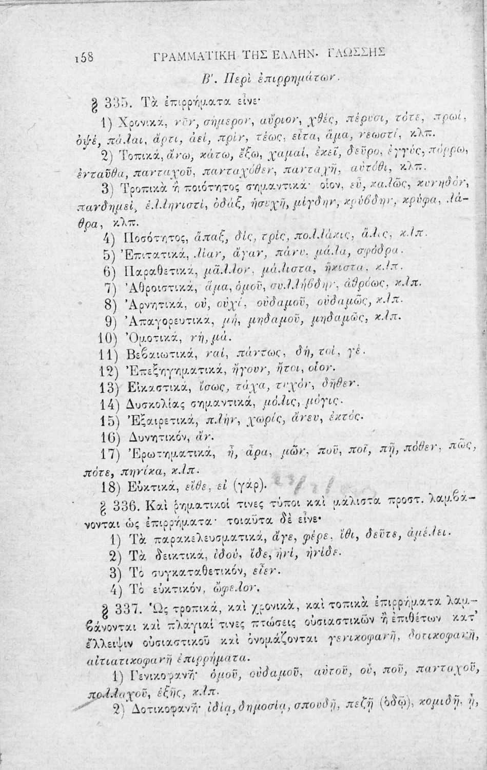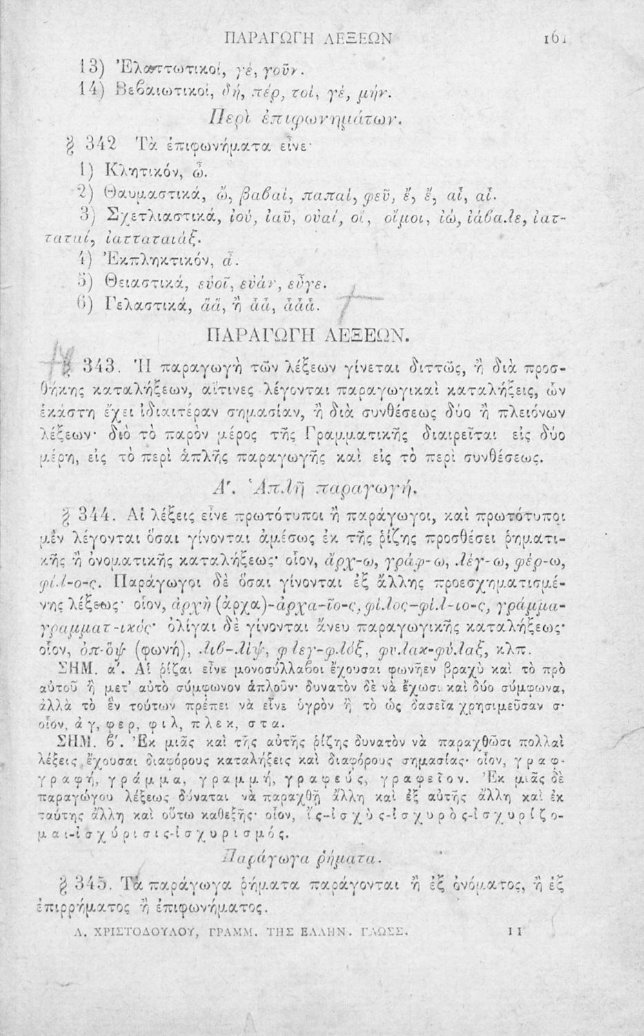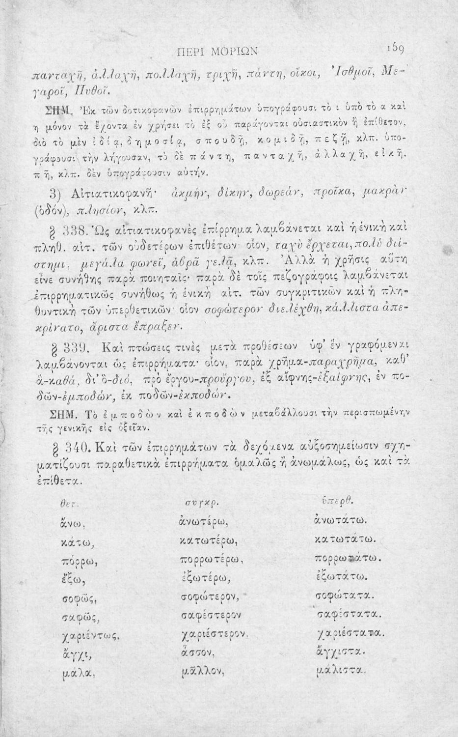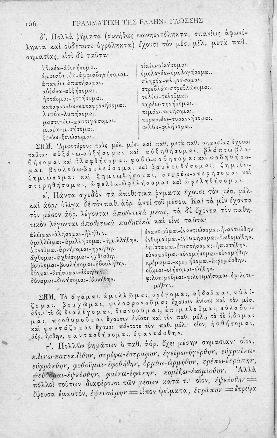 Σχολικό εγχειρίδιο Αρχαίων Ελληνικών για τα Ελληνικά Σχολεία, Παρθεναγωγεία και Γυμνάσια που περιέχει τους κανόνες γραμματικής και είναι χωρισμένο σε φθογγολογικό, τυπολογικό και ετυμολογικό μέρος.