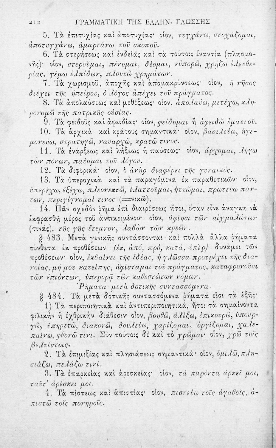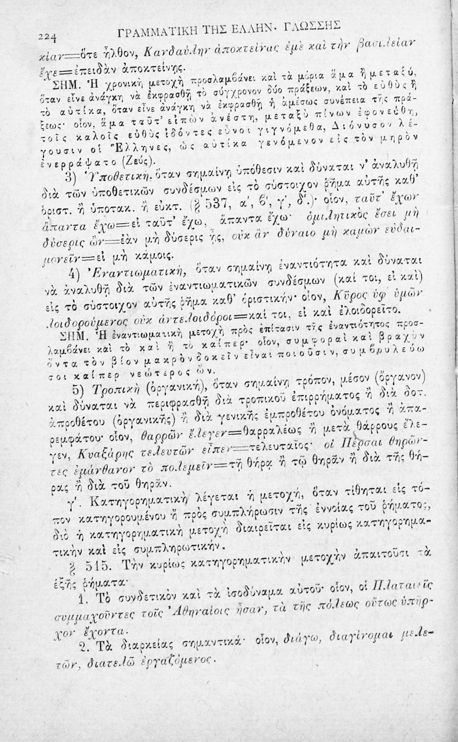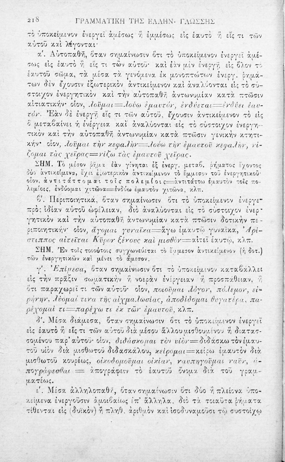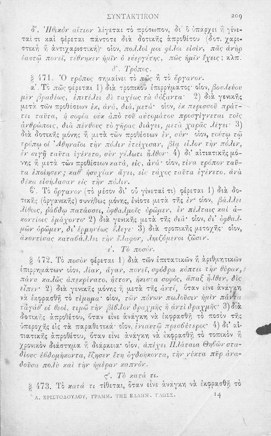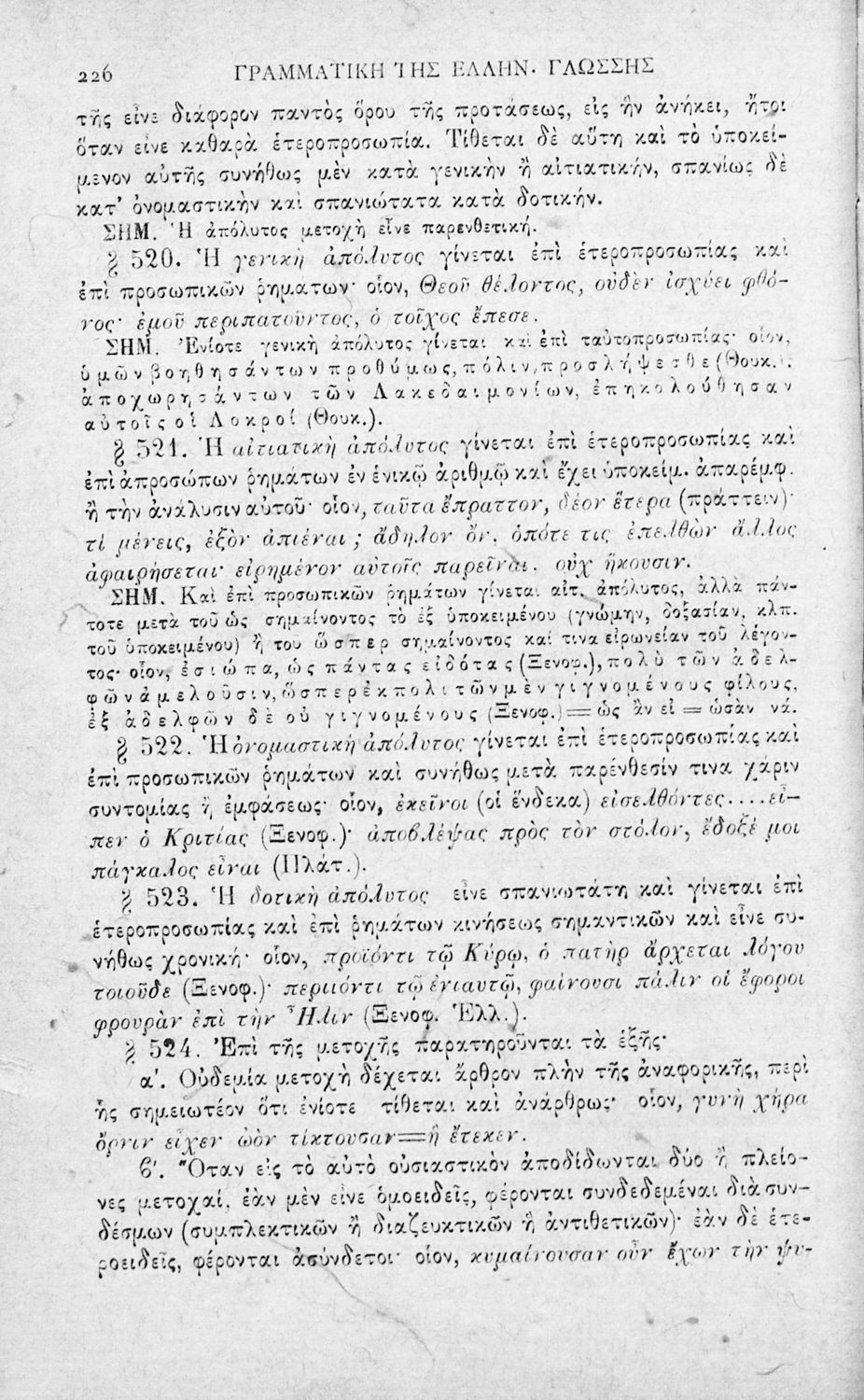 Σχολικό εγχειρίδιο Αρχαίων Ελληνικών για τα Ελληνικά Σχολεία, Παρθεναγωγεία και Γυμνάσια που περιέχει τους κανόνες γραμματικής και είναι χωρισμένο σε φθογγολογικό, τυπολογικό και ετυμολογικό μέρος.