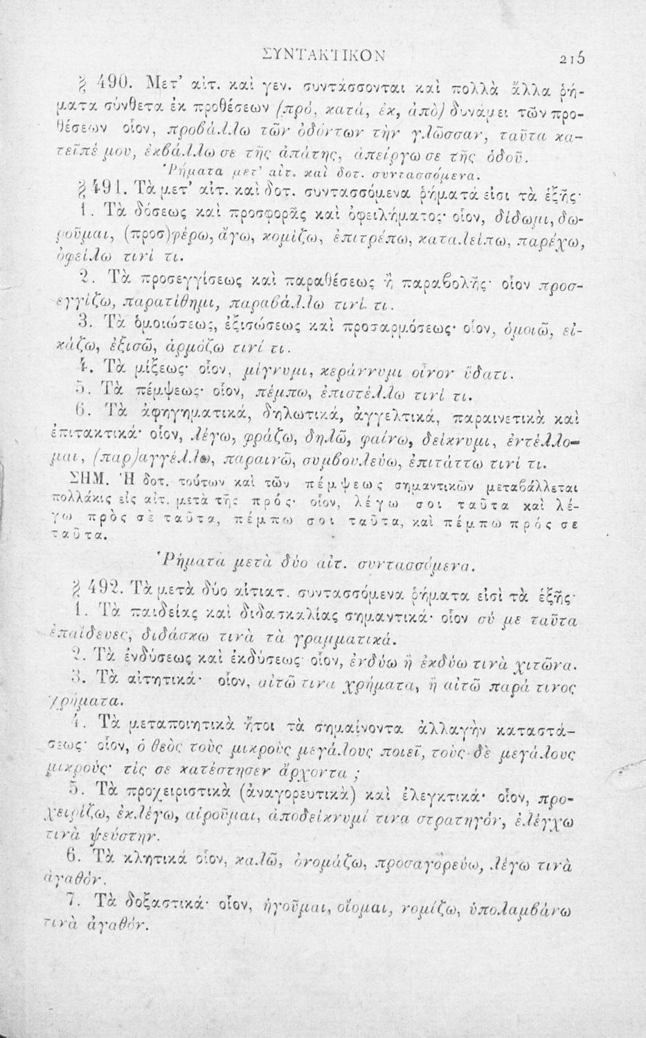Μαθητικό βοήθημα Αρχαίων Ελληνικών για τα Ελληνικά Σχολεία, Παρθεναγωγεία και Γυμνάσια που περιλαμβάνει γραμματική της αρχαίας ελληνικής και κατάλογο ανωμάλων ρημάτων.